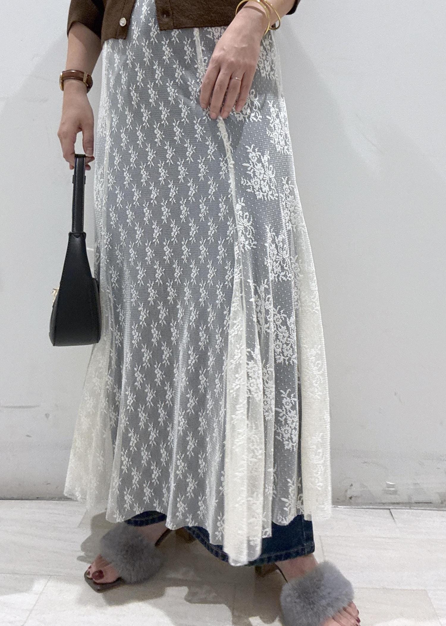 レーススカートの方はペチコートが取り外しできるので、パンツとのレイヤードスタイルにするのもオススメです。 -