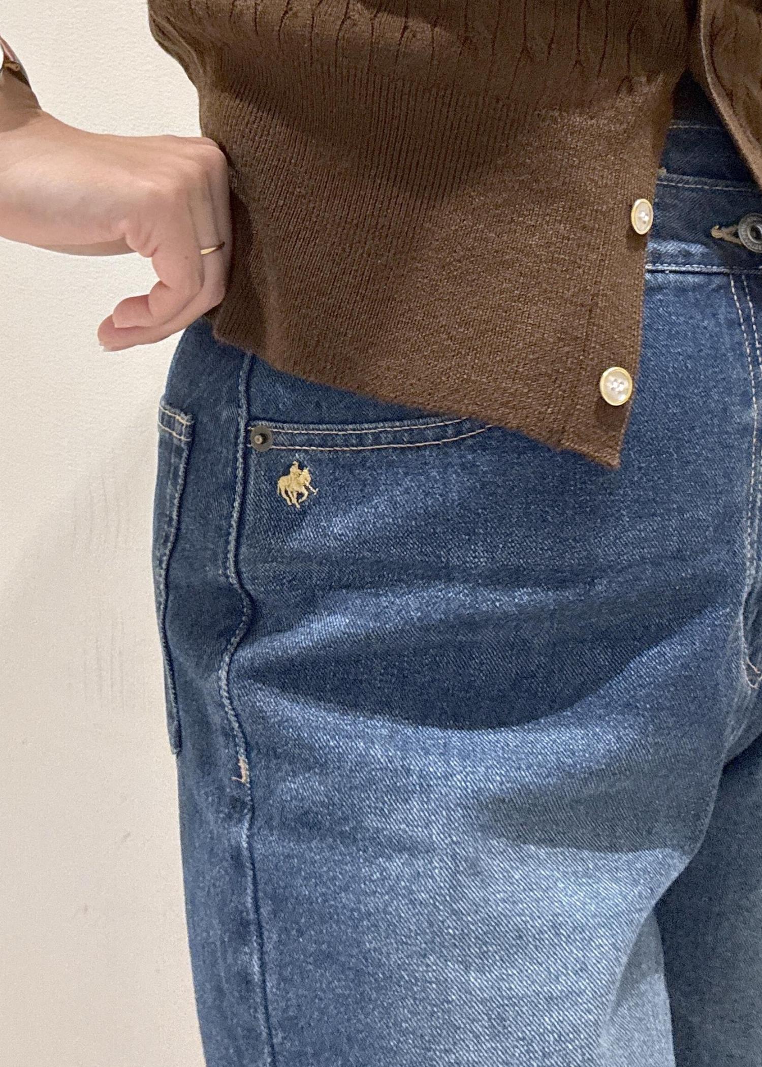 オリジナルのロゴで、カジュアルからキレイめにも合わせやすい生地でせ。