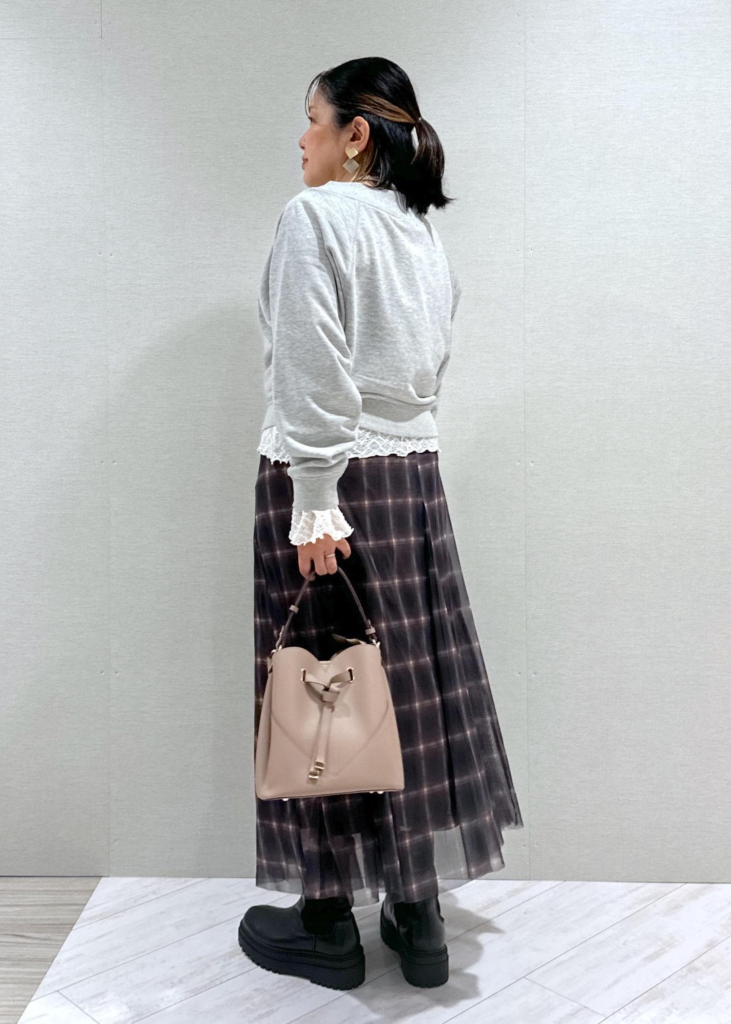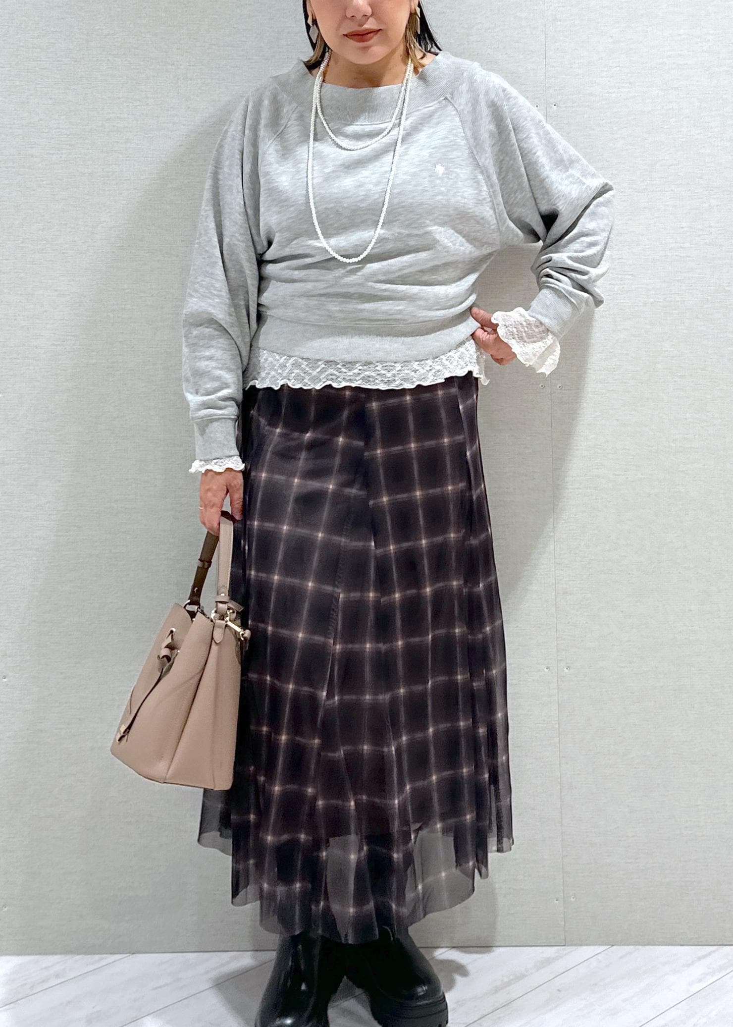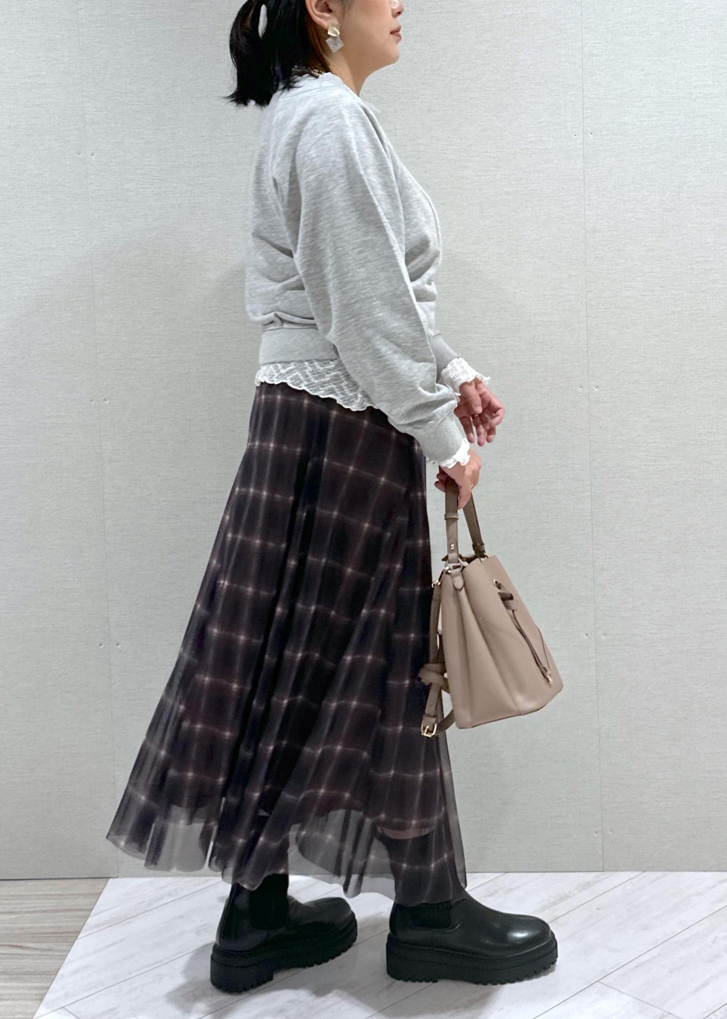 VIS【洗える】チュールプリントチェックスカートブラック系 / F¥4,612レビューサラサラな生地感で着心地最高なスカートです!