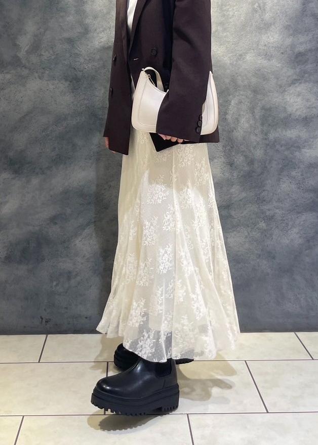 透け感があるので見えてもいいインナーを着て頂くか、ビスチェのインに着て頂くのもお勧めです。 -