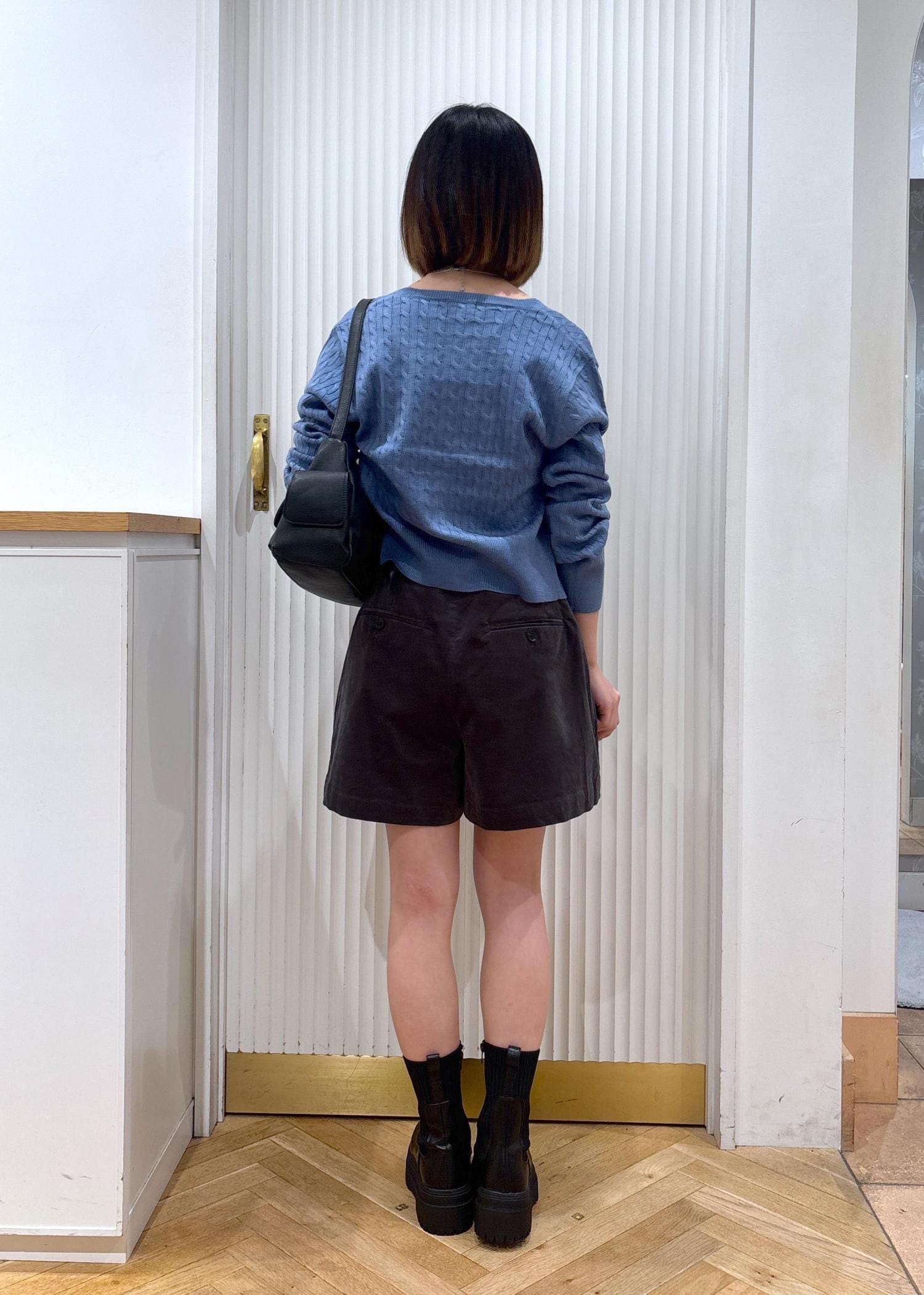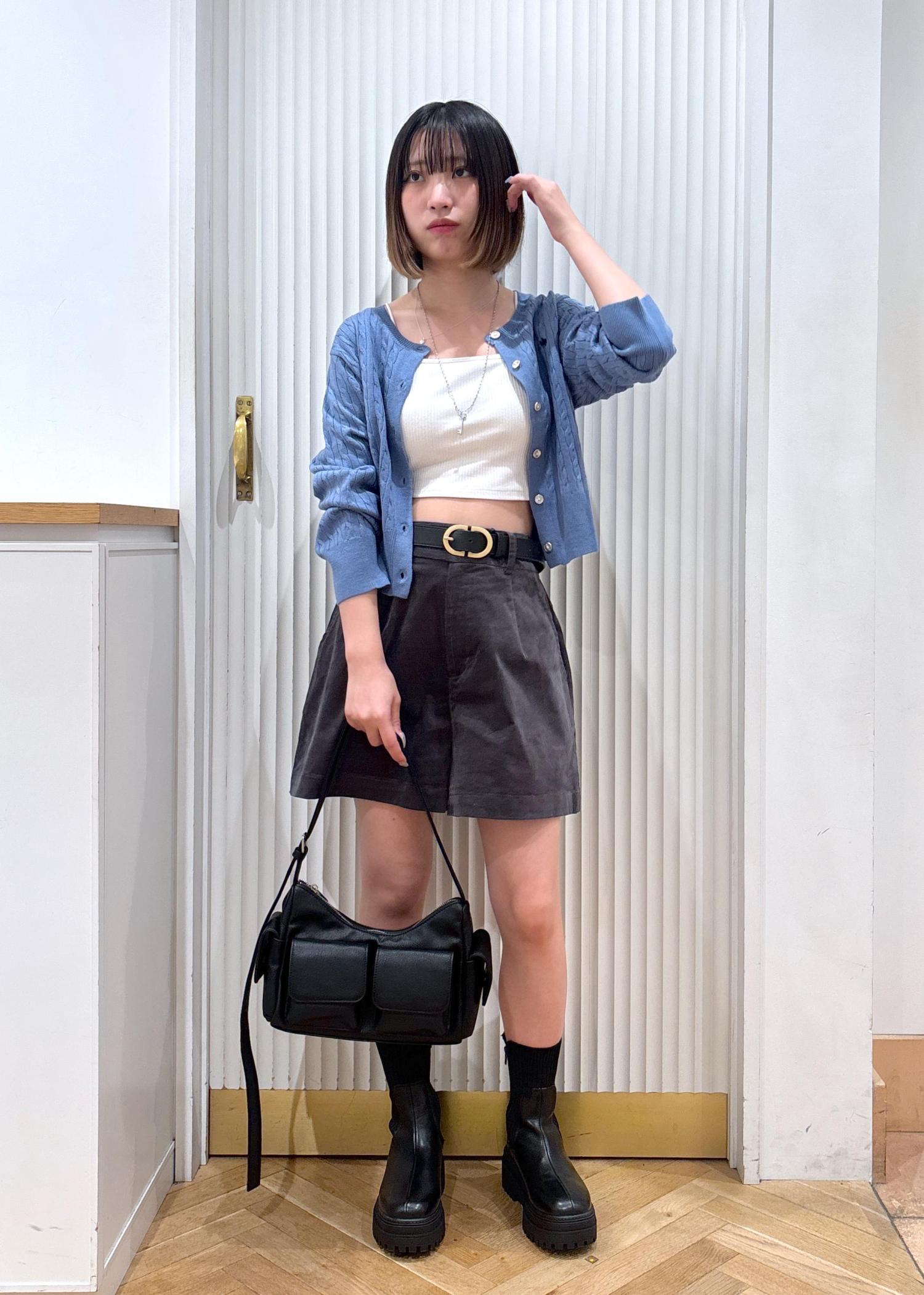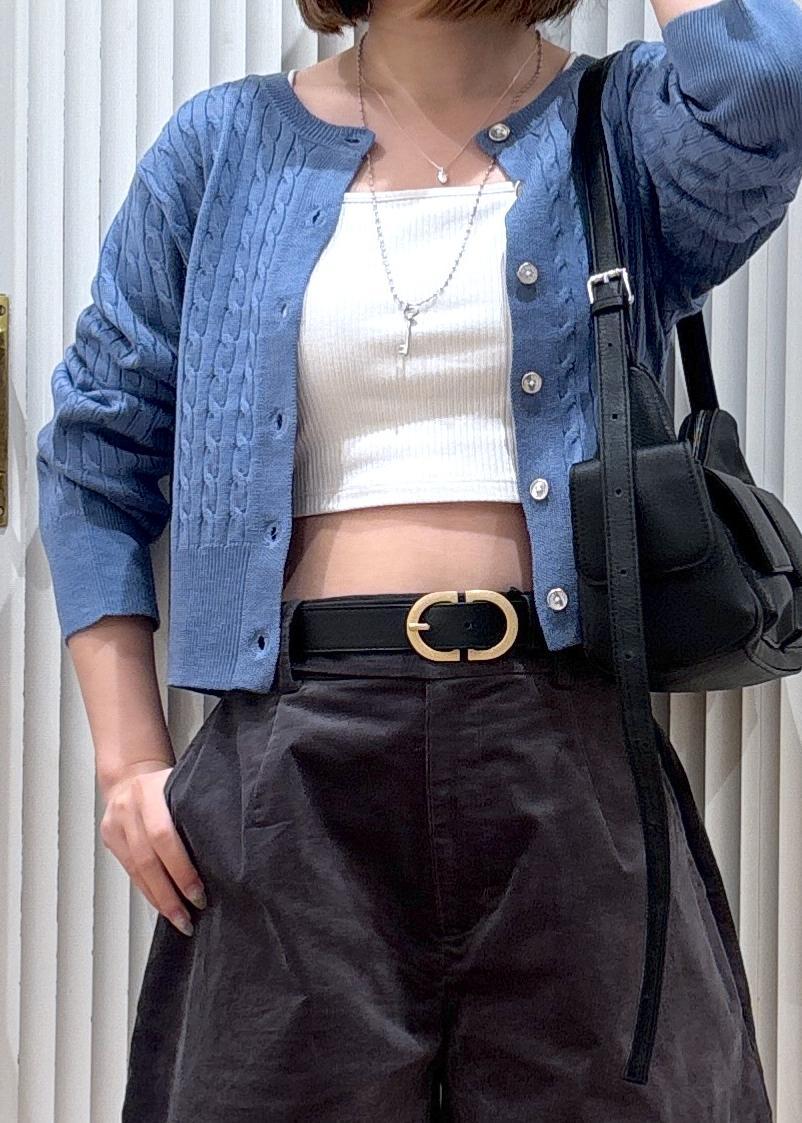実物を見ると心配になりがちですが、着てみると胸元が開きすぎず、ハイウエストのボトムスと合わせても少しお腹が見える丈感なので着回し力◎です!!