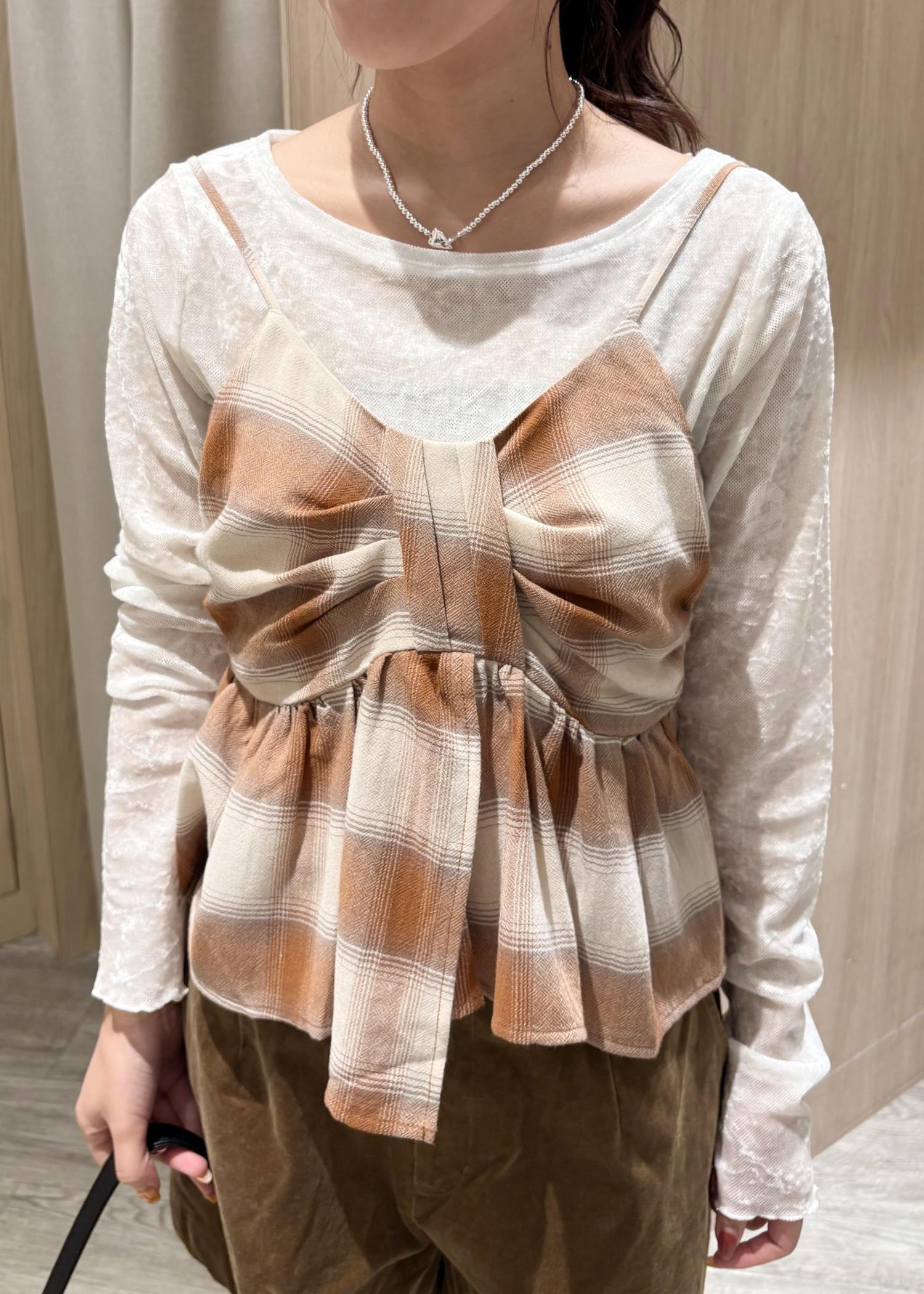 VISオンブレチェックリボンビスチェベージュ系 / F¥5,489レビューオンブレチェックのビスチェはコーデのアクセントになるのでオススメです。