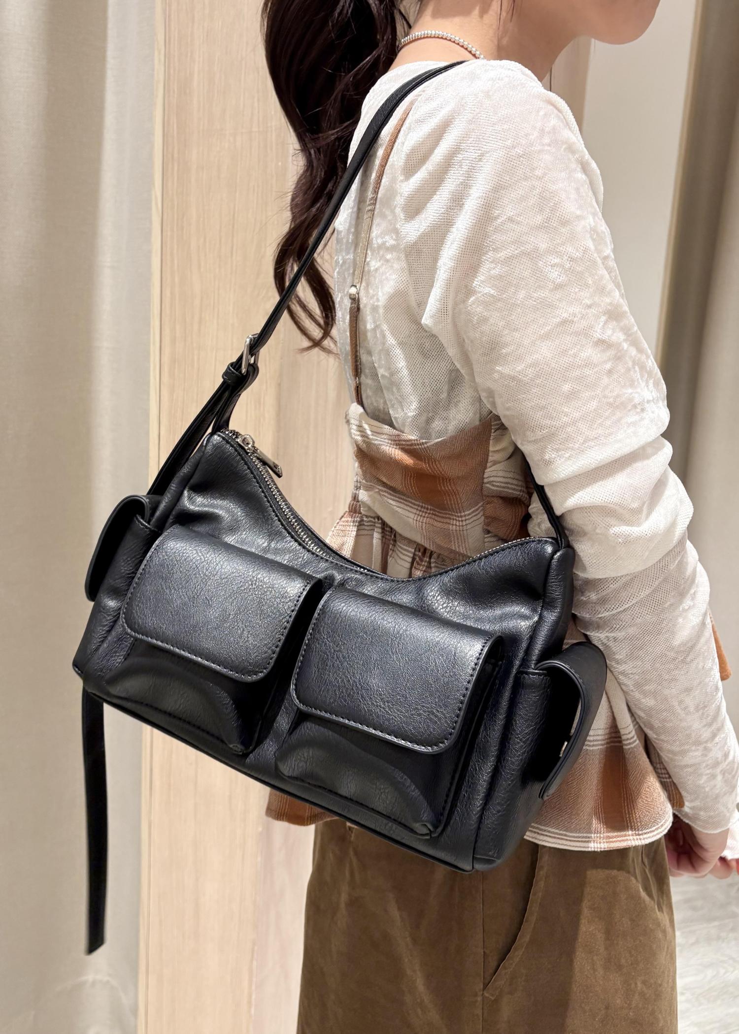 VIS【2WAY】ビンテージ合皮クアトロポケットショルダーバッグブラック / F¥6,919レビュー外ポケットが二つついており、小物やスマホなど仕舞いやすくなっています。