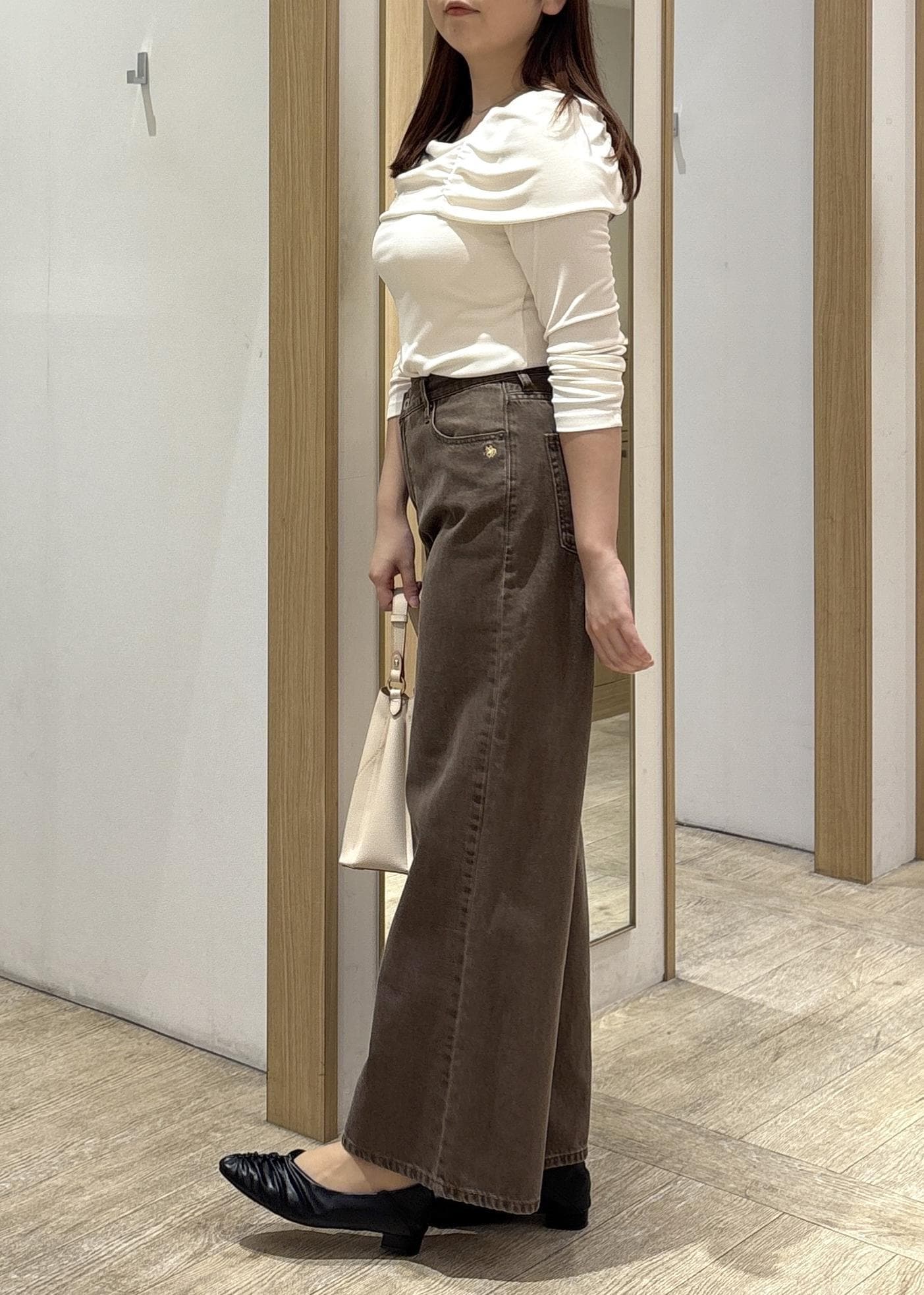 VISテレコオフショルダーロングスリーブプルオーバーオフホワイト / F¥3,072レビュー肩まわりにギャザーがあるデザインは華やかさを出しつつ、身頃がすっきりしているので骨格ストレートさんの厚みを拾いにくいです♪