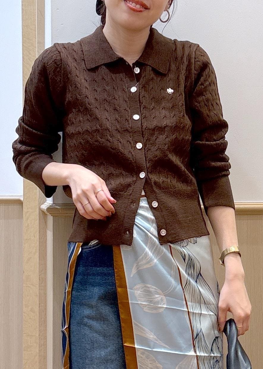 VIS【POLO BCS】VIS別注ミニケーブルポロ襟ニットカーディガンダークブラウン / F¥7,150レビューAWもトレンドのポロ襟トップス!