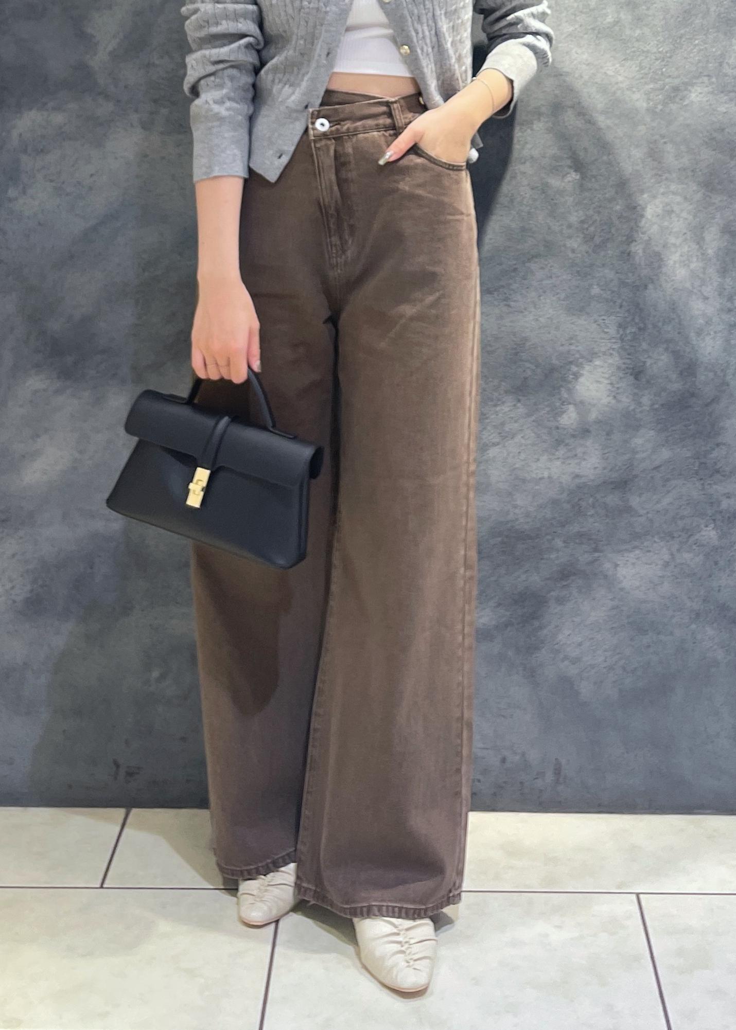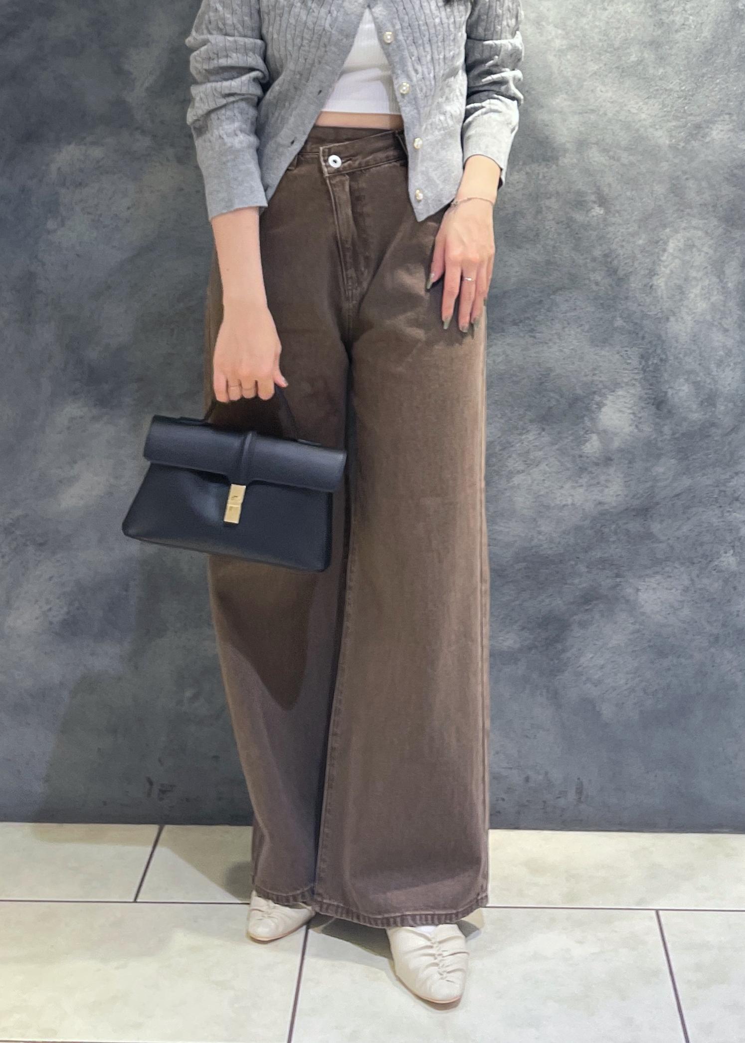 ストレートワイドのシルエットですが落ち感が綺麗なのでカジュアルから綺麗めまで合わせやすいです。 -