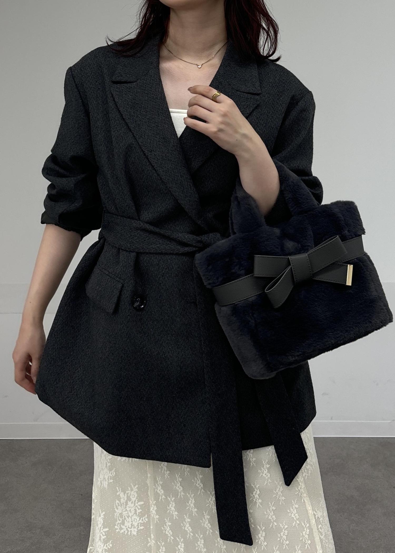ヘリンボーンツイードベルテッドジャケット/セットアップ対応
