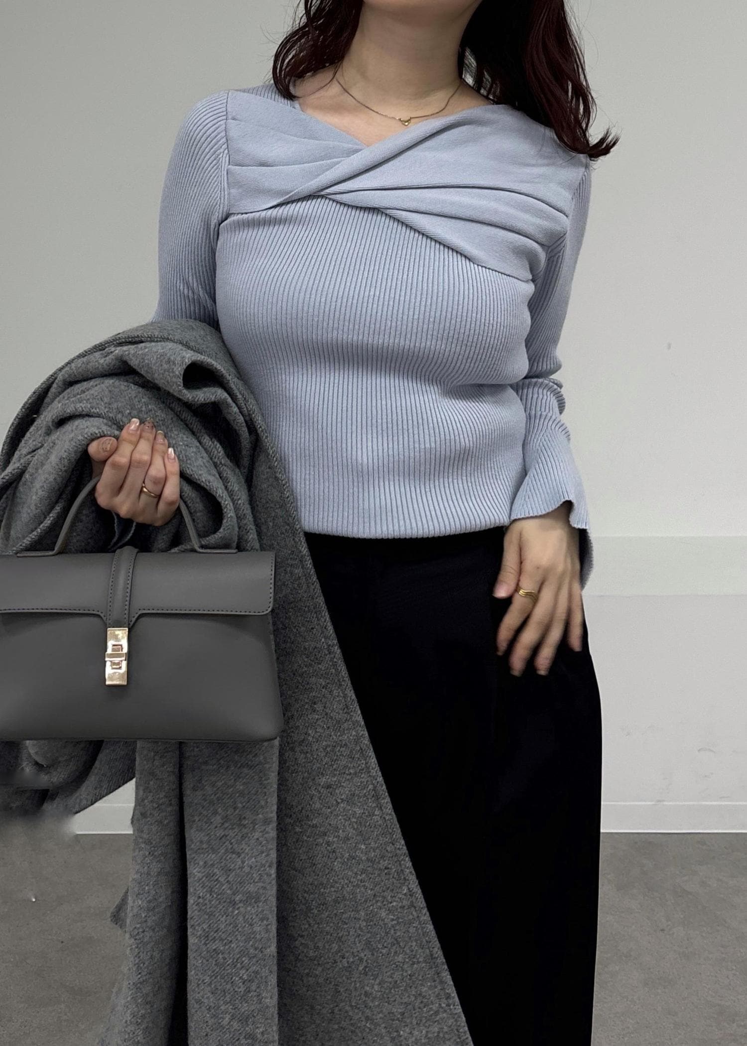 VISアシメねじれデザインリブニットサックス / F¥5,489レビュー素材がリブで、全体のシルエットがフィット感あるので、ジャケットやアウターのインナー使いでも◎