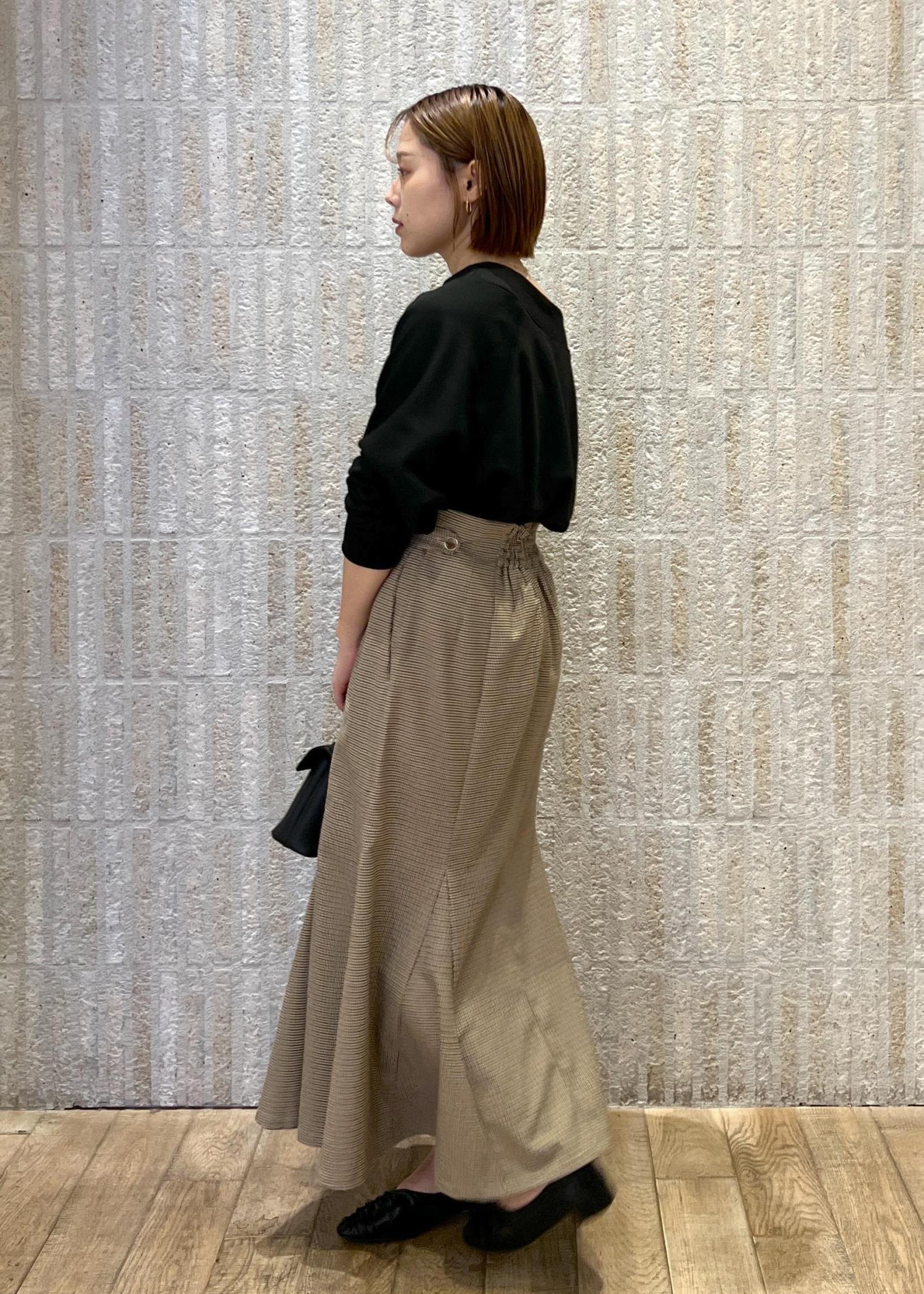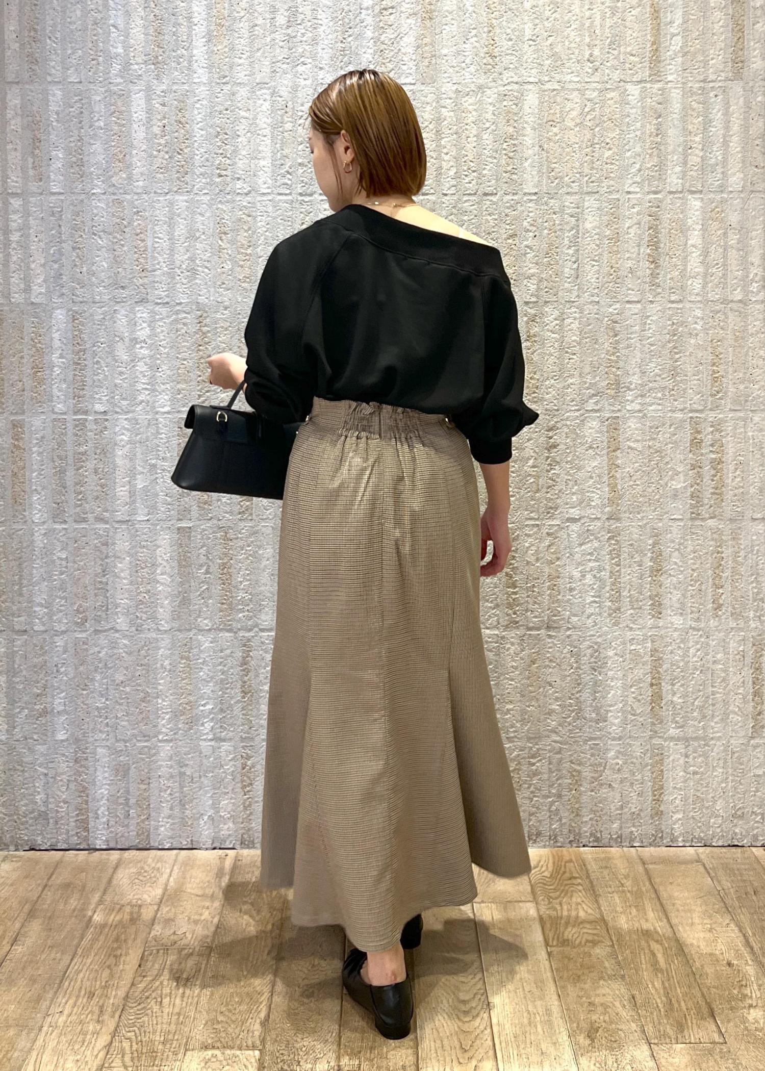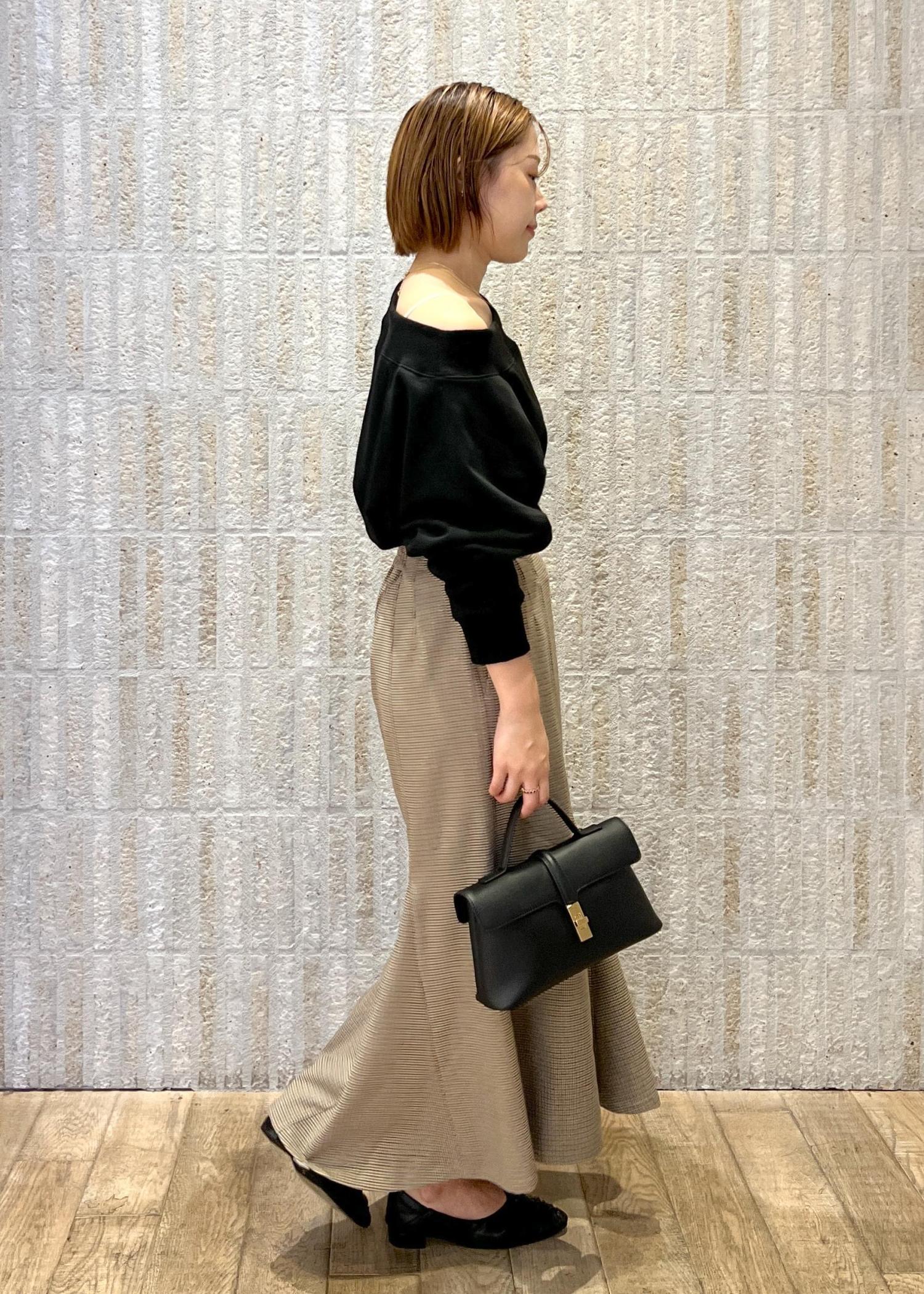 トップスでラフさを出しつつも、マーメイドスカート合わせで