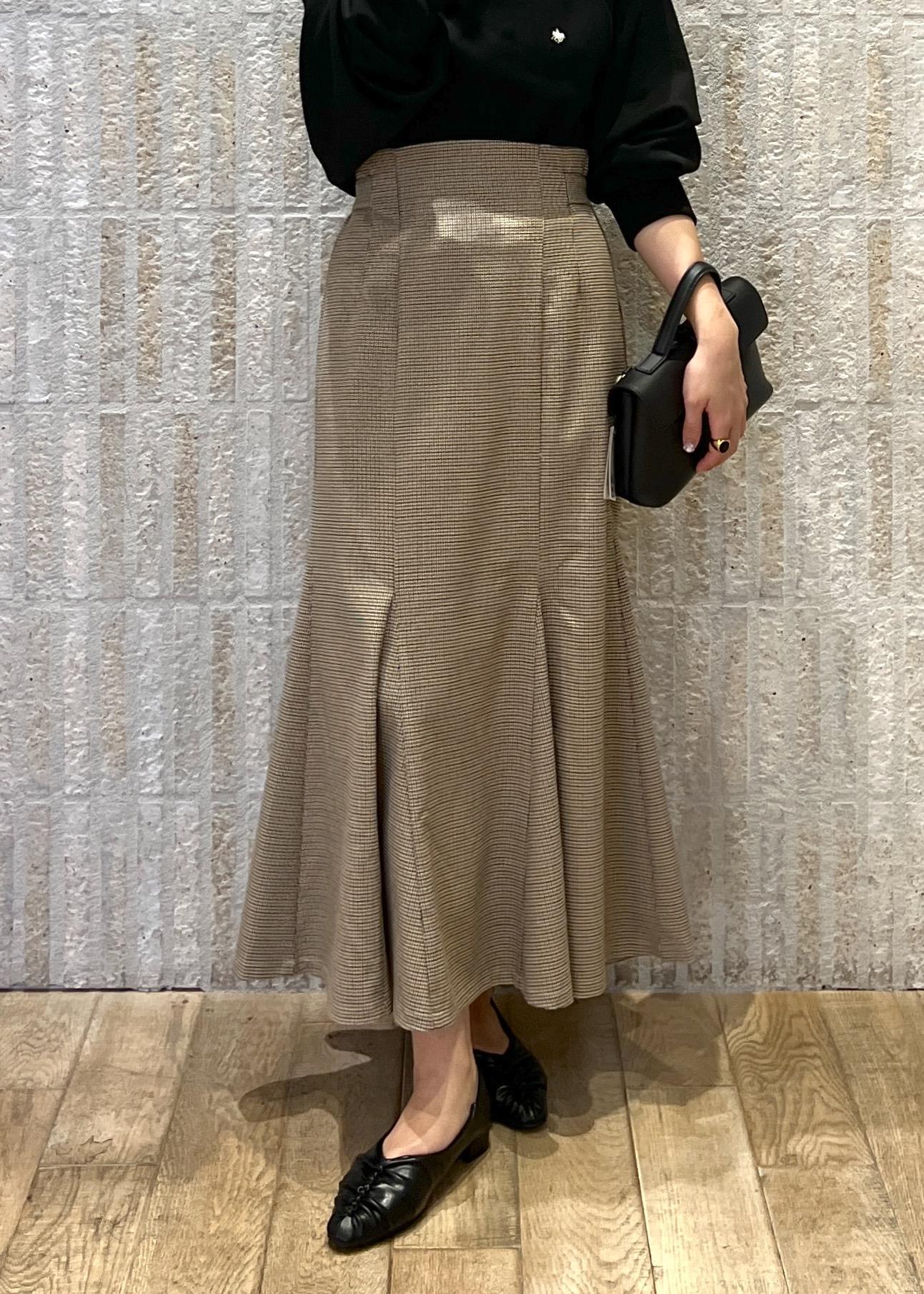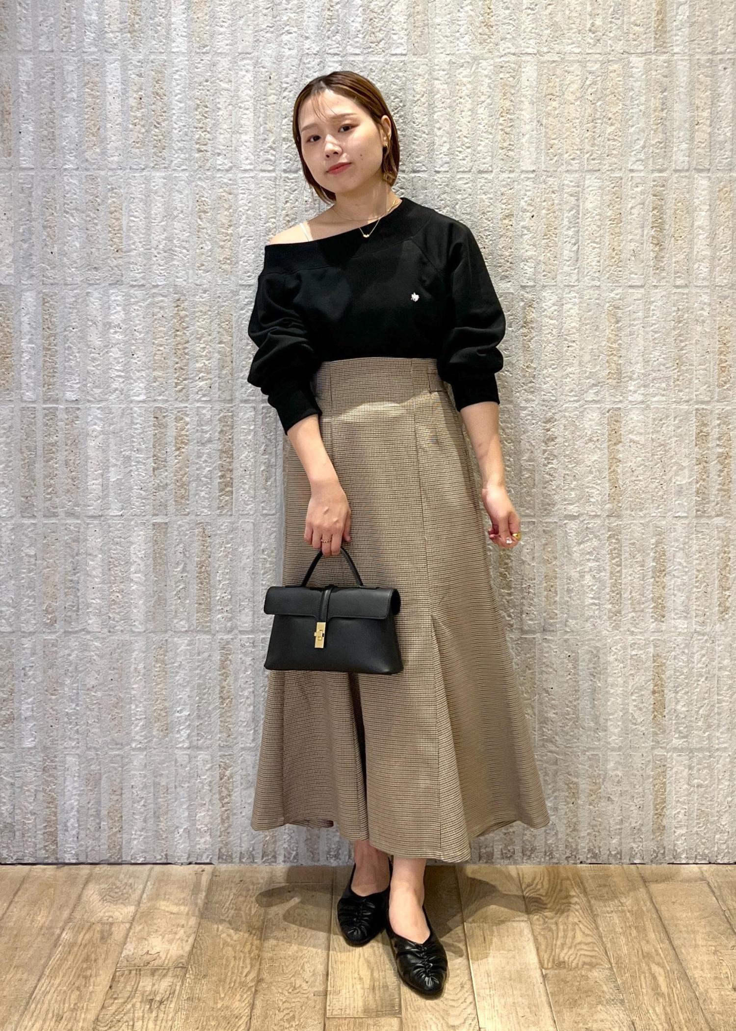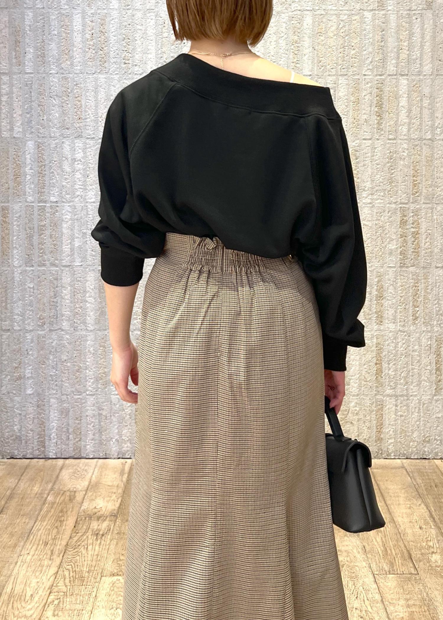 トップスでラフさを出しつつも、マーメイドスカート合わせで