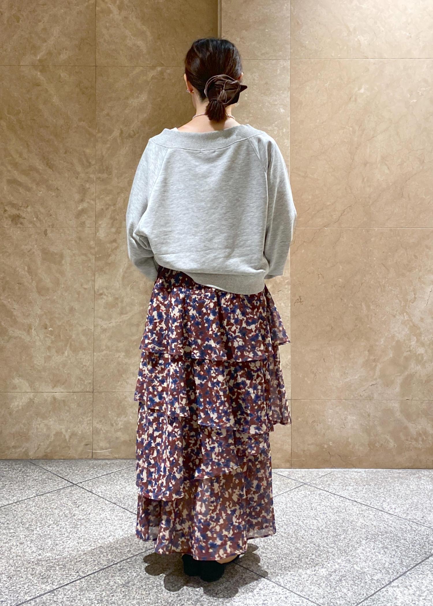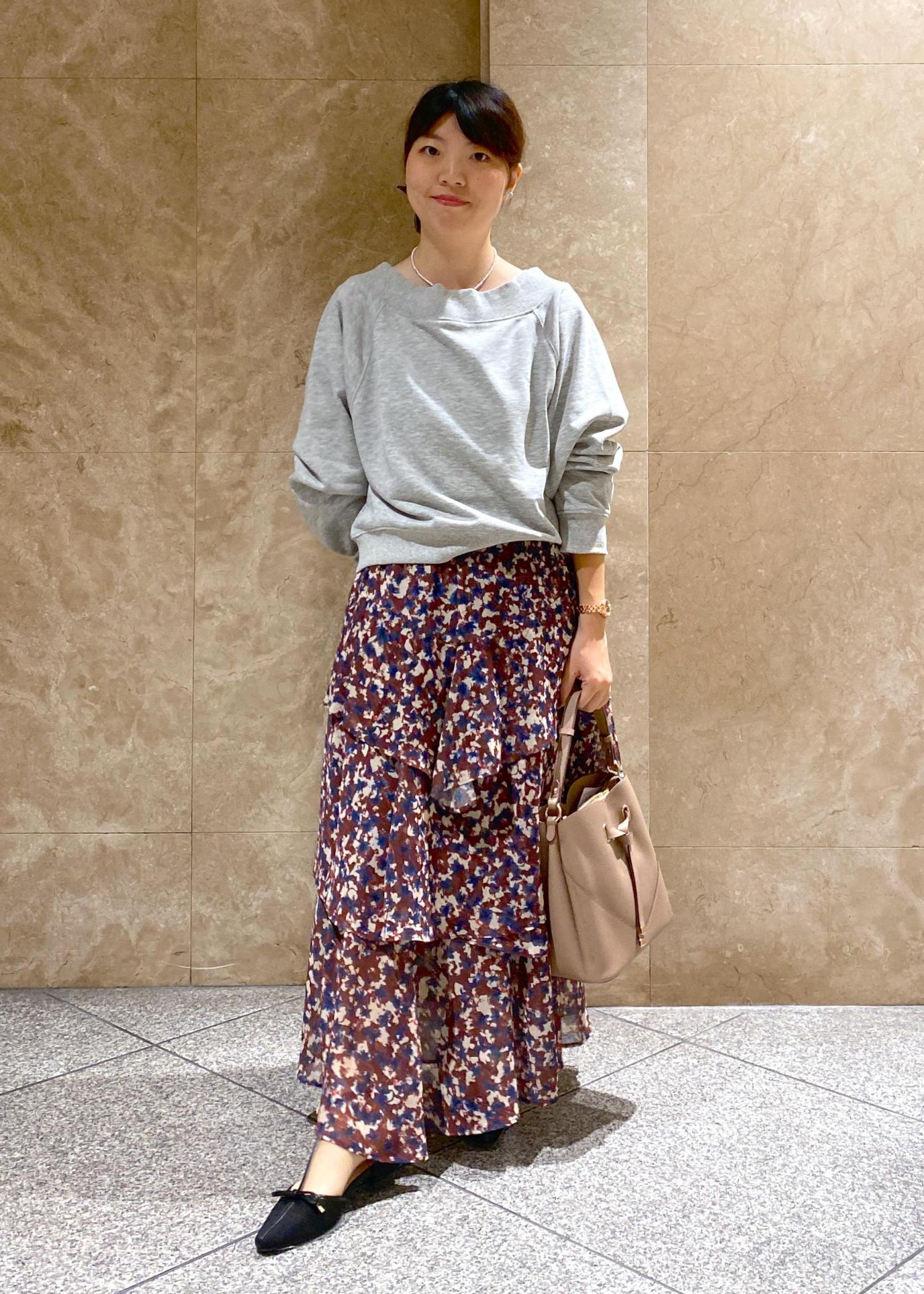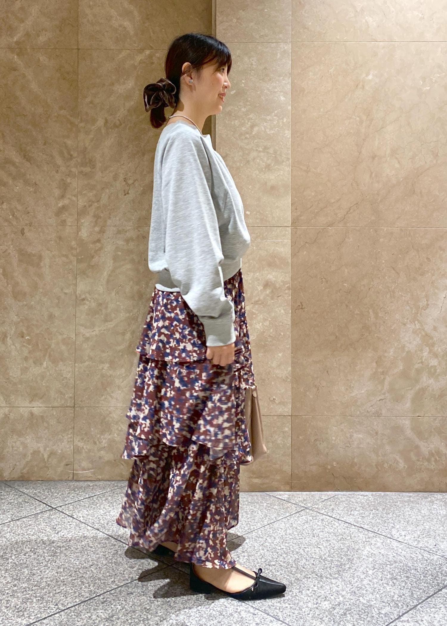 ウエストはゴムなので、とても楽ちんに履けました!ティアードスカートなので、女性らしい印象に♡ -