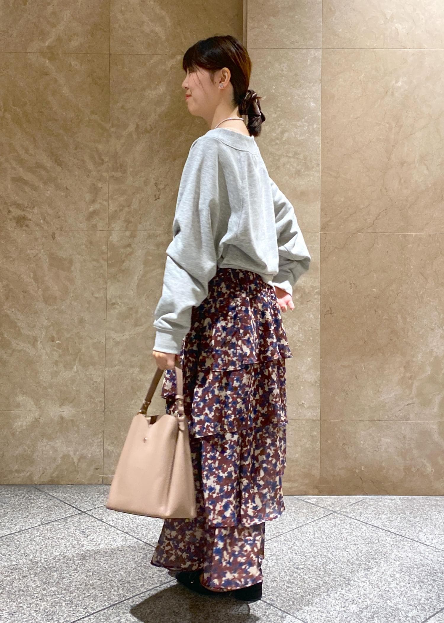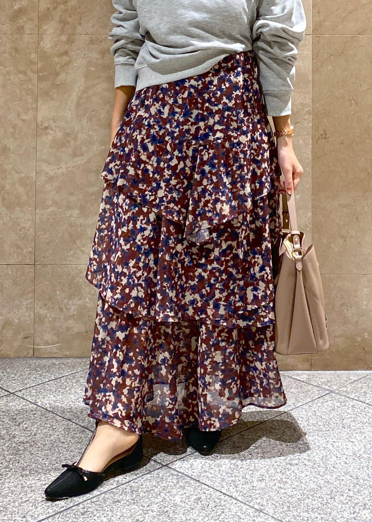 VIS花柄アソート楊柳ティアードスカートブラウン系 / F¥4,613レビュー150cmでくるぶしの上にかかる丈感でした!
