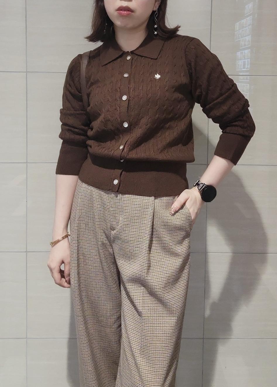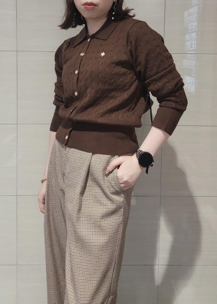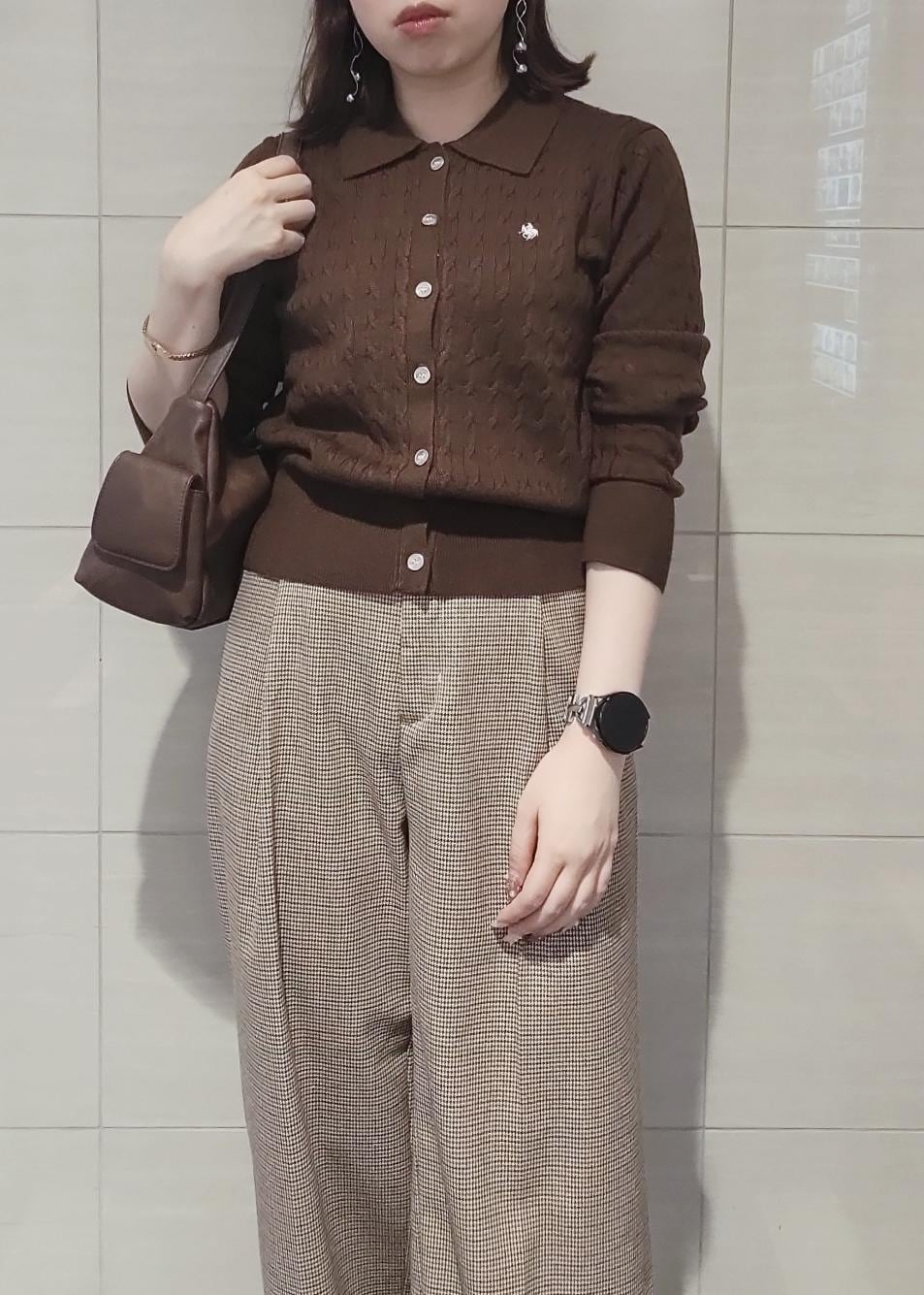 VIS【POLO BCS】VIS別注ミニケーブルポロ襟ニットカーディガンダークブラウン / F¥7,150レビューチクチク感のないニット素材で、伸縮性もあり着心地◎です!