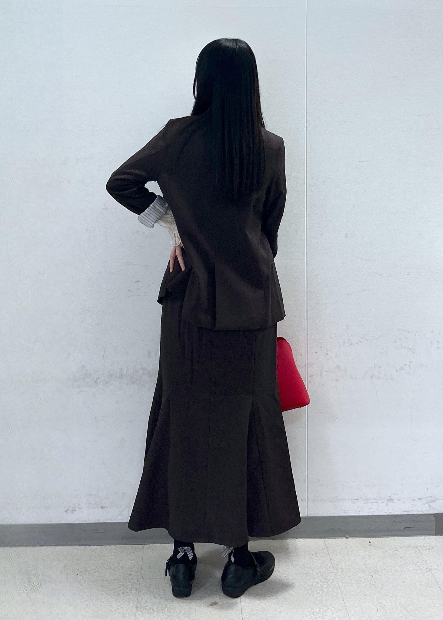 VIS美easyウーリッシュマーメイドスカート/セットアップ対応・イージーケアダークブラウン / M¥6,589レビュー人気の美easyシリーズ!ウールの様な質感ですが実際はポリエステルでできており洗濯可能です。裾の広がり方がとても綺麗で、シワになりにくいため、長時間座ったり、出先に畳んで持って行っても綺麗なままです♡丈は身長166センチで足首上くらいでした。