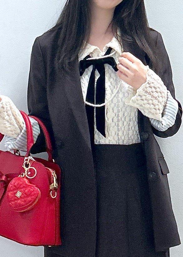 VISベロアリボンガラスパールネックレスホワイト / F¥3,289レビュー重厚感のあるベロアのリボンが襟があるトップスとの合わせでボウタイ風に。襟の無いデザインのトップスと合わせても首元にアクセントを持たせられます。