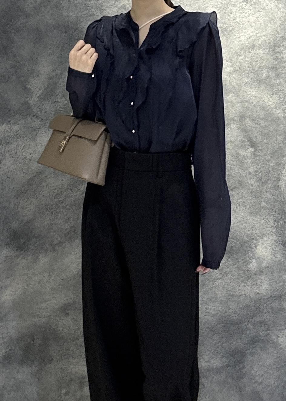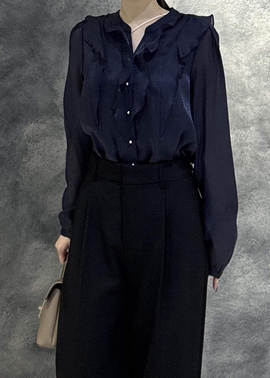 VISシアーラッフルブラウス/イージーケアネイビー / F¥3,842レビューフリルは大きすぎないので、大人っぽく上品な印象にしてくれます!