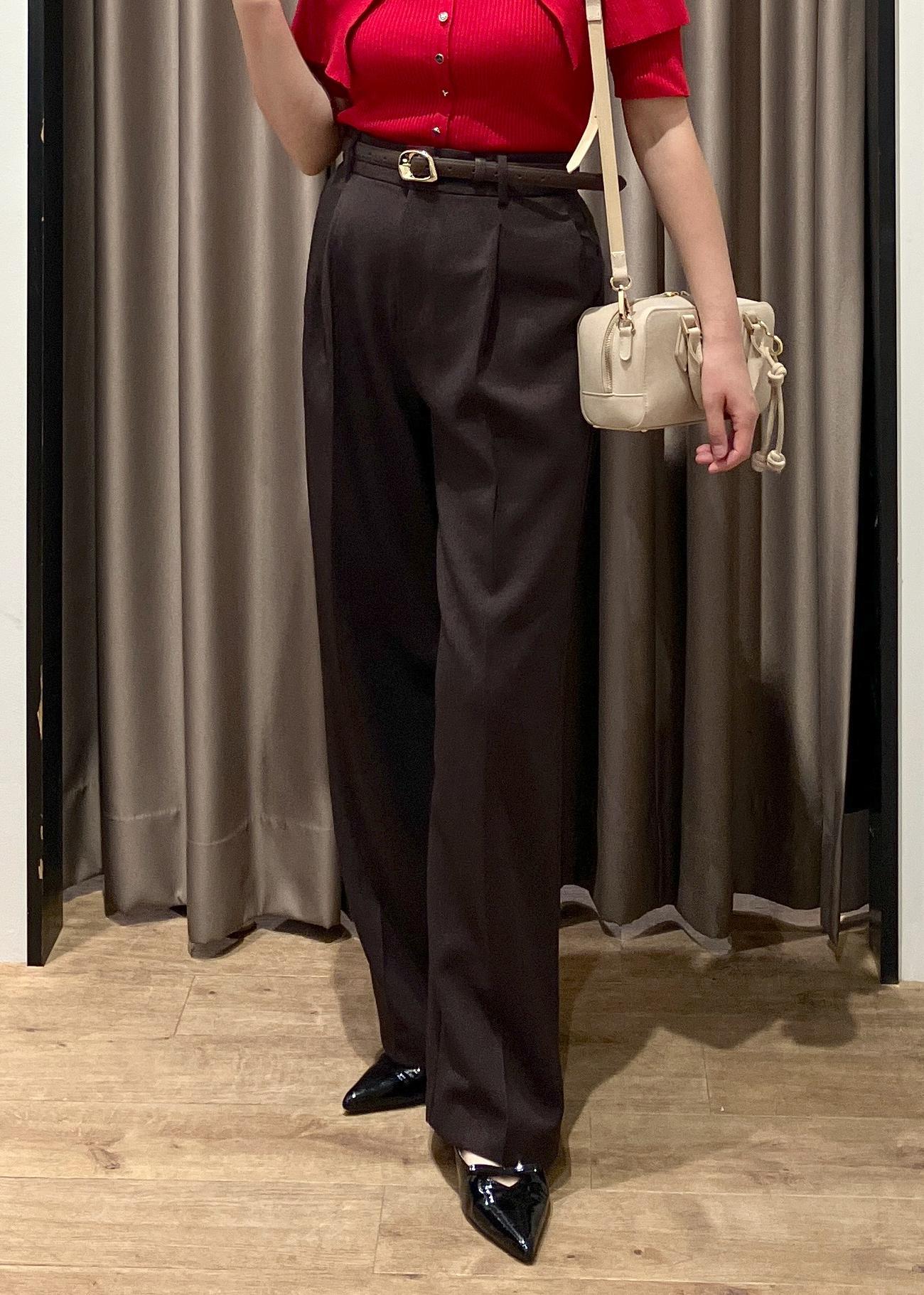 VIS【美easy】ウーリッシュワンタックワイドパンツ【セットアップ対応/洗える】ダークブラウン / M¥6,589レビュー柔らかな肌触りと生地感、ワイドパンツなのでゆったりしていますが、サイドのボタンでサイズ調整が可能!着丈は長めです!158㎝、Mサイズ着用しています!スニーカーやヒールなど少し高さのある靴と合わせています!シワになりにくく、家でお洗濯可能なのが嬉しいです!