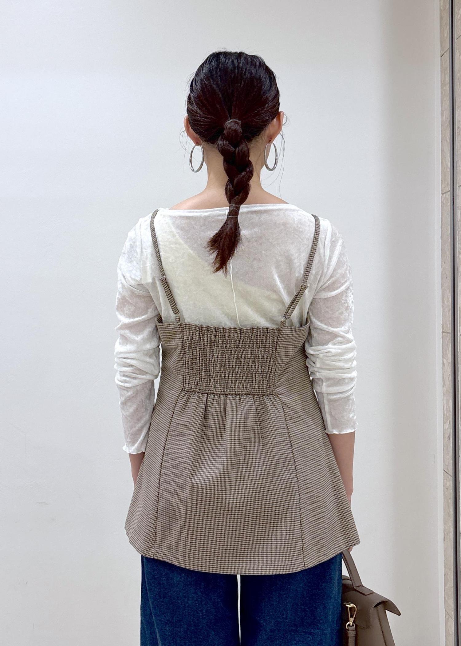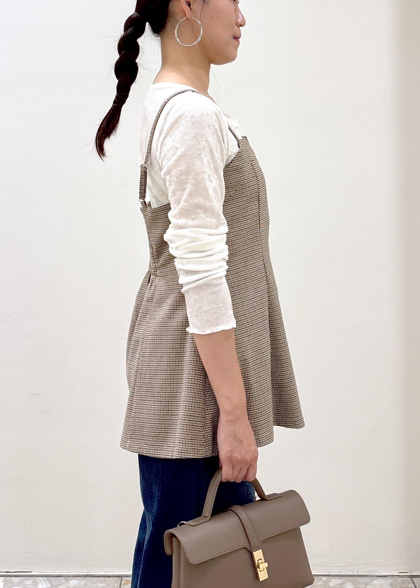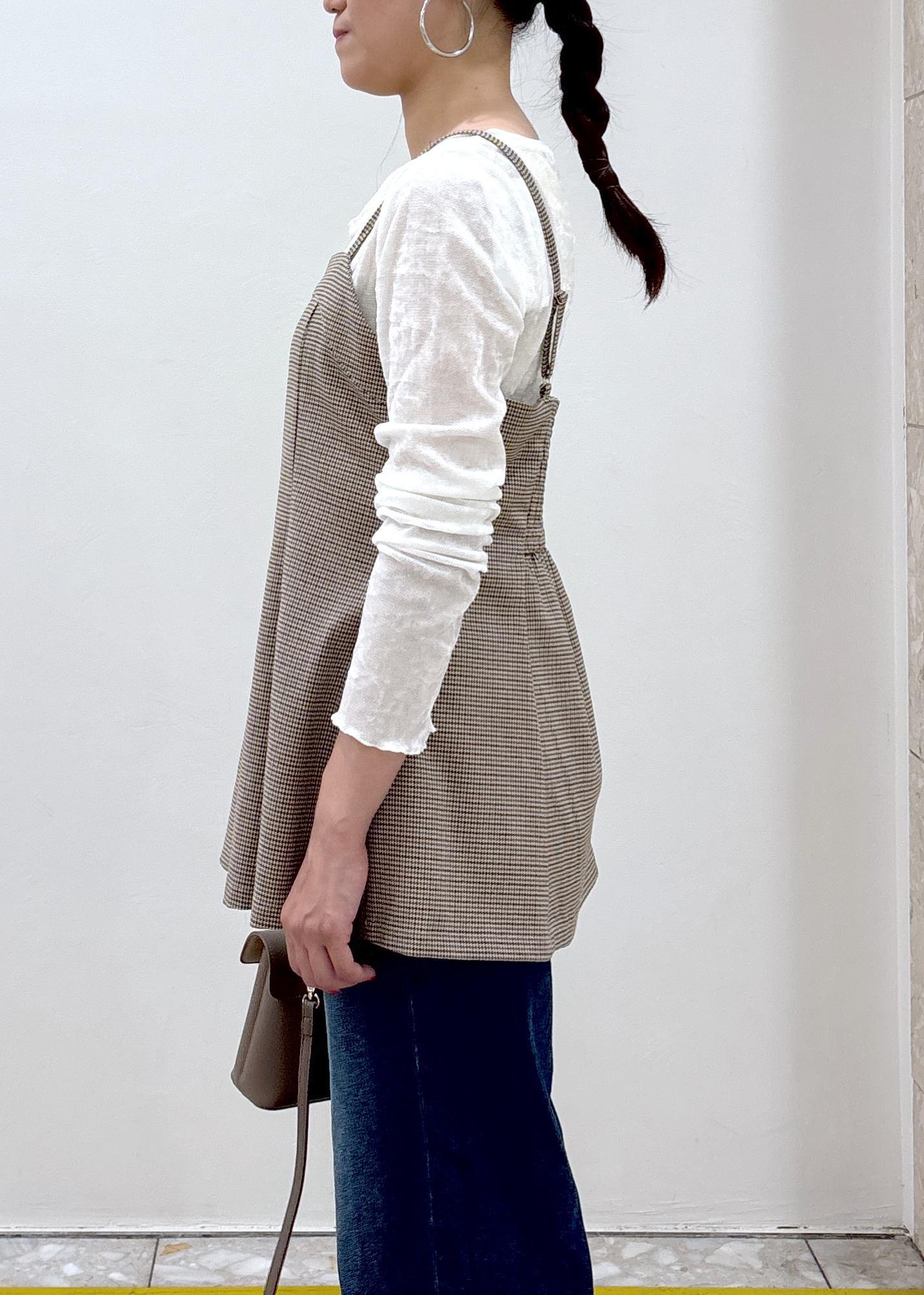 ビスチェやキャミワンピースの中はもちろん、気温が下がった時はニットやカーディガンにも合わせられるので、長く着回しが効きます。 -