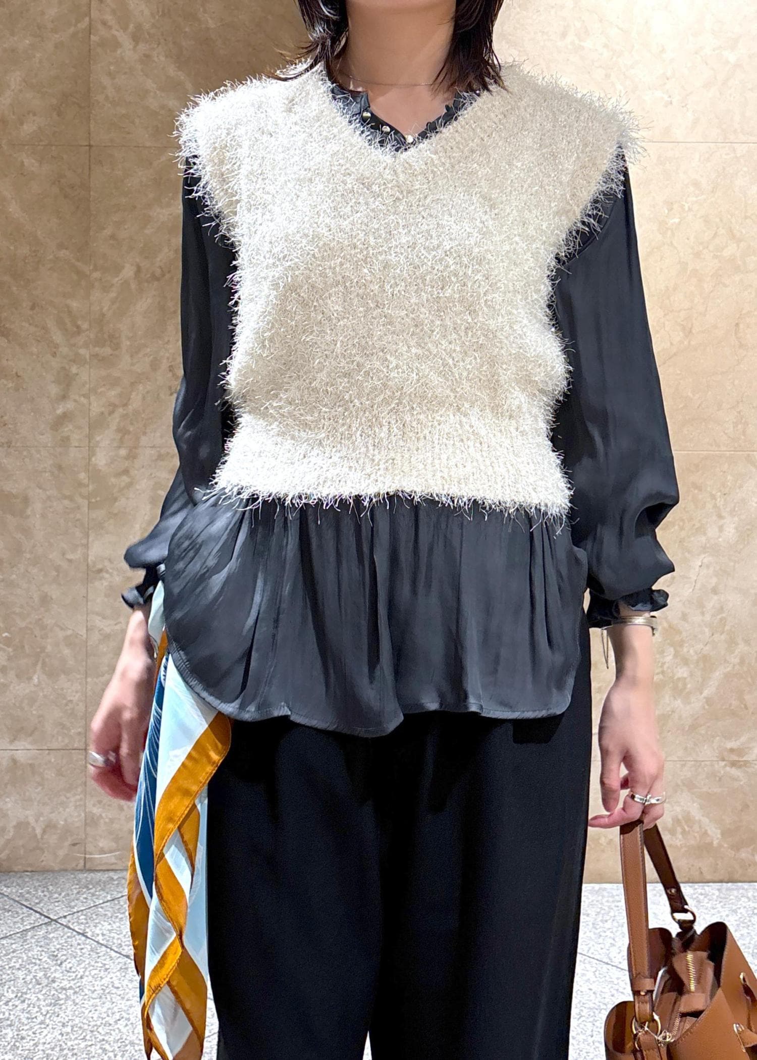 VIS【WEB限定サイズ:MT/着丈が選べる】【洗える】フェザーヤーンニットベストホワイト系 / M¥3,293レビュー腰が隠れるくらいの丈感です。