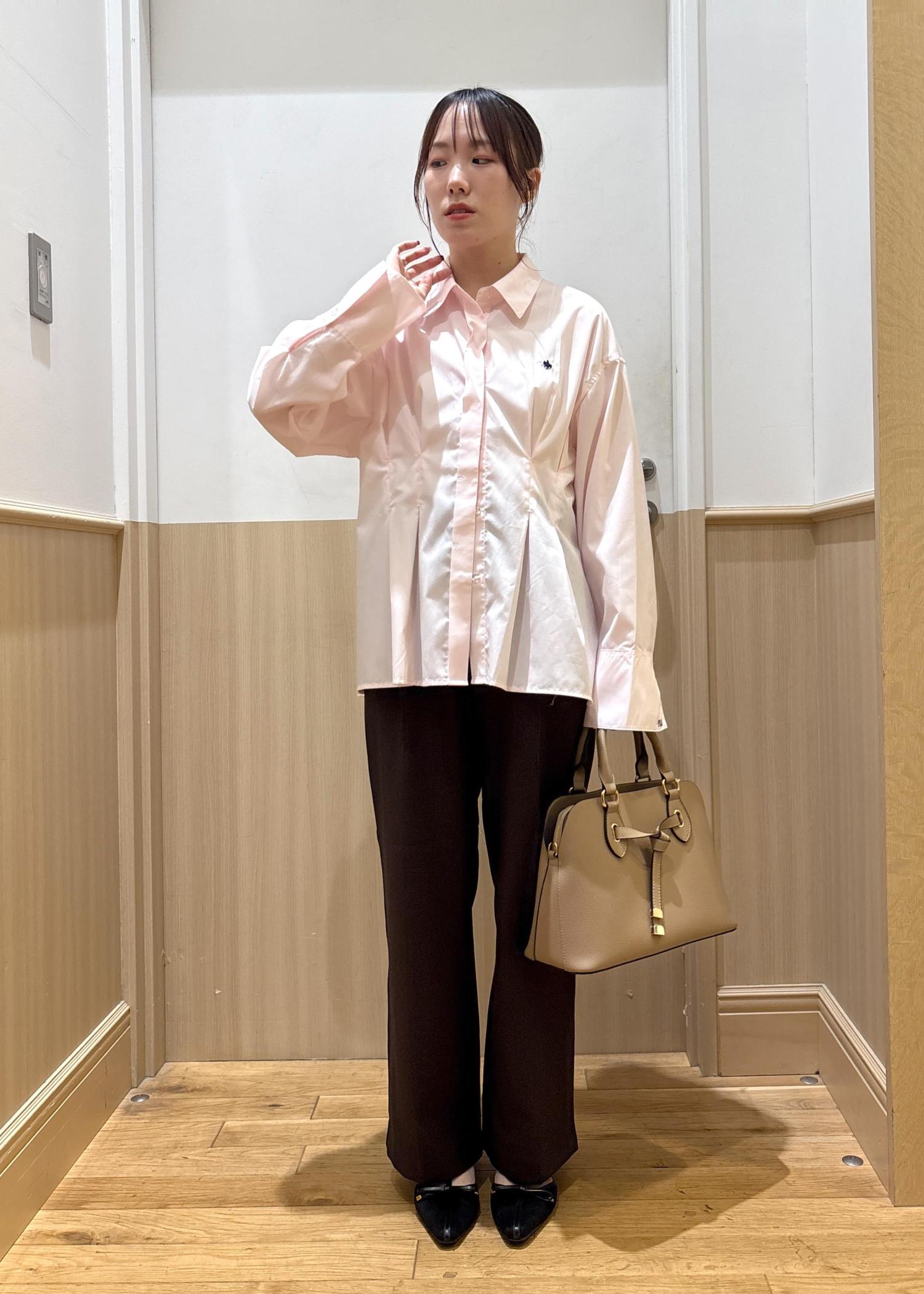 VIS【POLOBCS】VIS別注ウエストタックフレアシャツピンク / F¥6,930レビュー丈はヒップがすっぽり隠れるくらいの安心感のある丈感ですが、ペプラムデザインで脚長、すっきり効果がありスタイルアップできます◎
