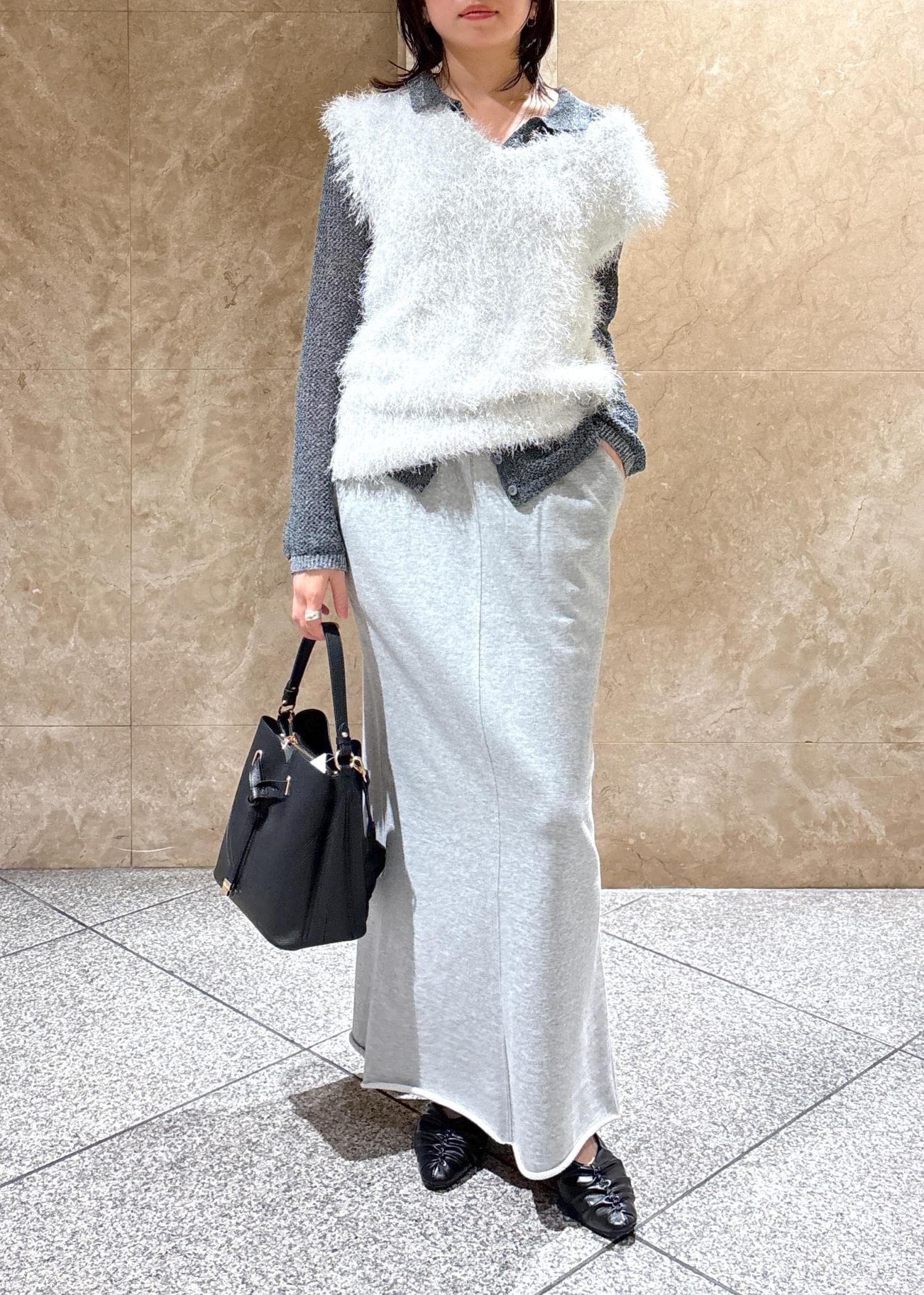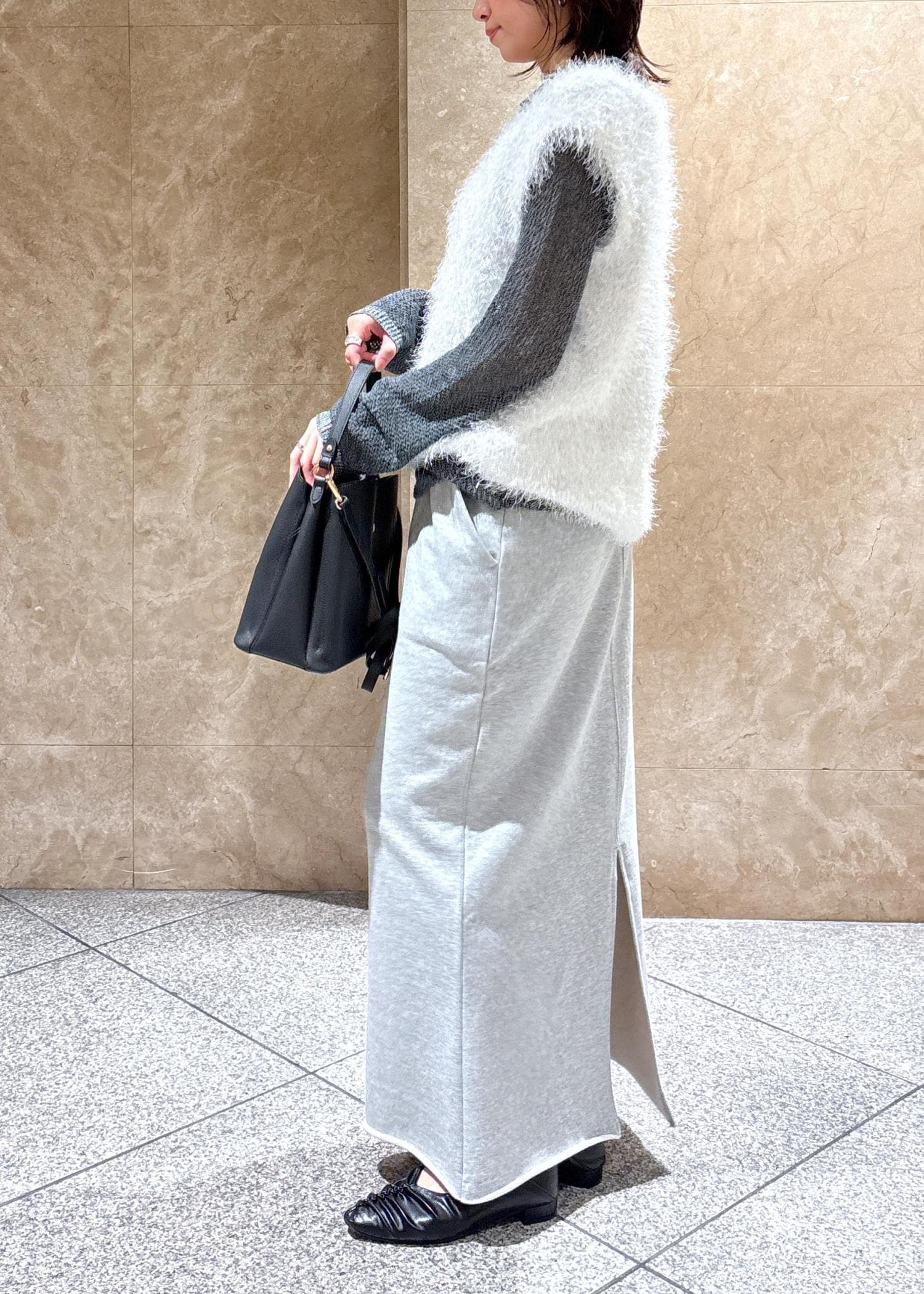 VISミニ裏毛ナロースカートライトグレー / F¥5,489レビュー薄手すぎず厚みがありすぎず、といった素材感で、色んなシーズンに使えそう✨