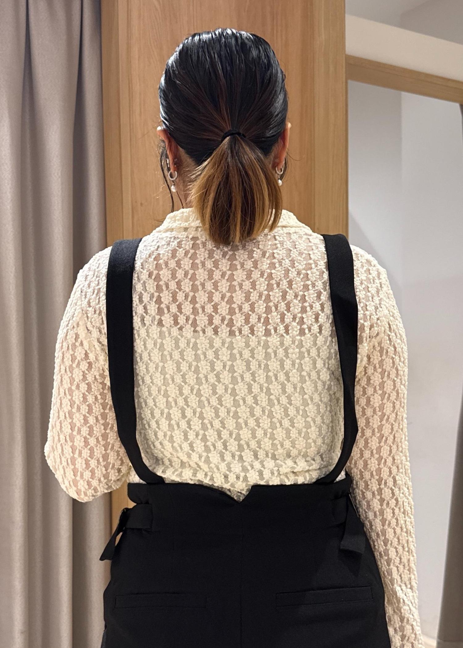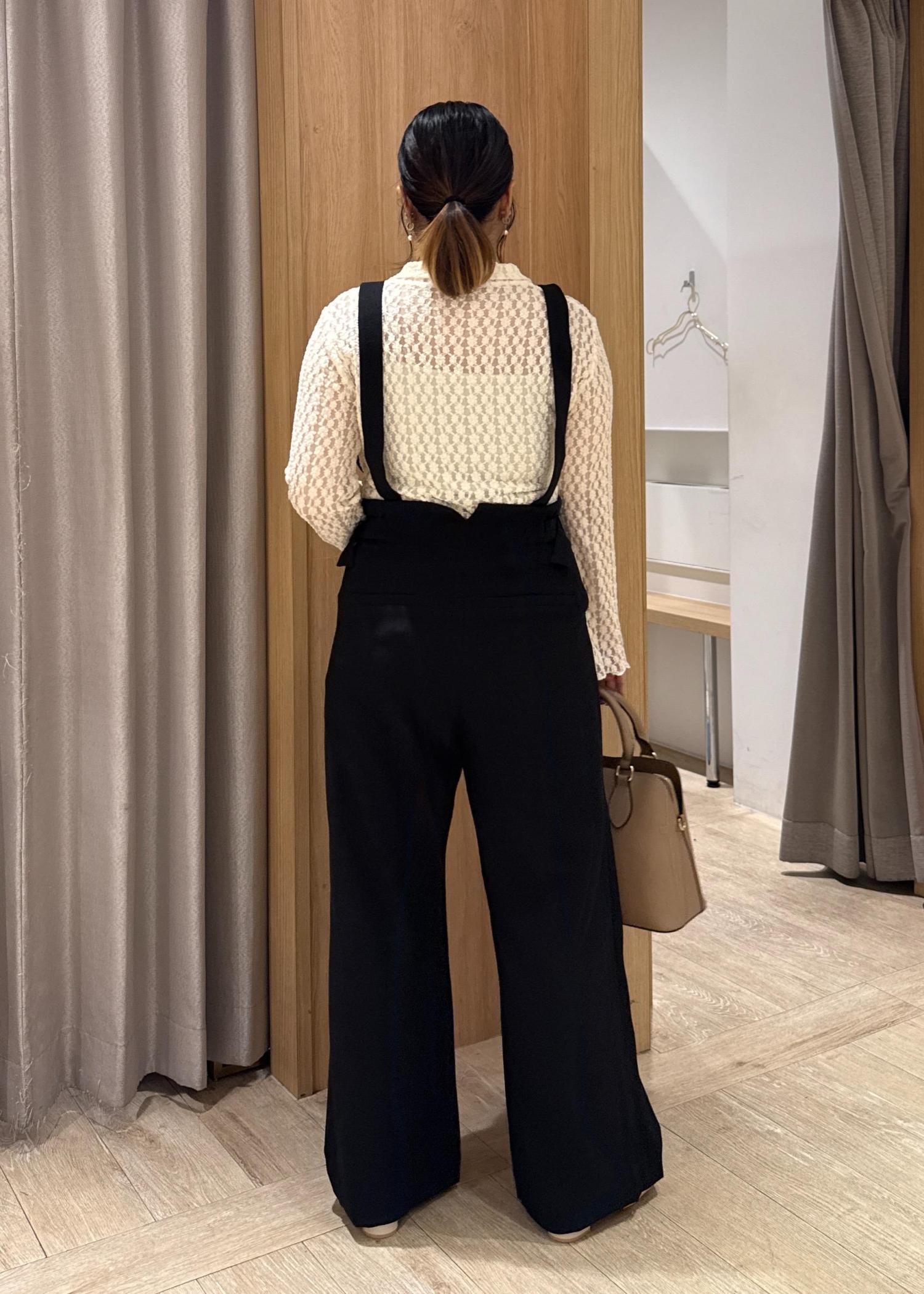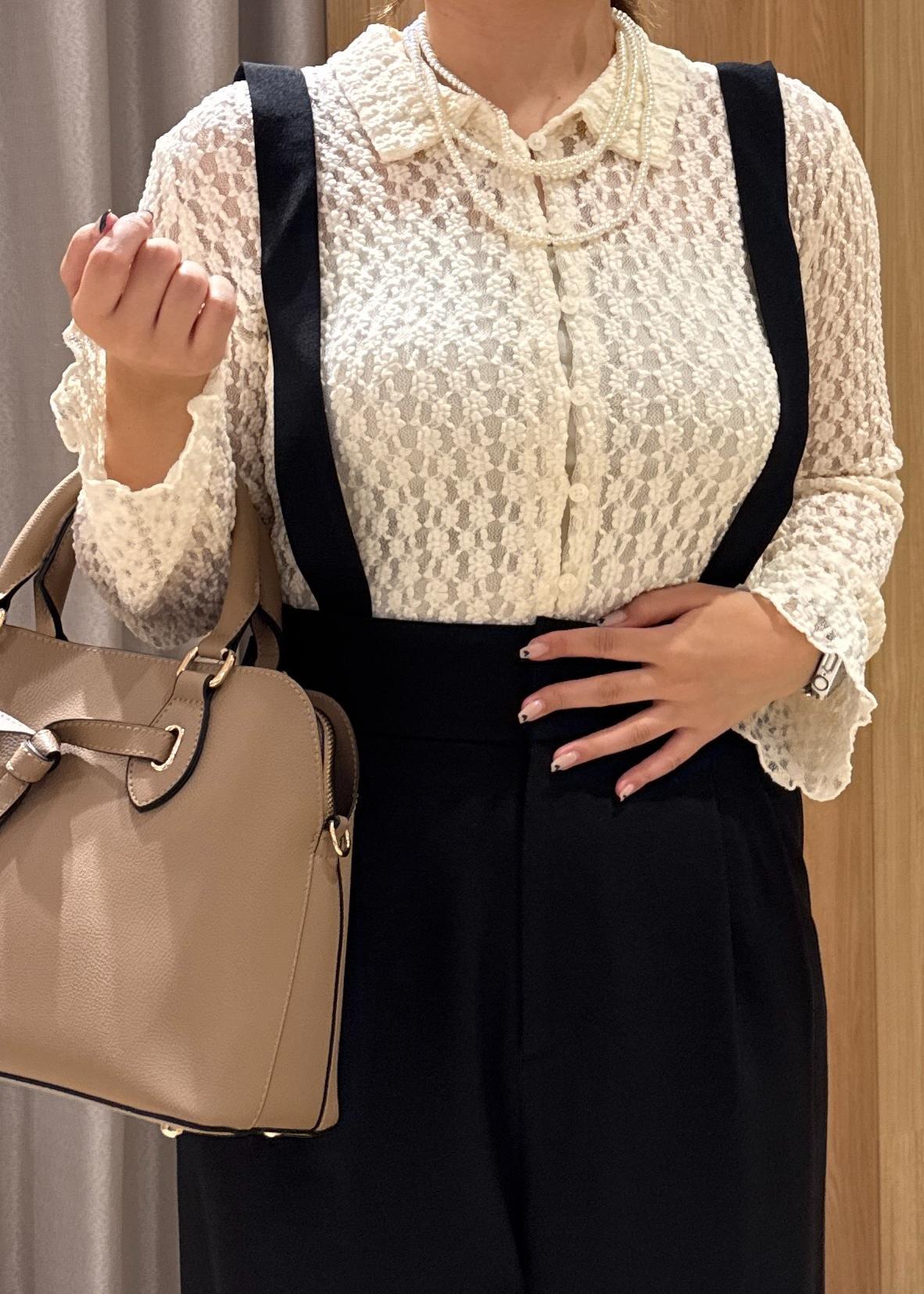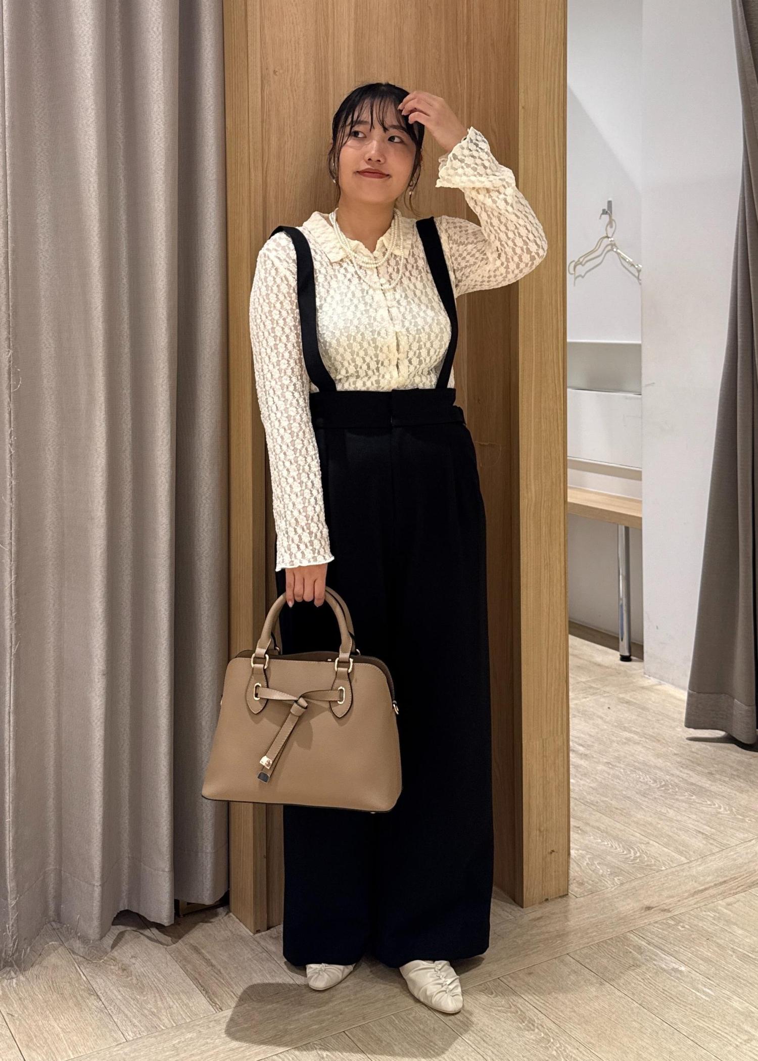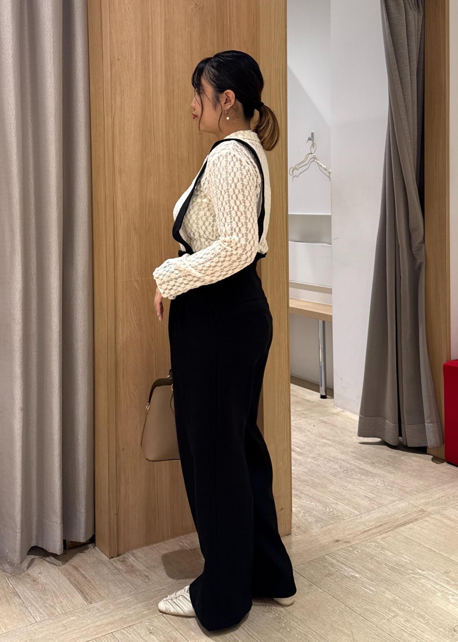 サスペンダーワイドパンツ×レースカーディガンコーデ︎☺︎