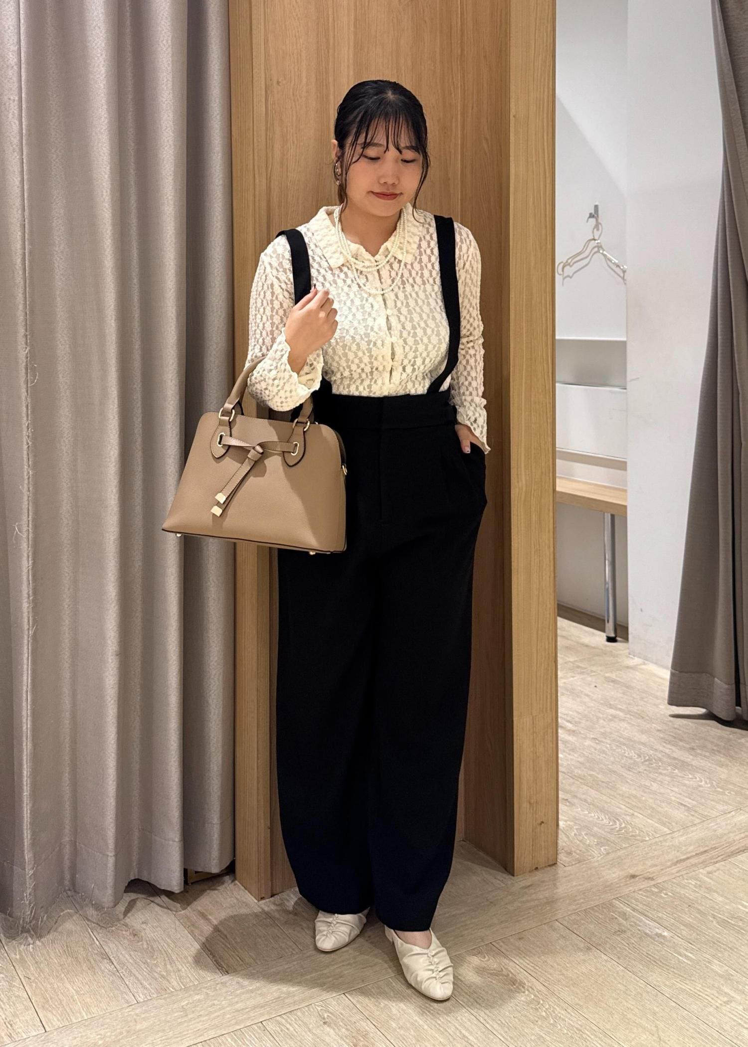 サスペンダーを外して、カーディガンを外に出すスタイリングもオススメです♡
