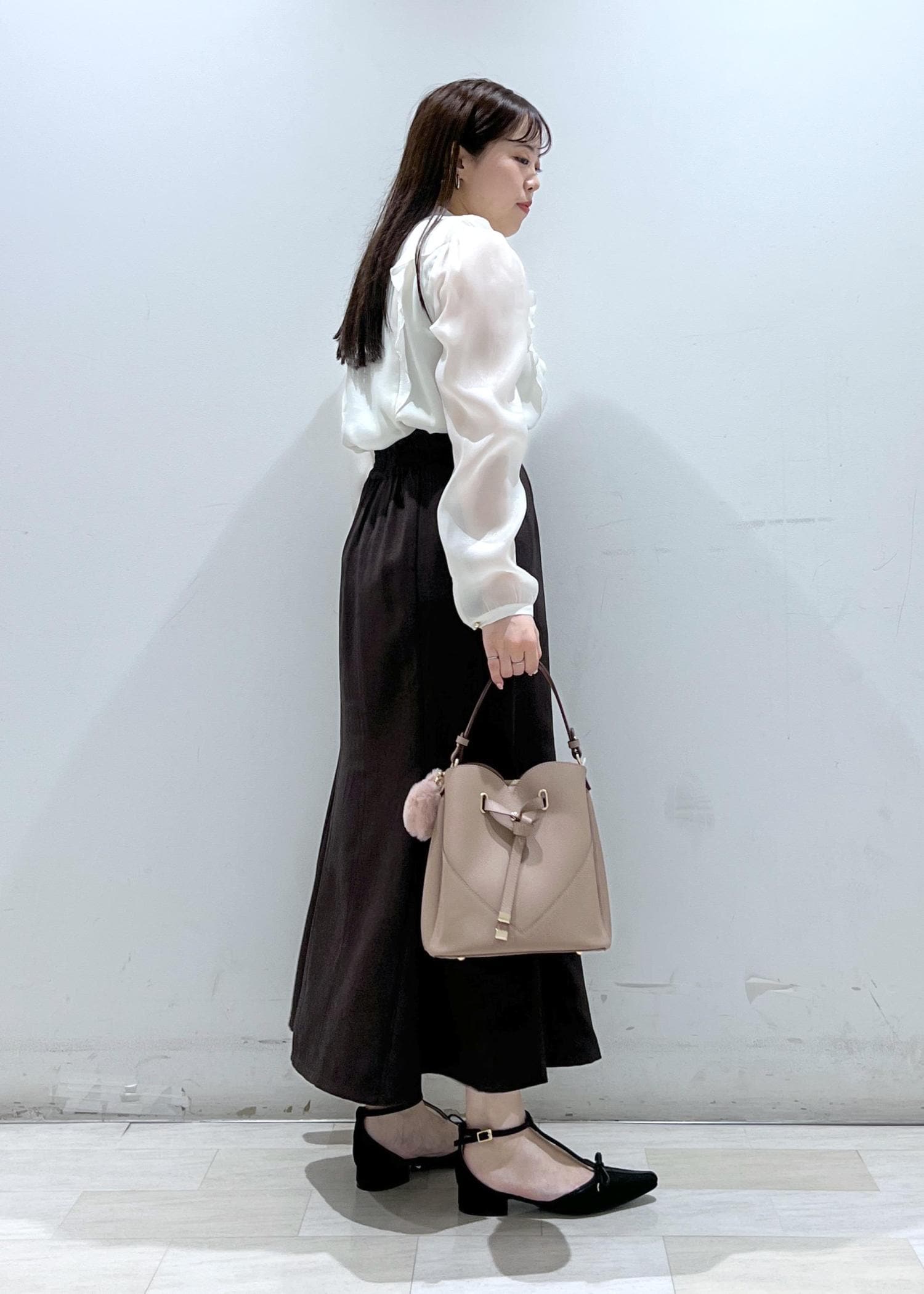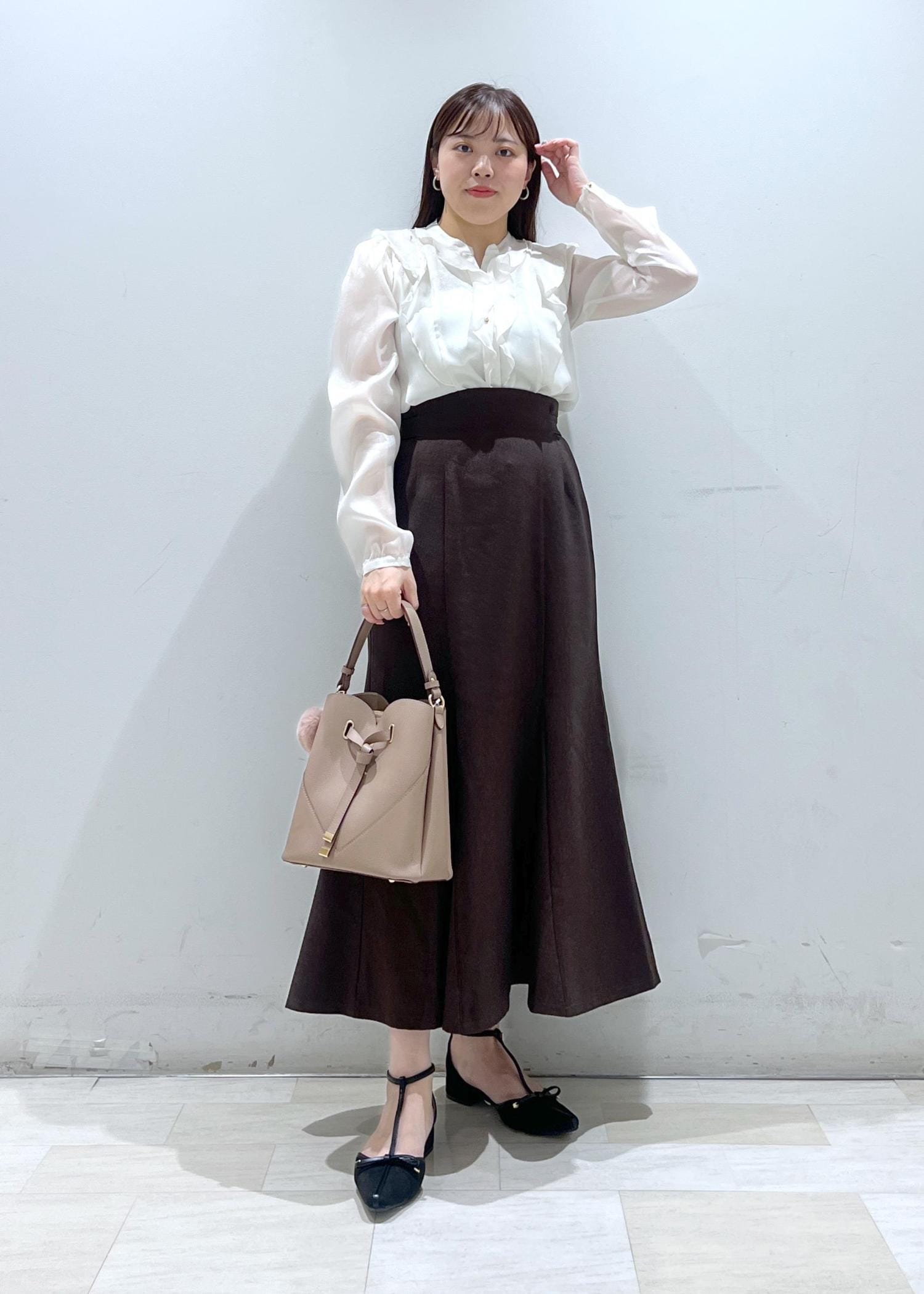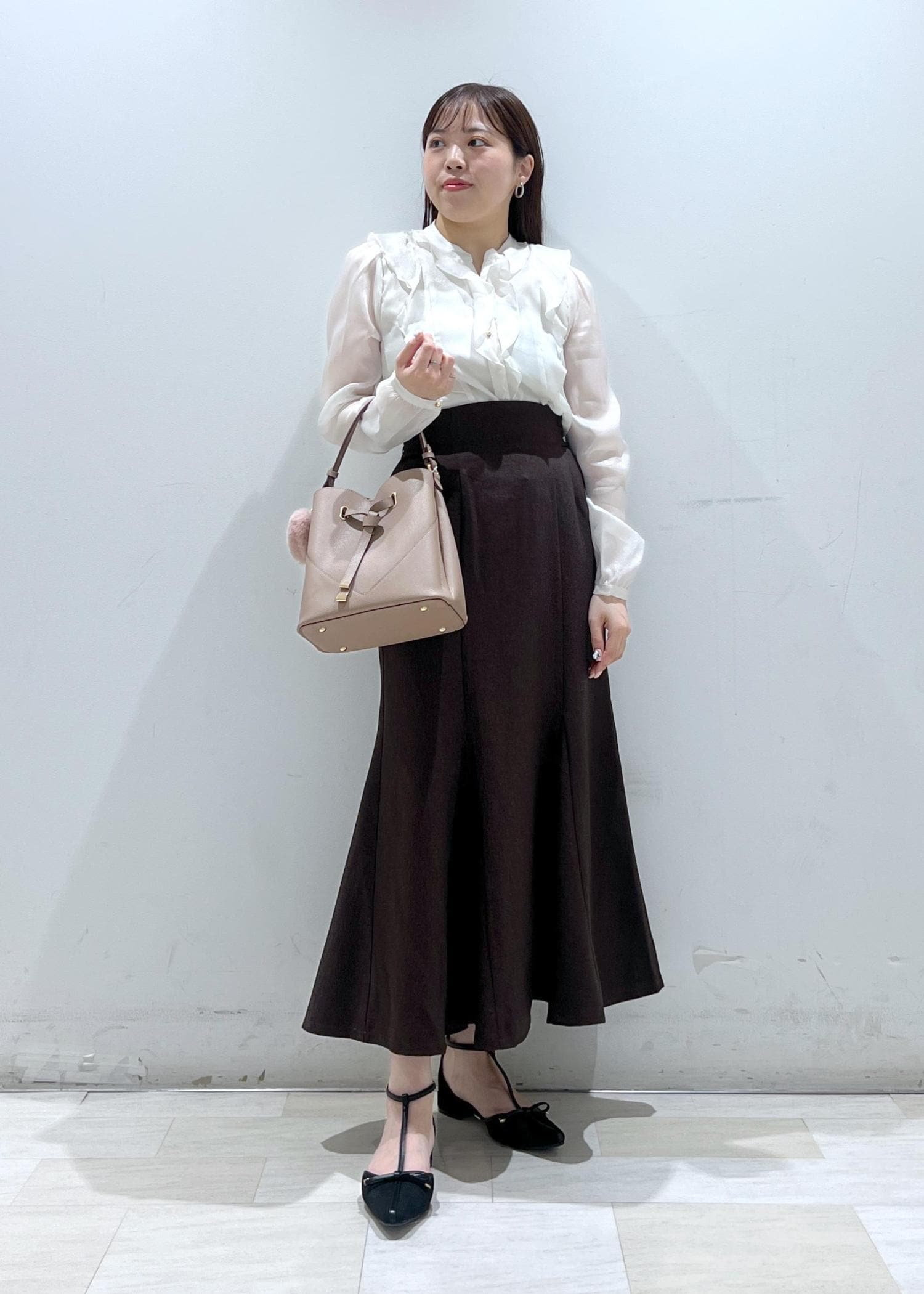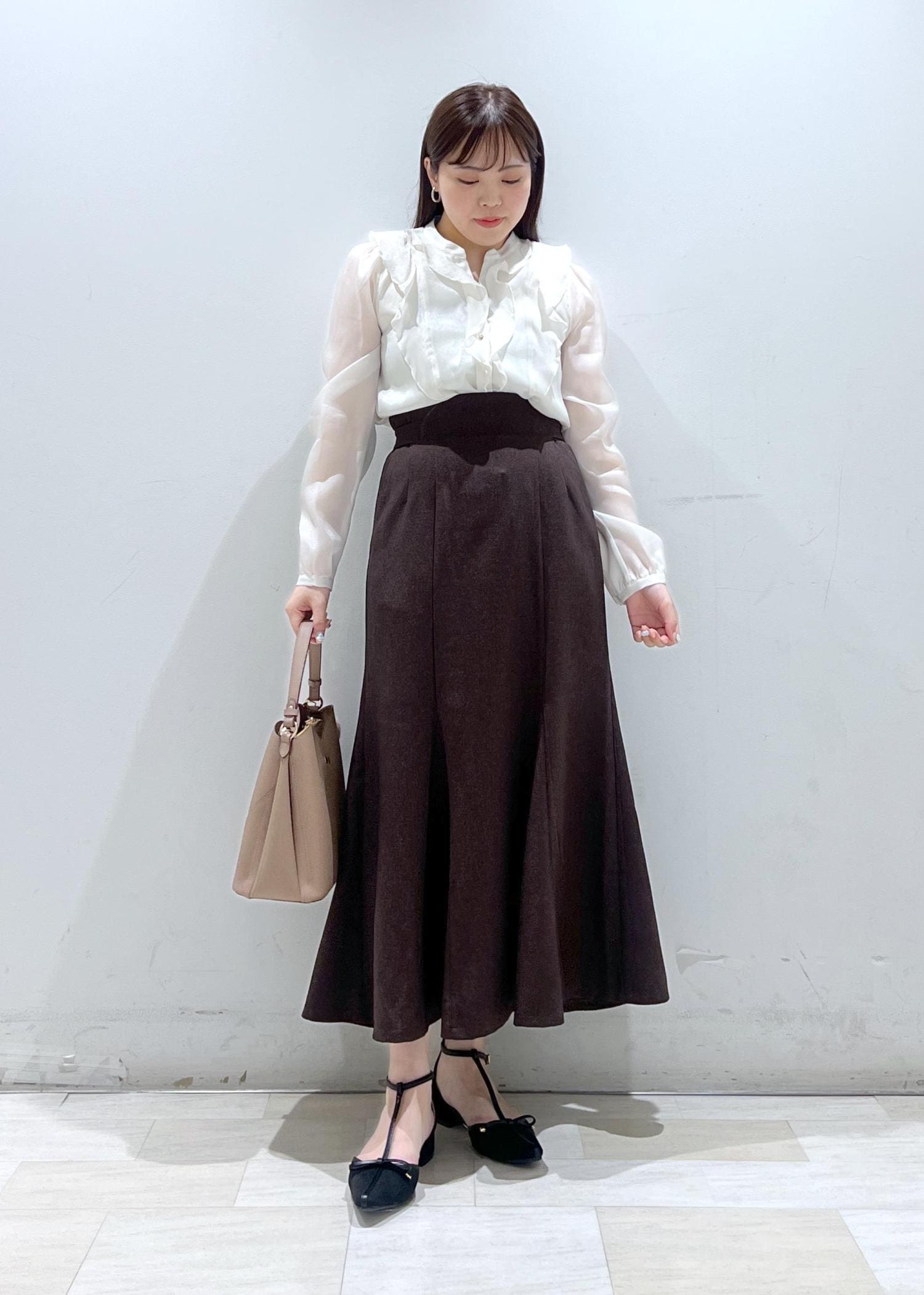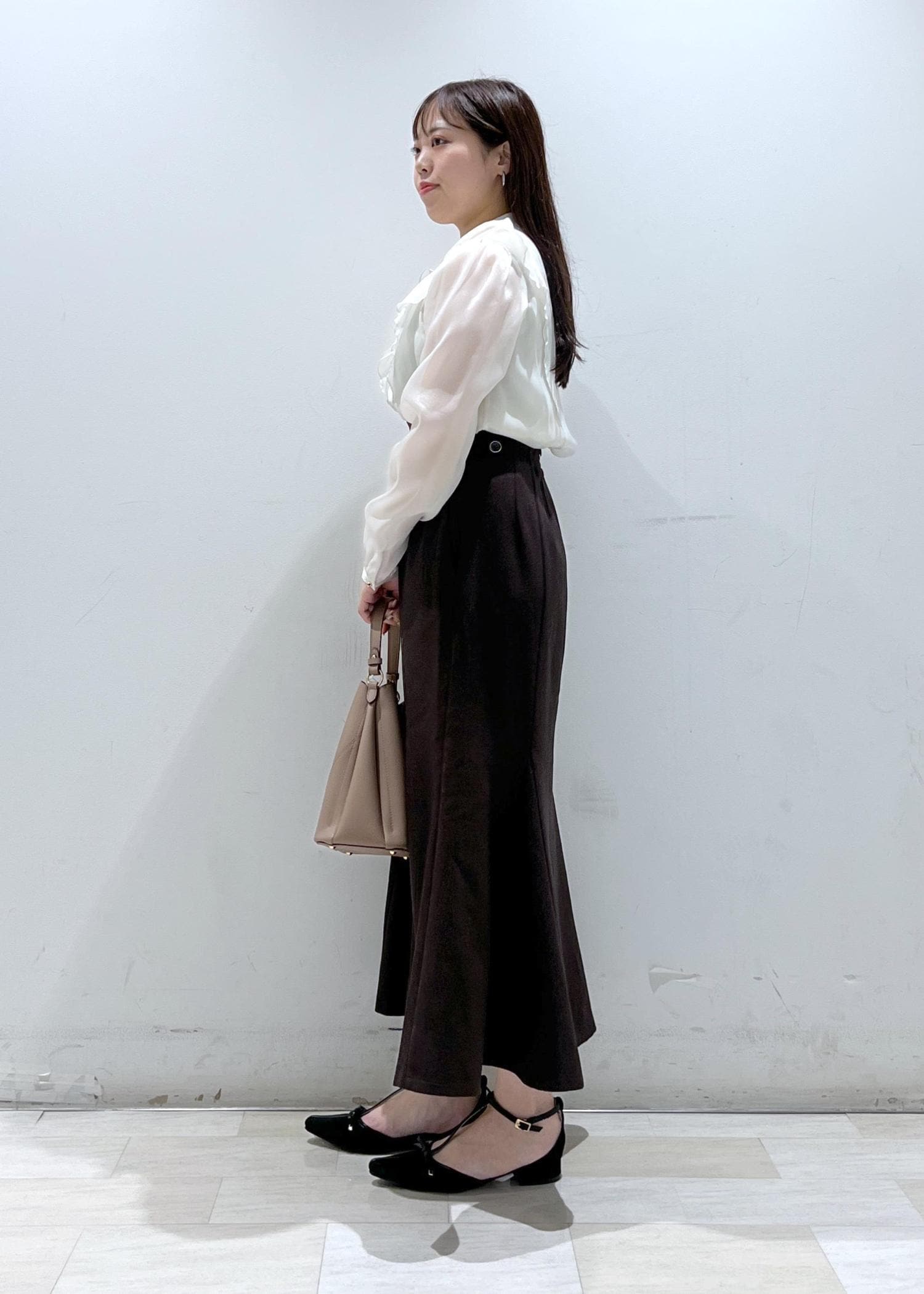 すっきりしたマーメイドシルエットですが後ろウエストゴムが入っており着やすいです。