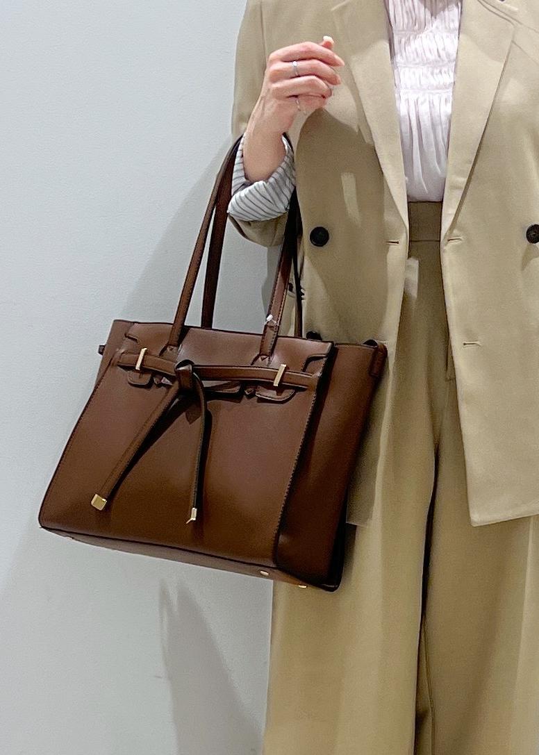 VIS【新色追加】【A4収納】フラップタイトートバッグダークブラウン / F¥7,909レビューフロントのリボンタイがフェミニンなトートバッグ。