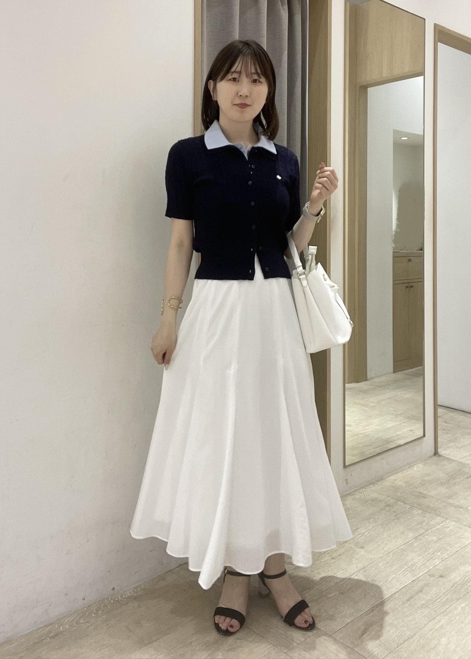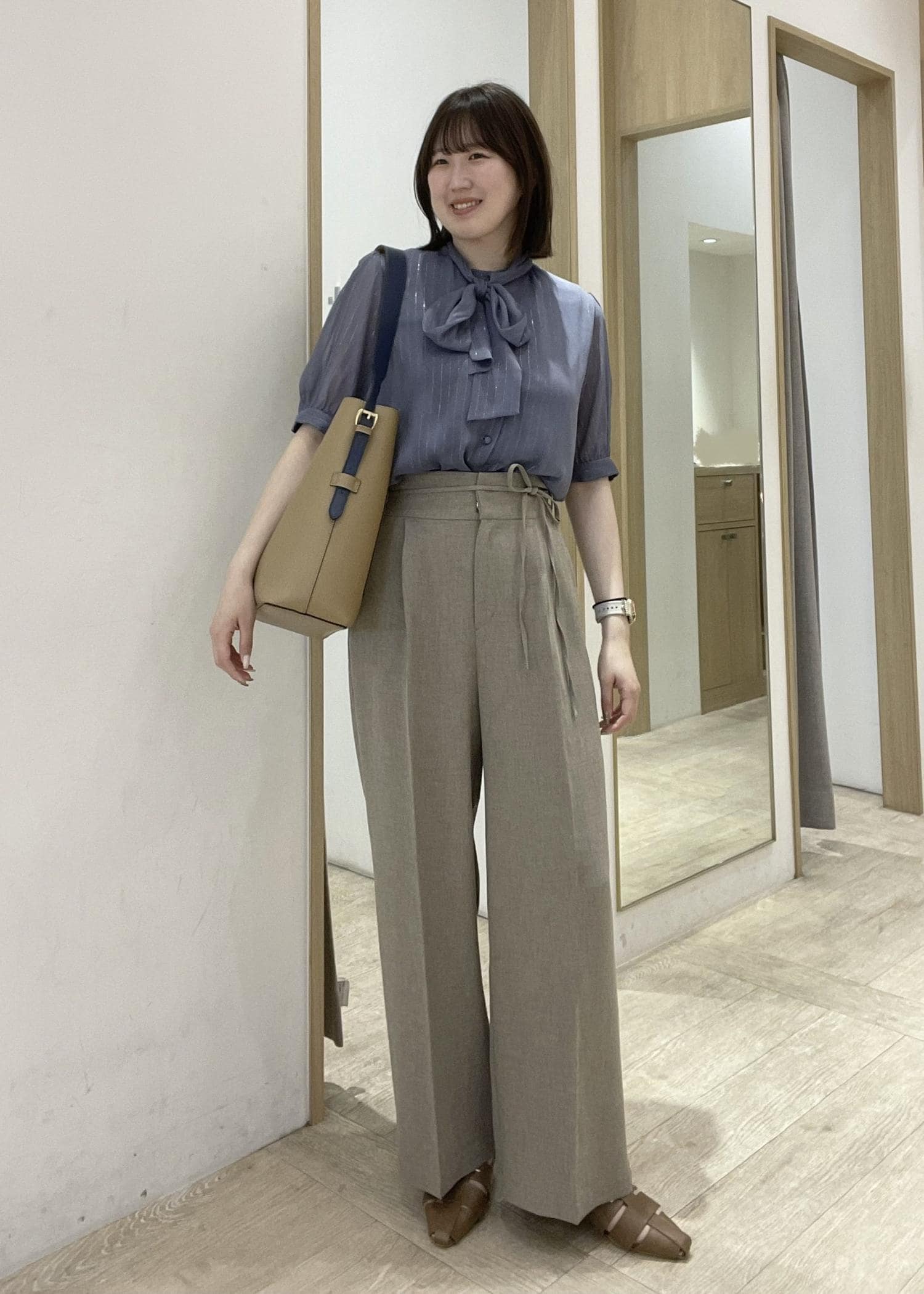 ウエストタックのデザインとフレアスリーブがおしゃれな雰囲気を出しています。