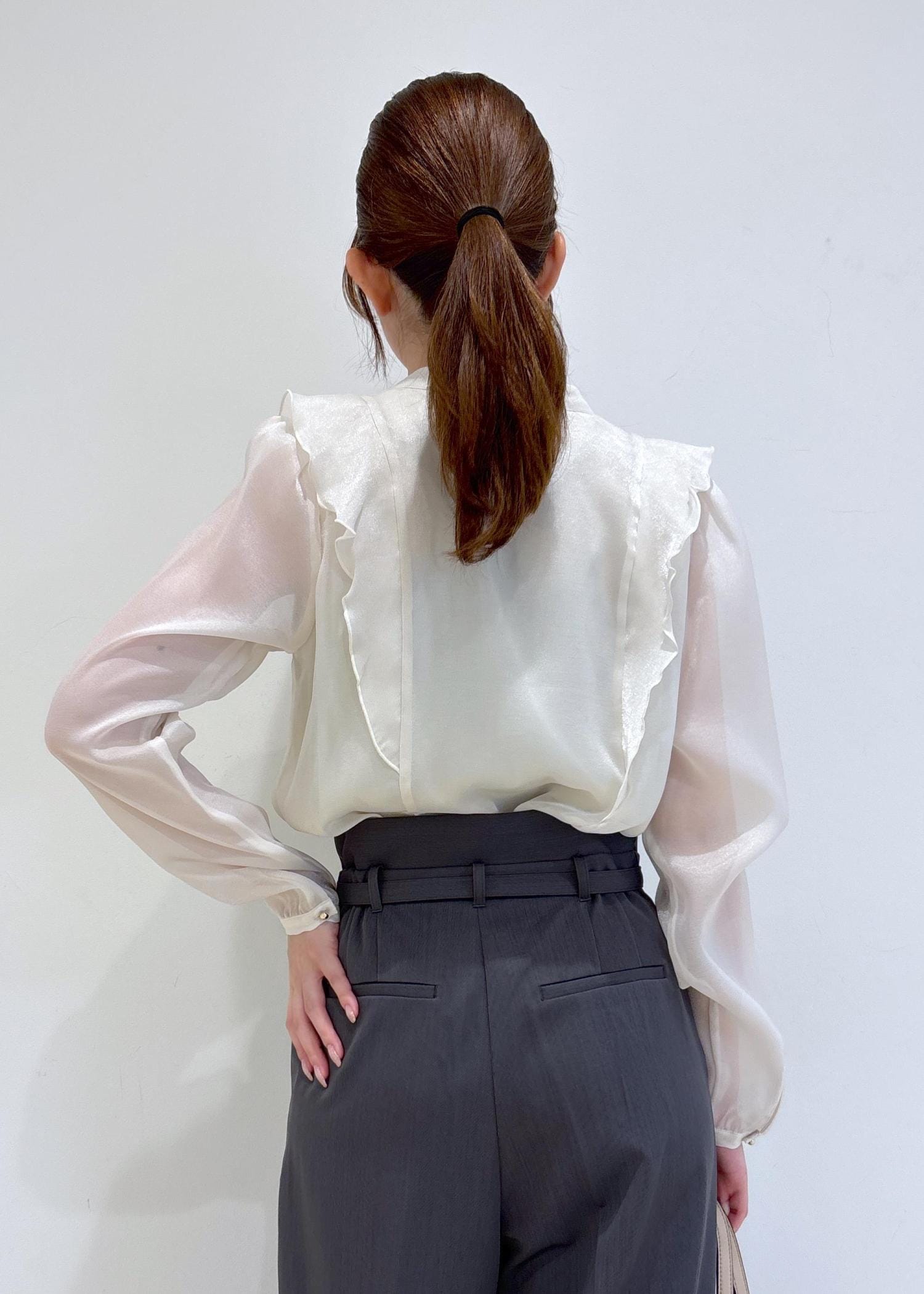 シアーラッフルブラウス/イージーケア