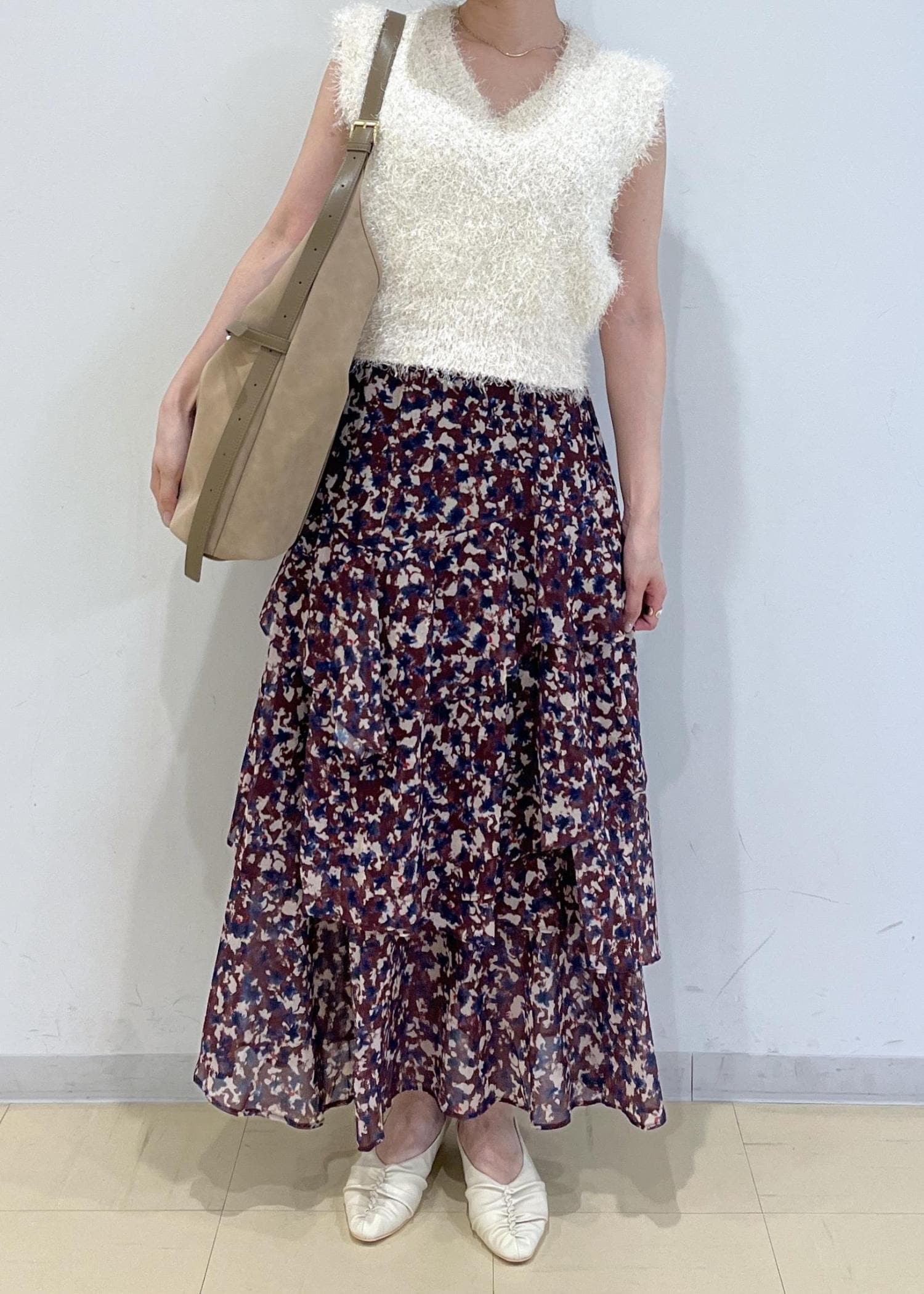 VIS花柄アソート楊柳ティアードスカートブラウン系 / F¥4,613レビュー158㎝、Fサイズ着用。
