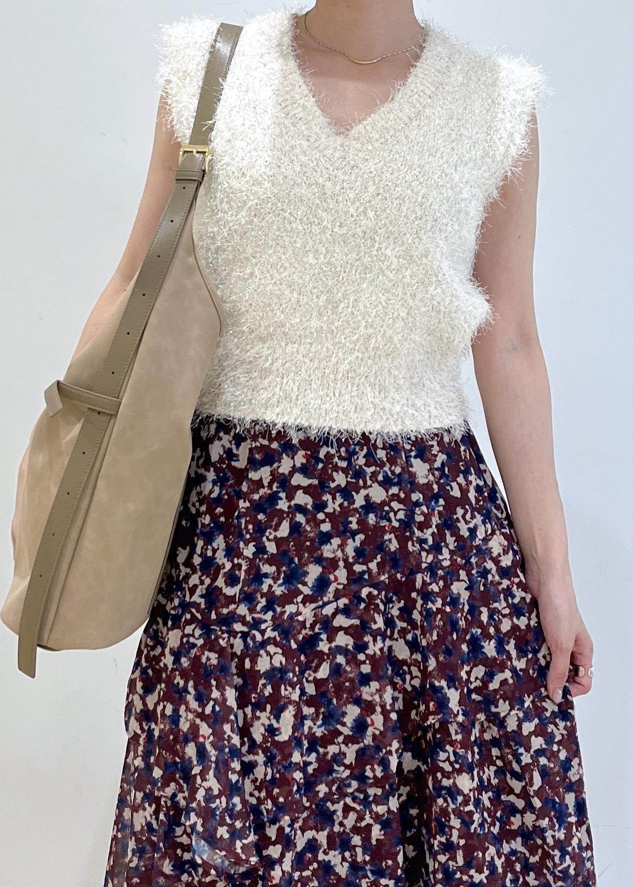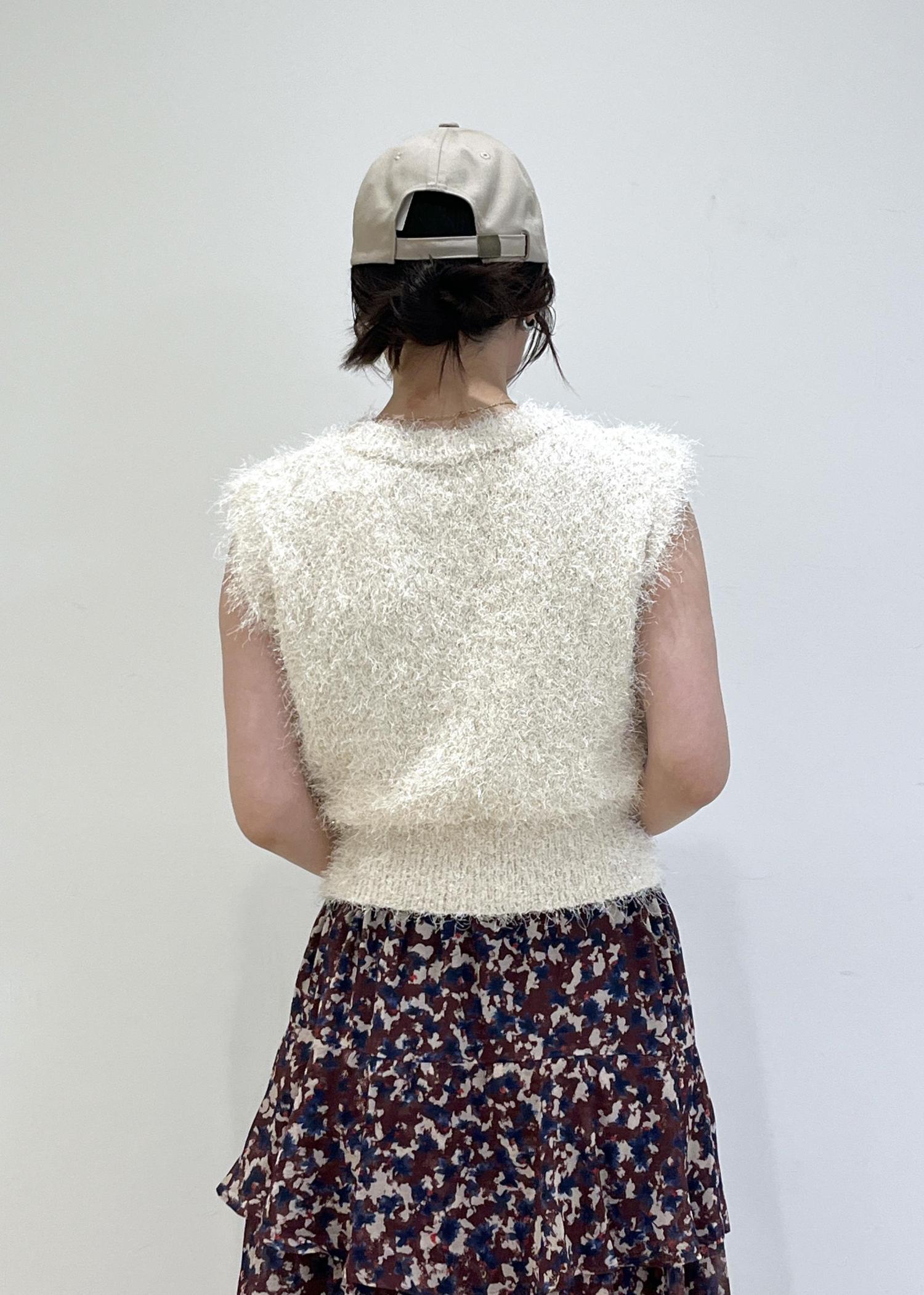 VIS【WEB限定サイズ:MT/着丈が選べる】【洗える】フェザーヤーンニットベストキナリ / M¥3,293レビュー158㎝でMサイズ着用。