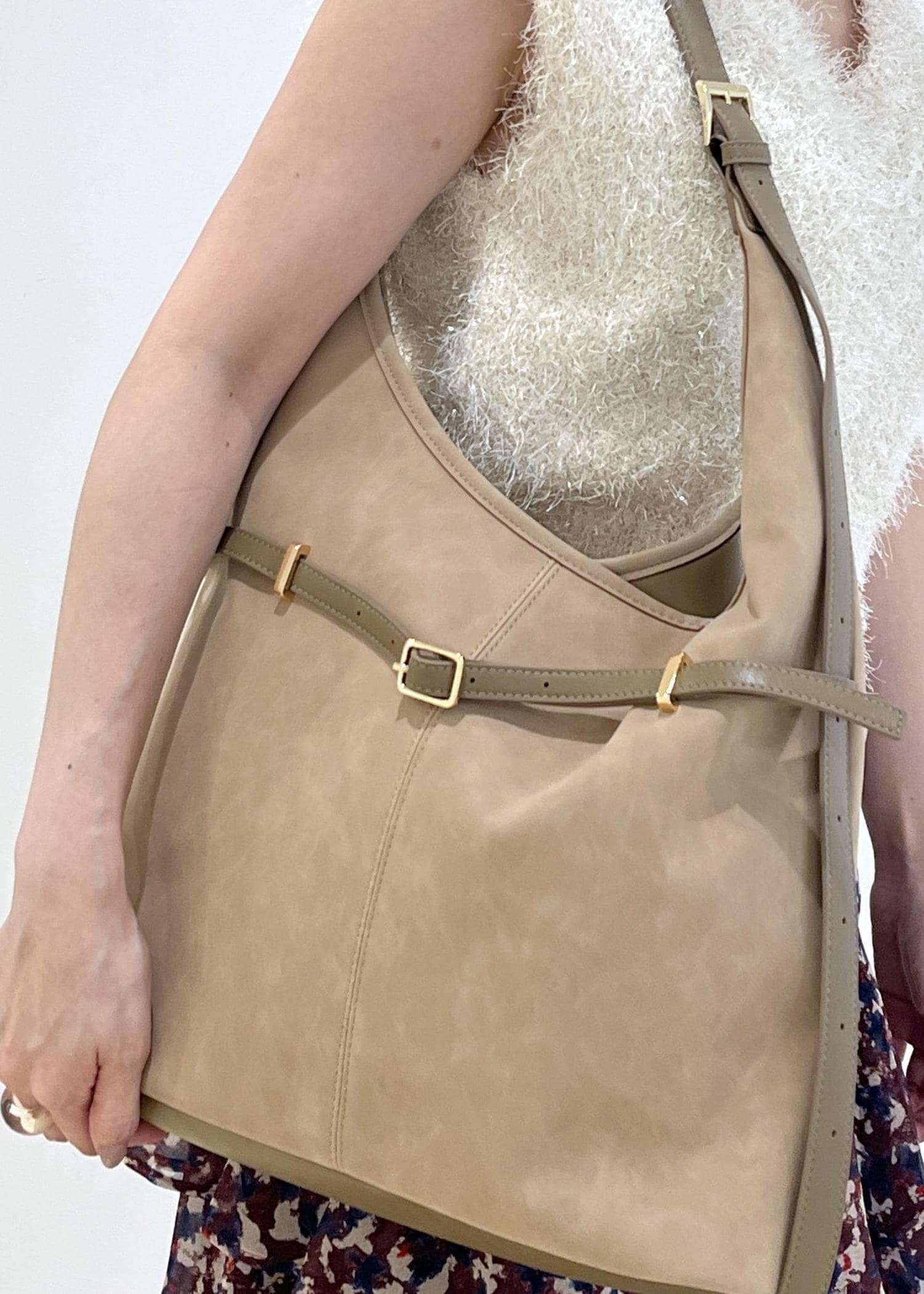 VIS【A4収納】フロントベルトソフトショルダーバッグベージュ系 / F¥5,535レビューA4も余裕で入るサイズです。