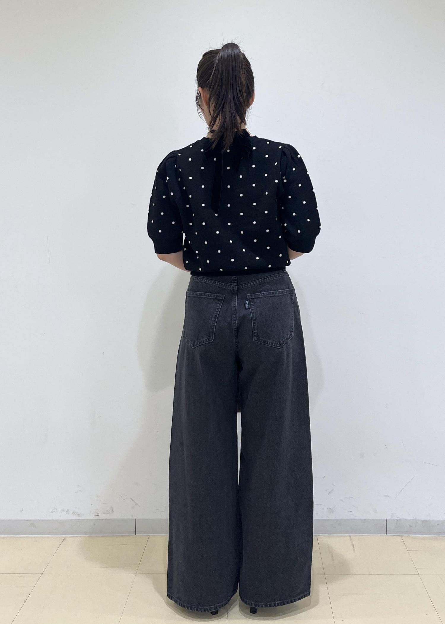 太めシルエットですが、比較的柔らかいため落ち感があり、スッキリ履けます!