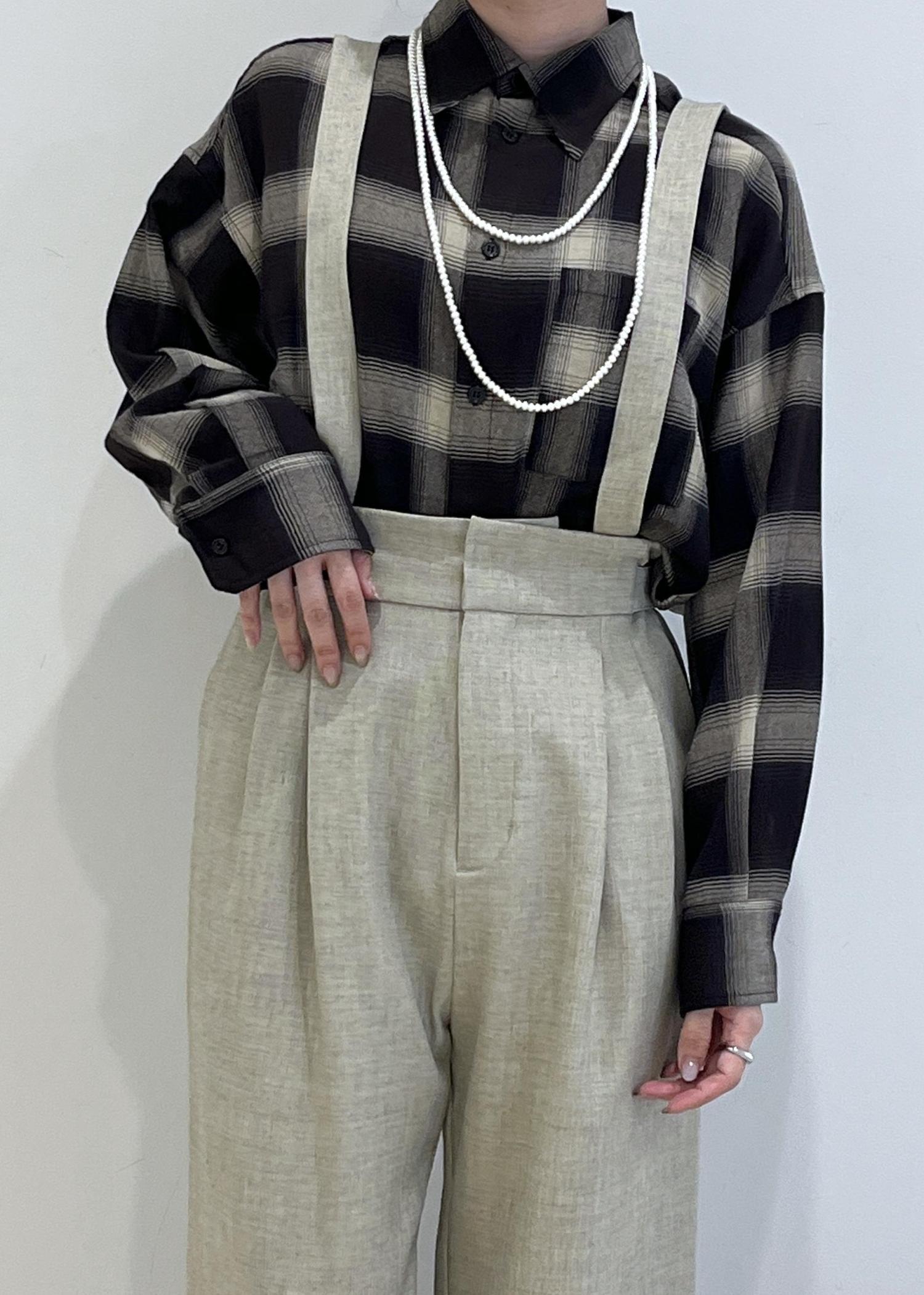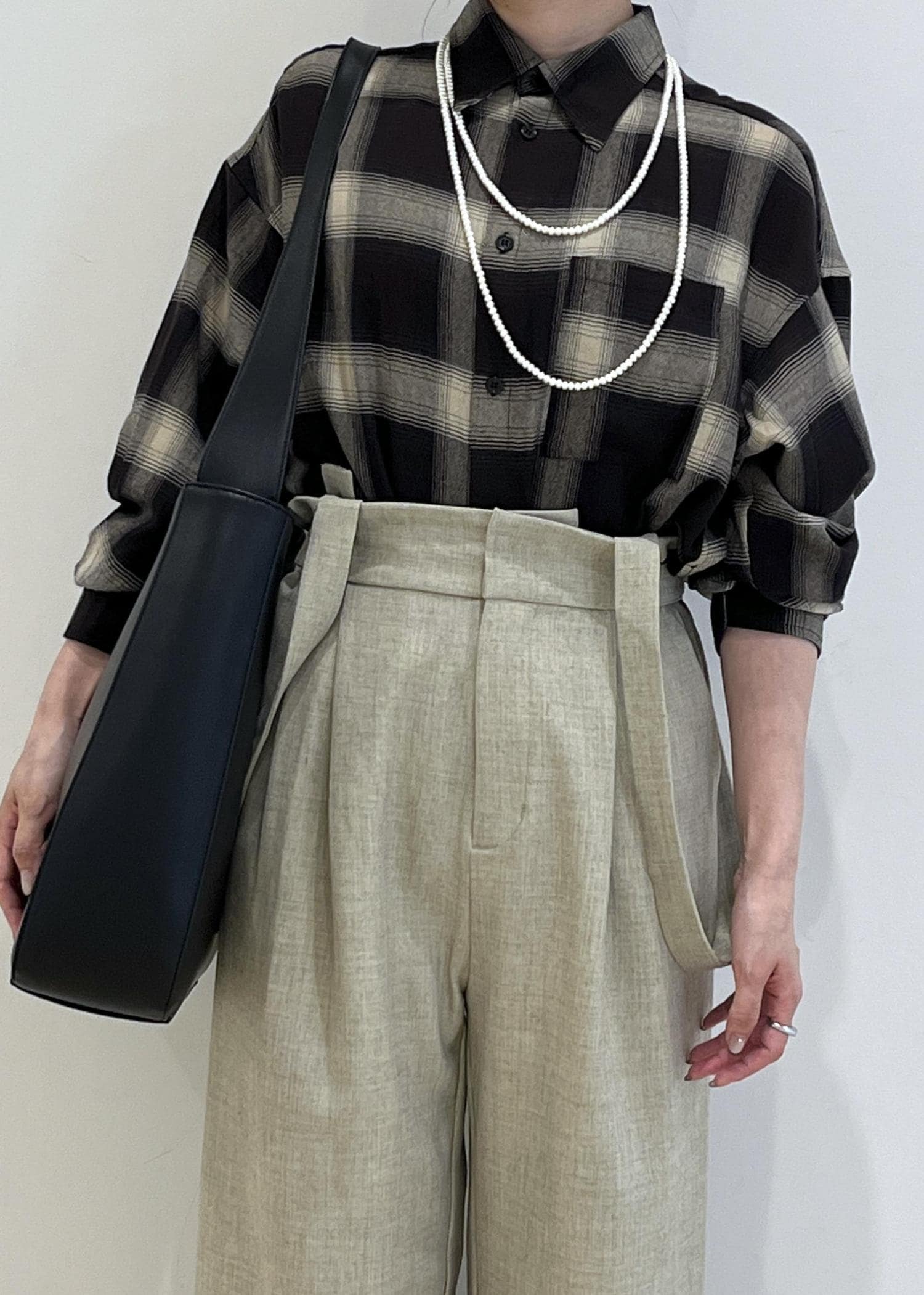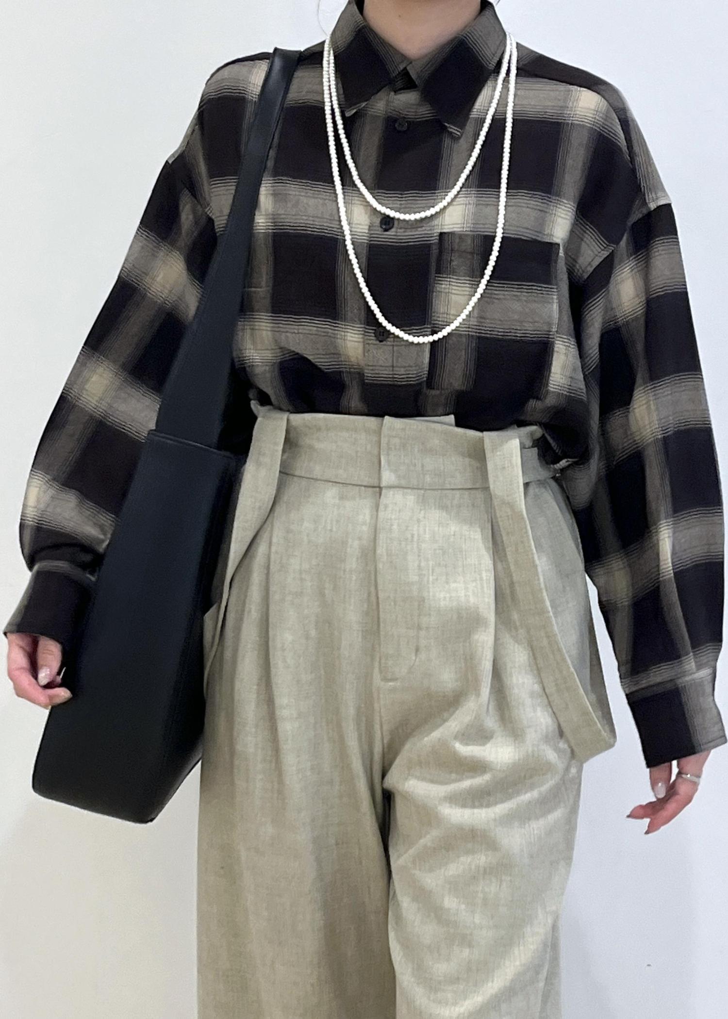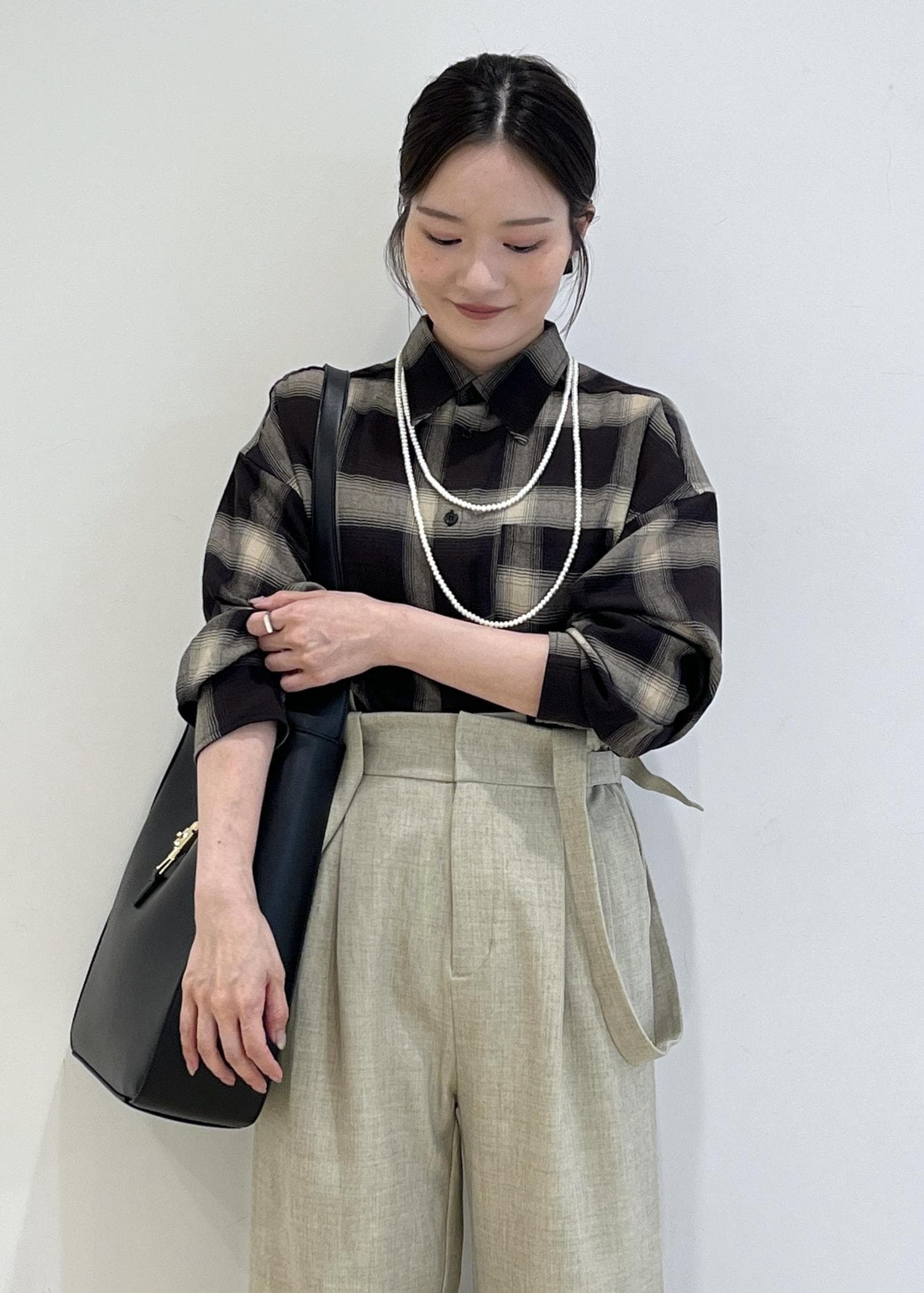 今季、特にトレンドのチェック柄シャツを取り入れた