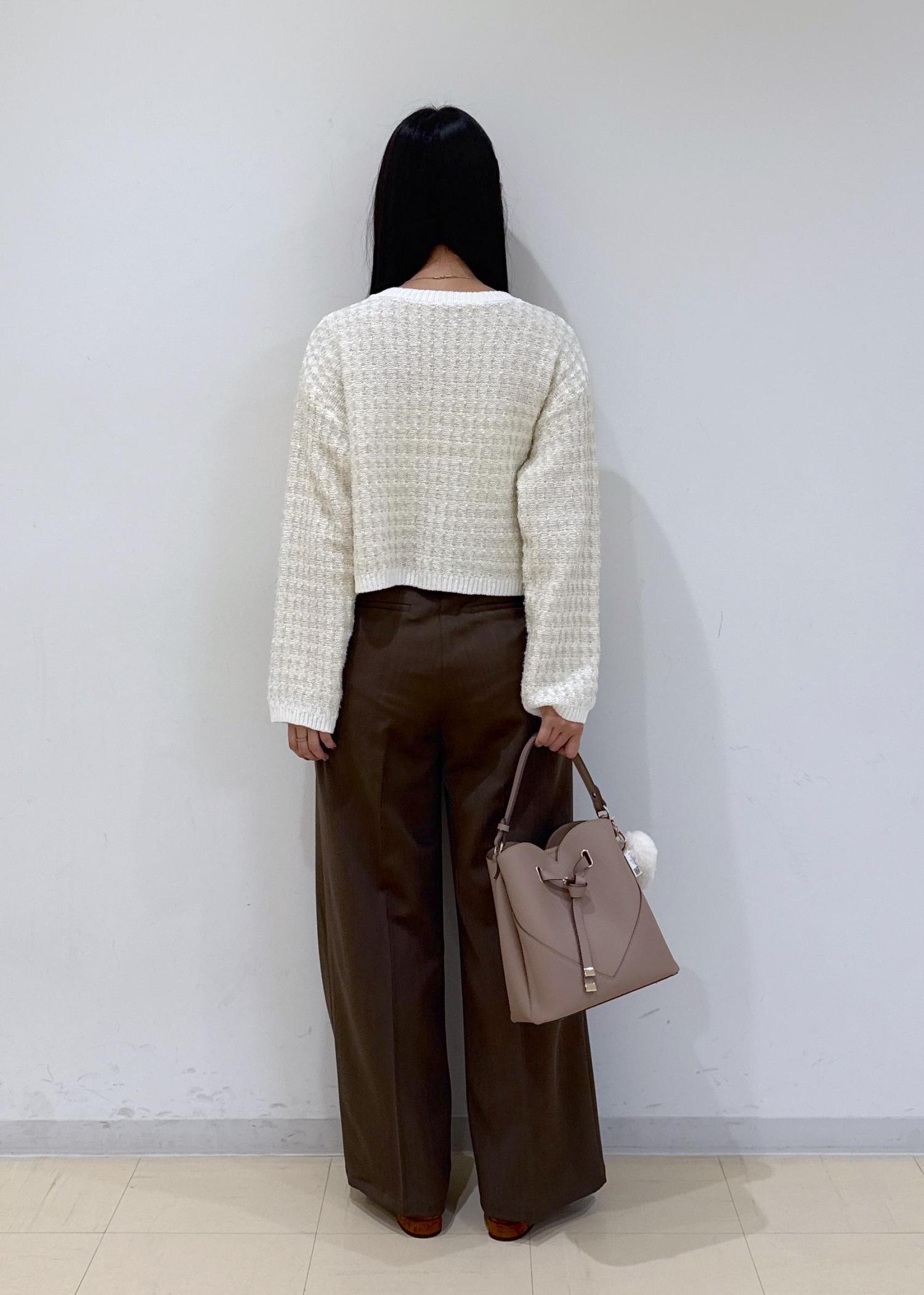 分厚すぎない分軽くて、アウターと合わせやすいのも嬉しいです。ショート丈なので、脚長効果も◎ -
