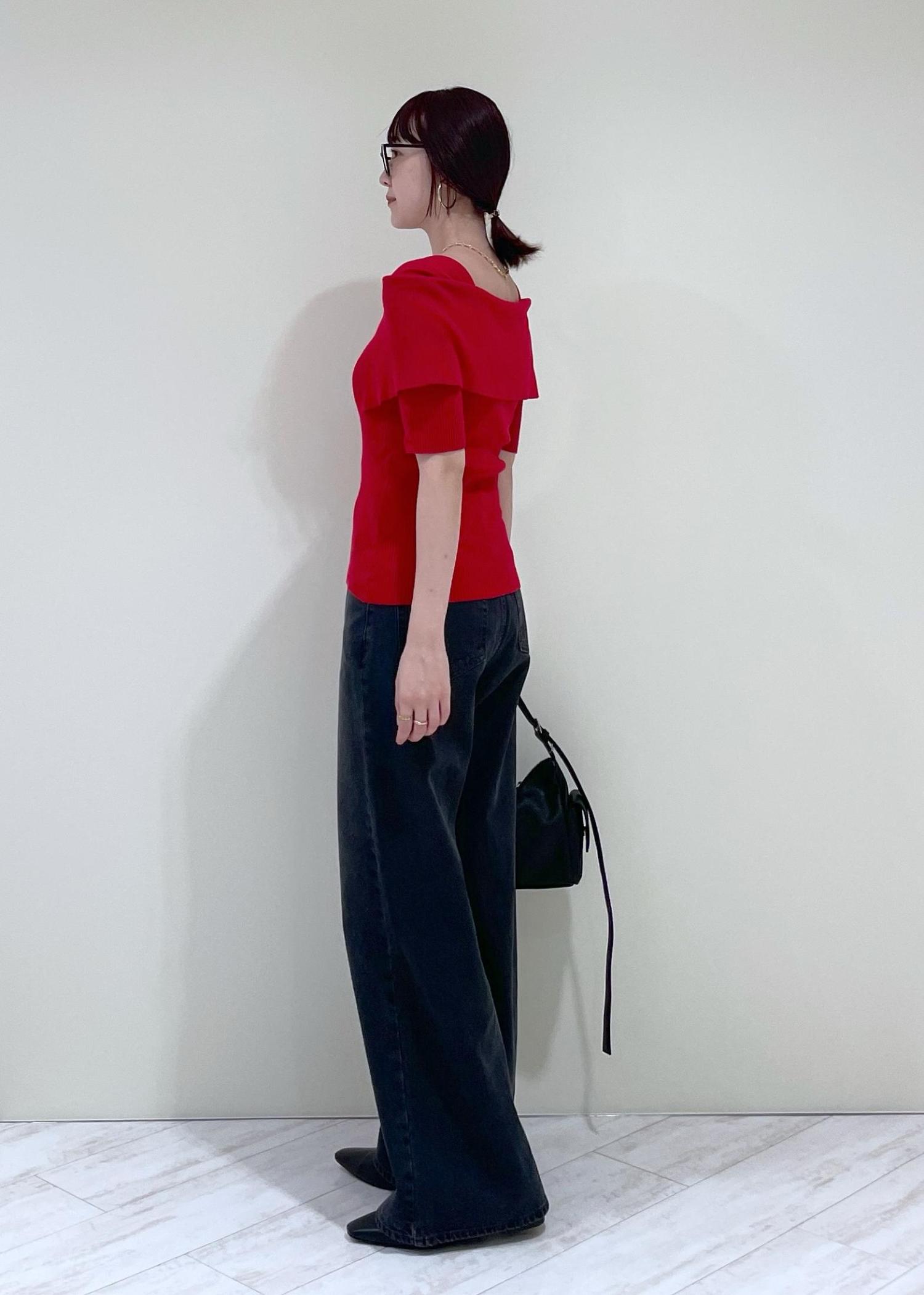 VISビックカラーオフショルハーフスリーブニットレッド / F¥2,963レビュー人気のオフショル風デザイン♡体にフィットするサイズ感と首元の開きで、骨ストさんは特に華奢見えが叶います。+大きめの襟で気になる上半身もカバー、優秀すぎるトップスです!