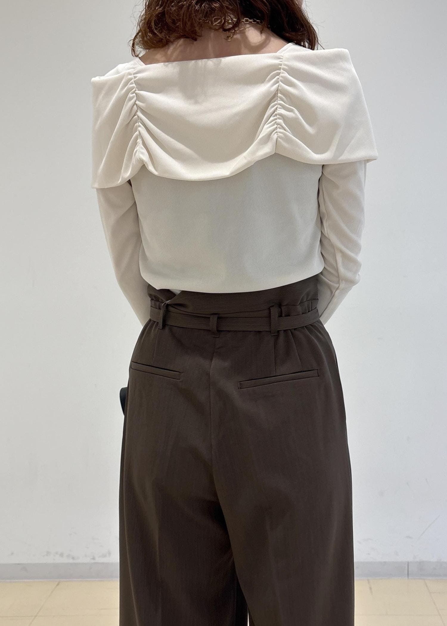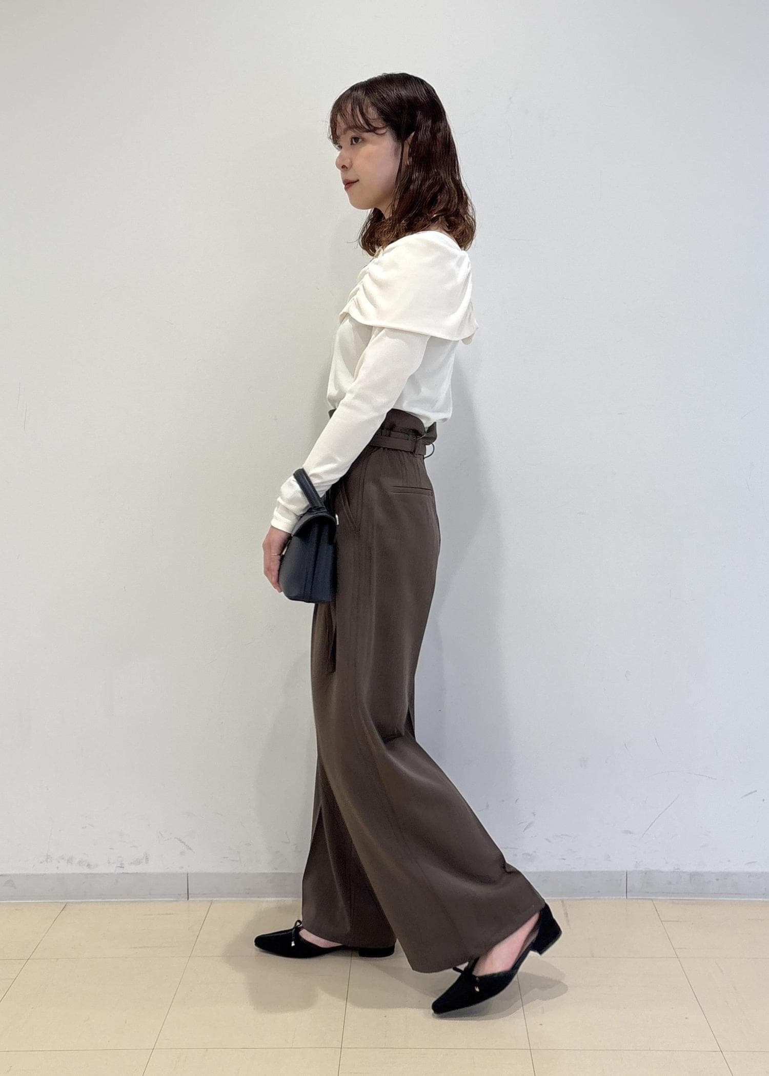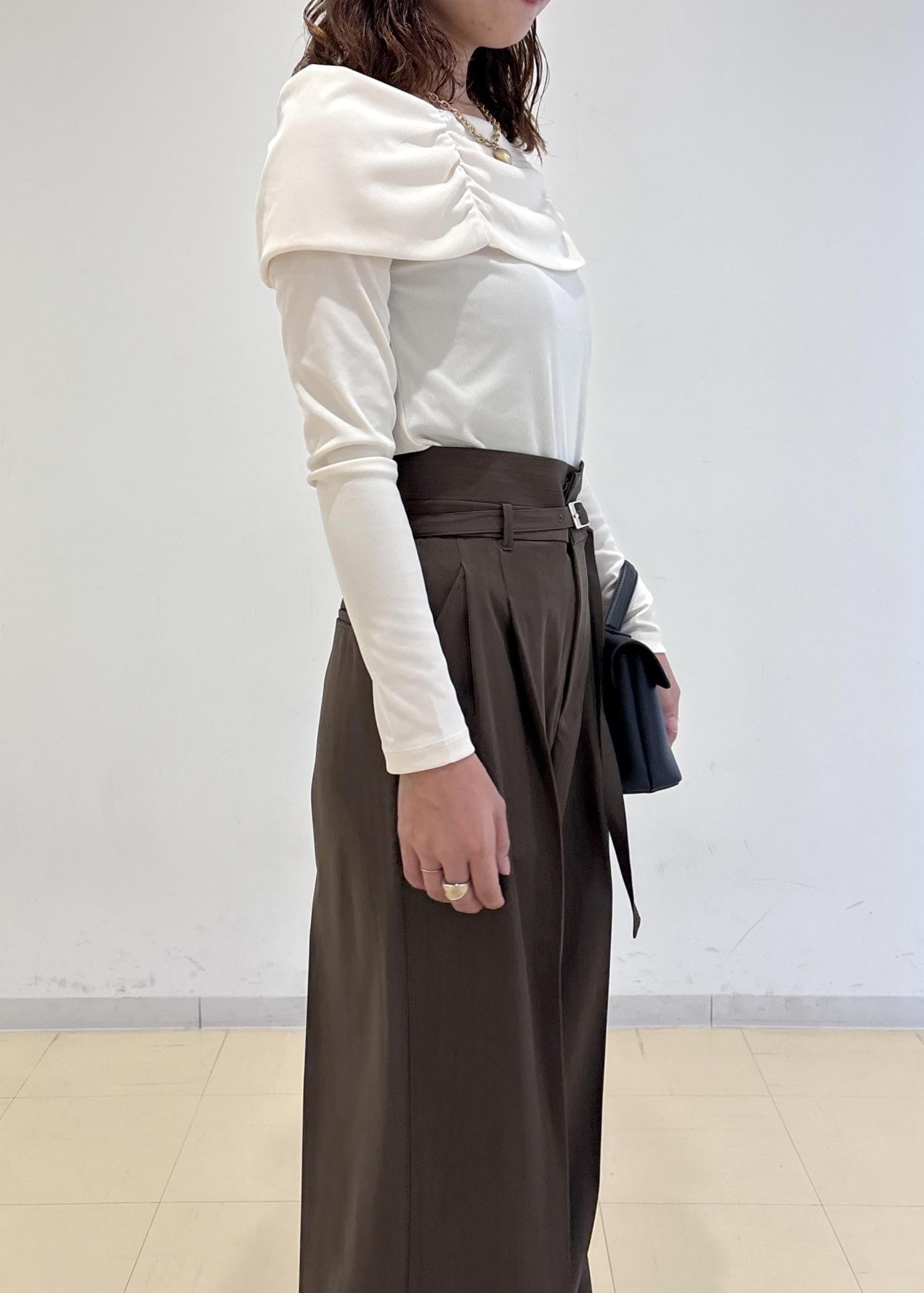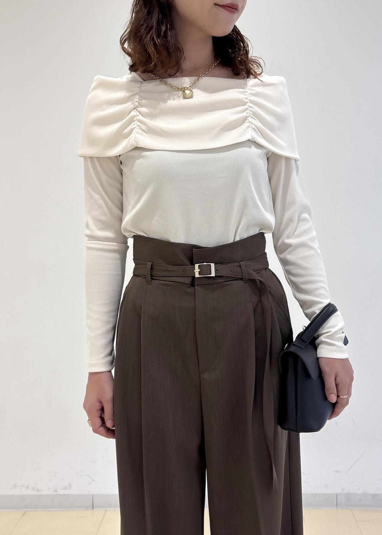 インナーが見えず、露出もしないオフショル風トップスなので苦手意識がある方でも取り入れやすいです! -