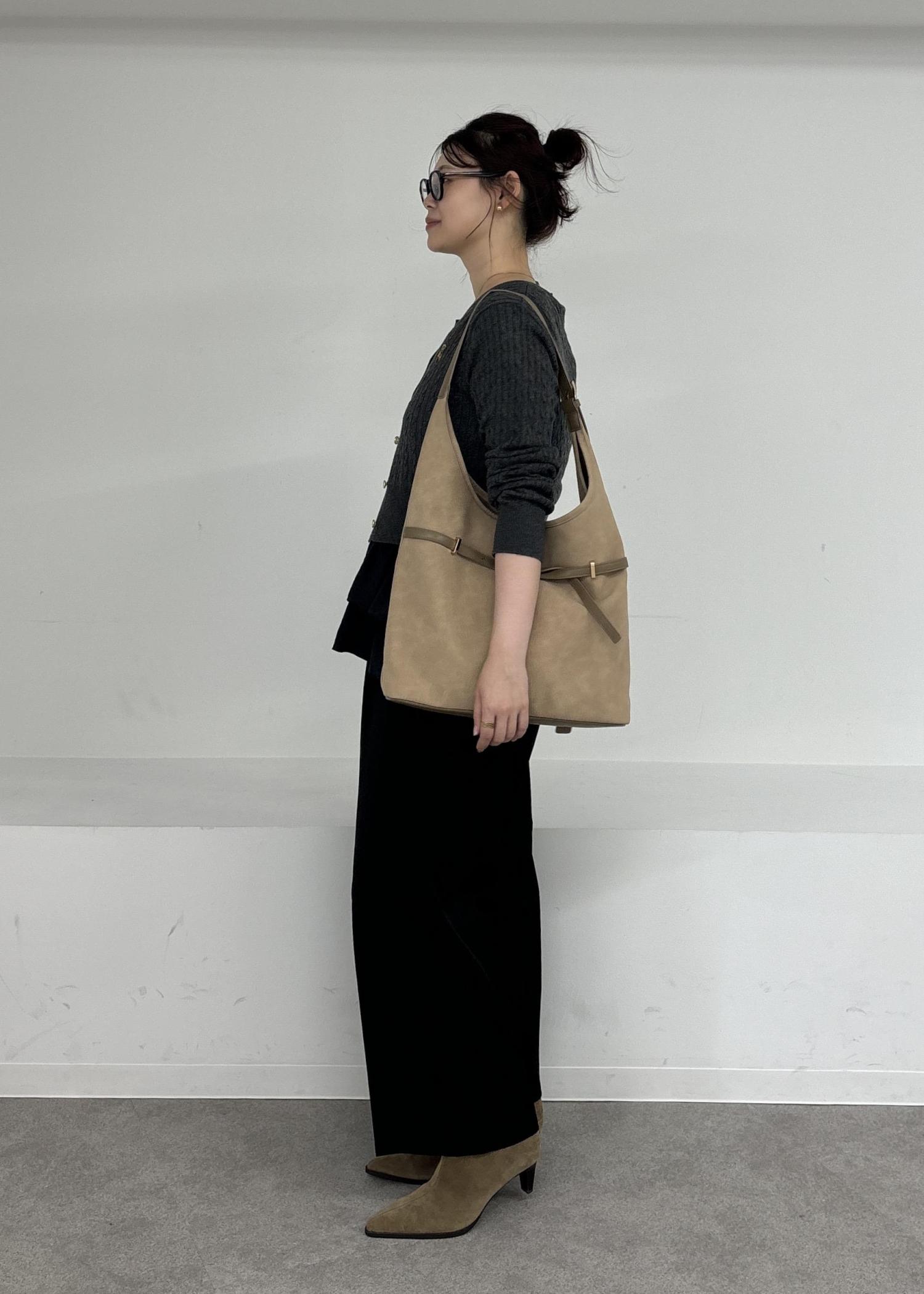ハイウエストで自然なスタイルアップが叶い、質感もサラッとしていて重たさを感じない程よいシルエットです。