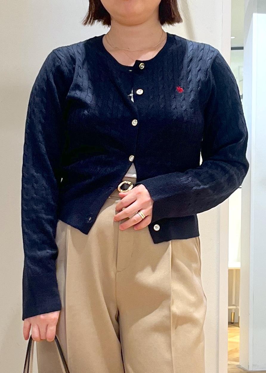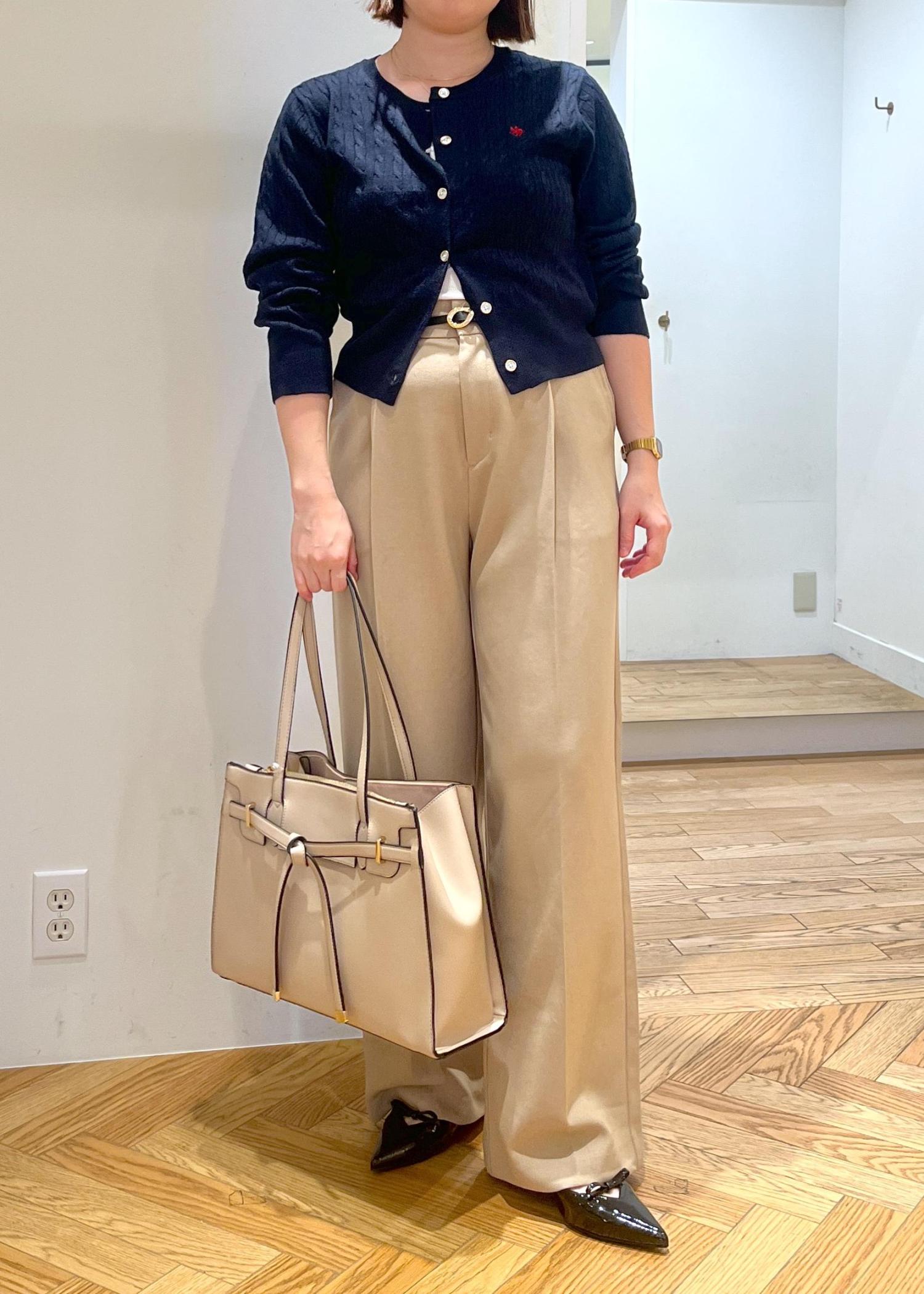1枚持っていれば確実に使える王道ベーシックラインのカーディガンは、お仕事でもプライベートでも使いやすいネイビーをチョイスしました!