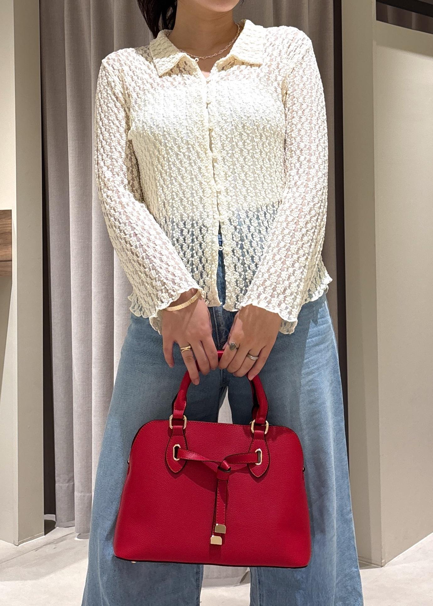 赤バッグがアクセントになります!