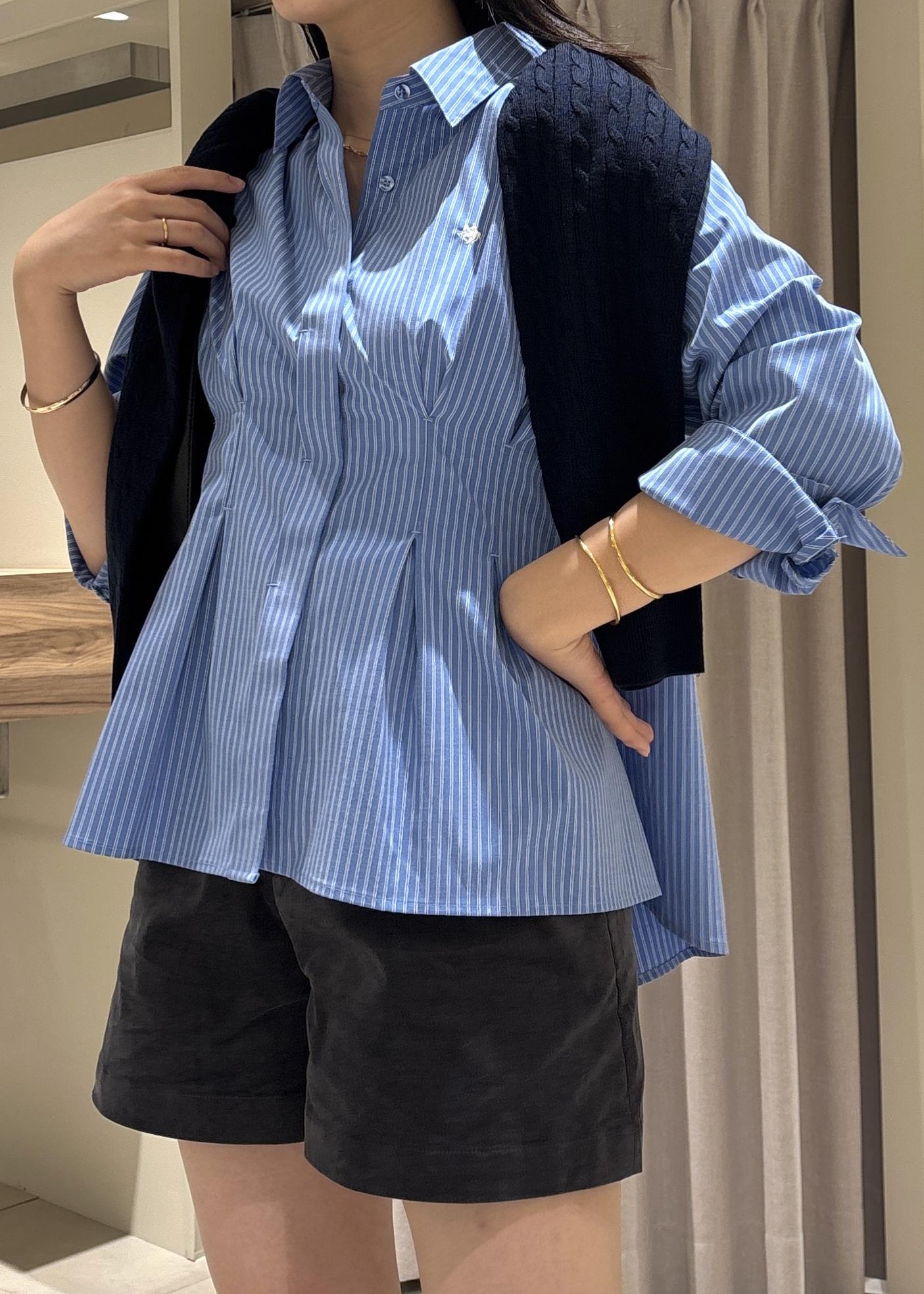 VIS【POLOBCS】VIS別注ウエストタックフレアシャツブルー系 / F¥6,930レビュー165cmで腰が隠れる丈感、