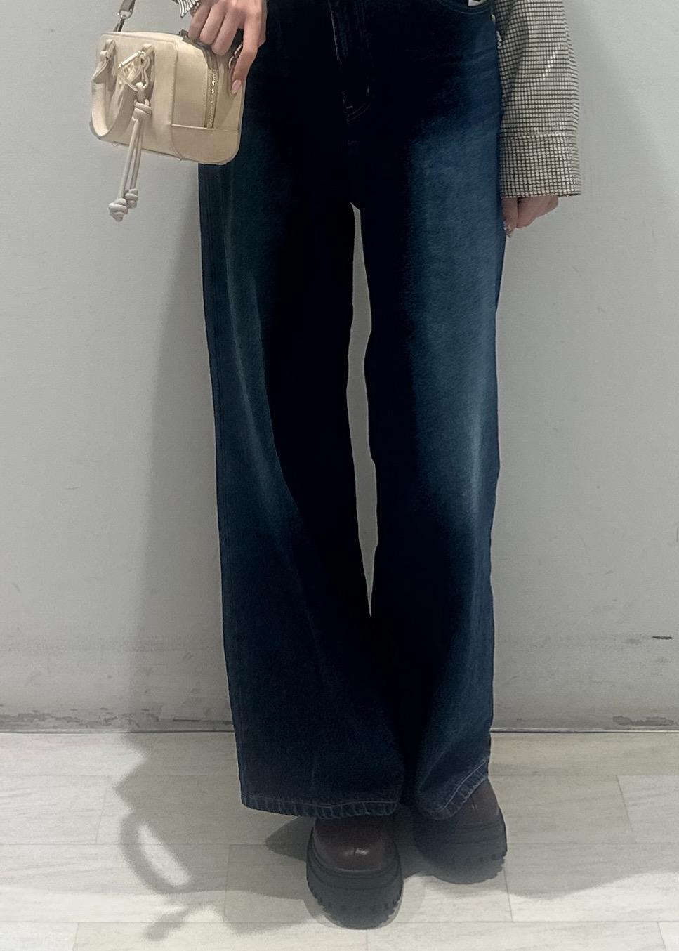 オリジナル革パッチと履いた時に覗くプレイヤーマークがアクセントとなり、ルーズストレートシルエットは上品さを保ちながら足のラインを綺麗にカバー◎ -