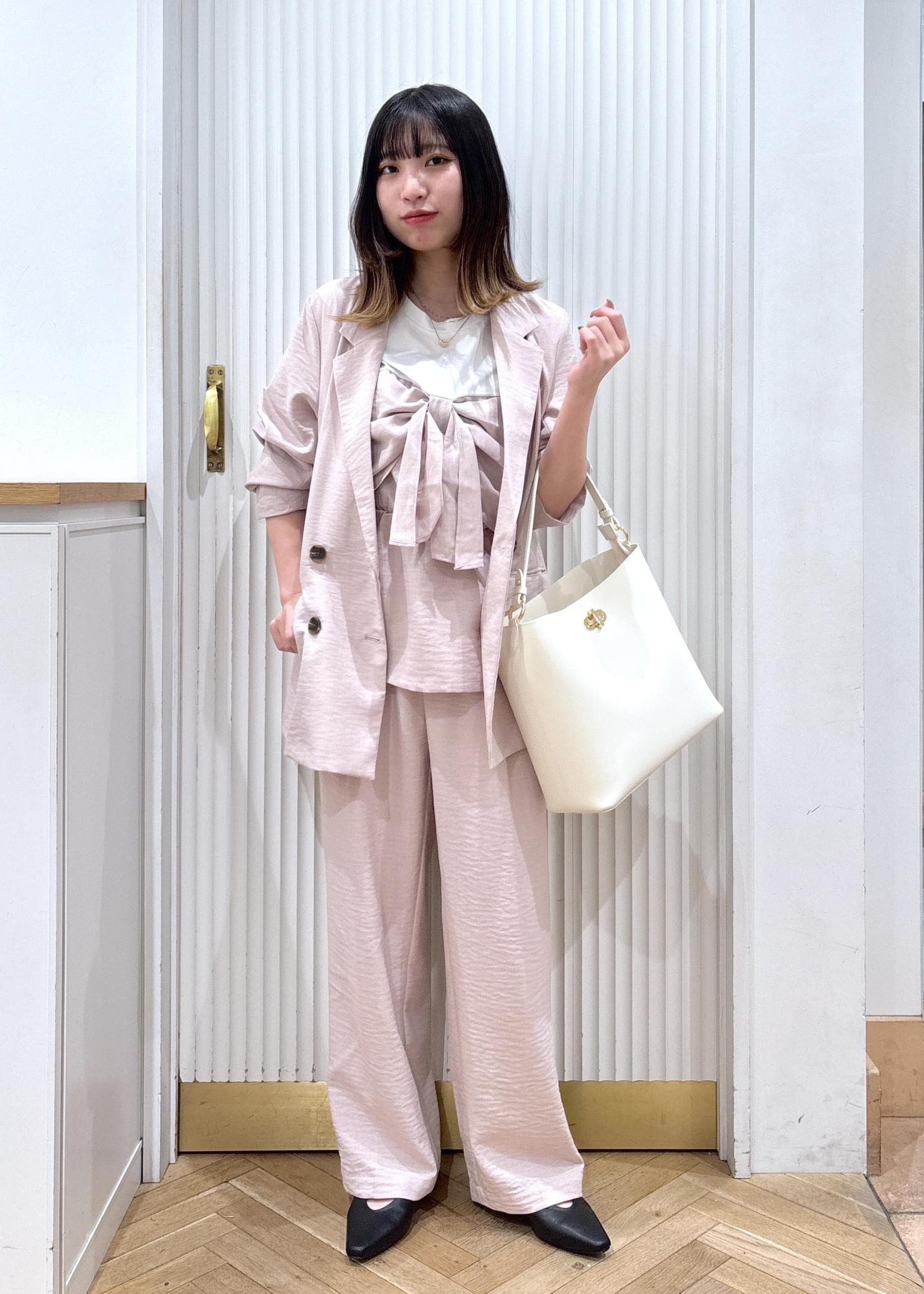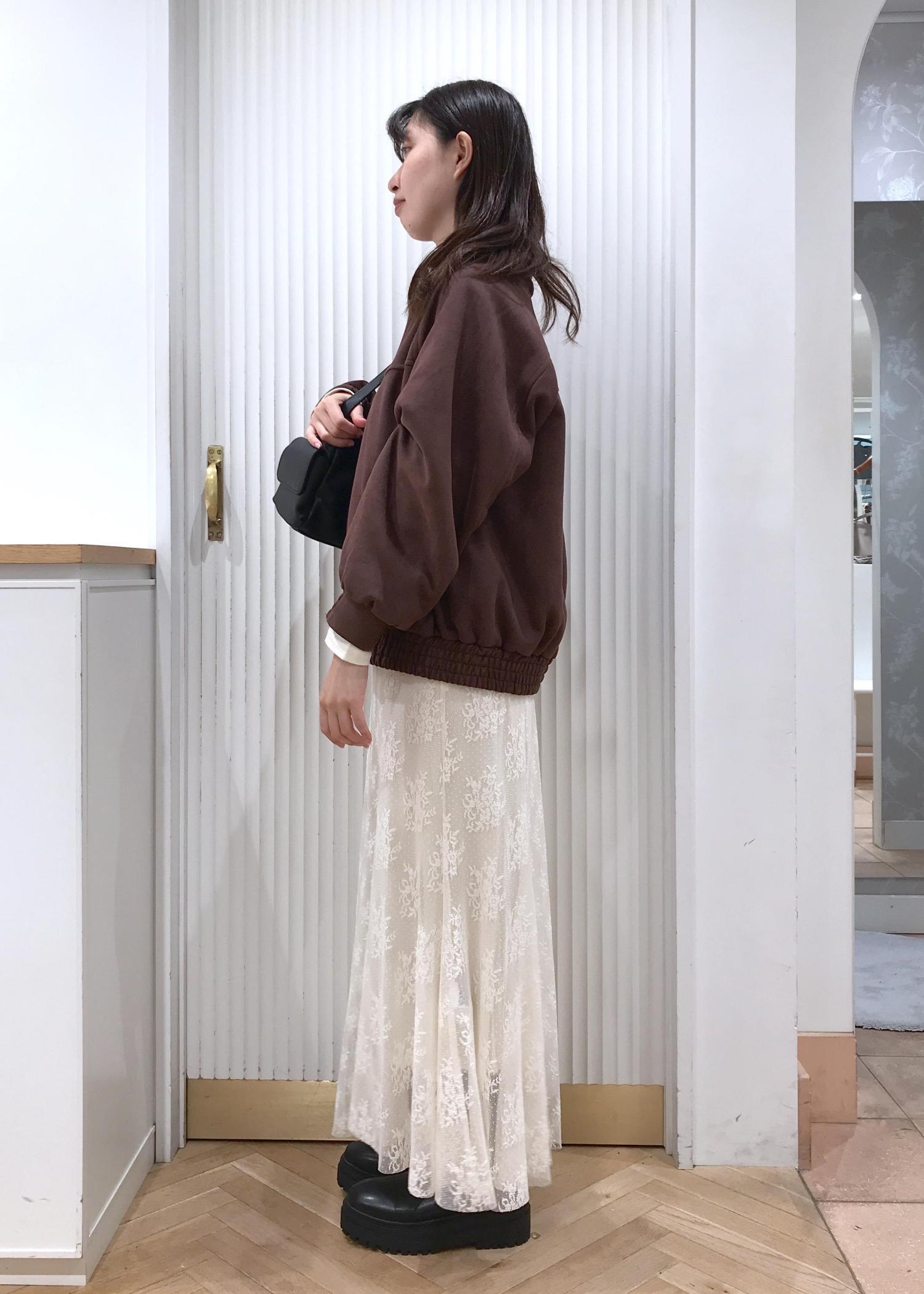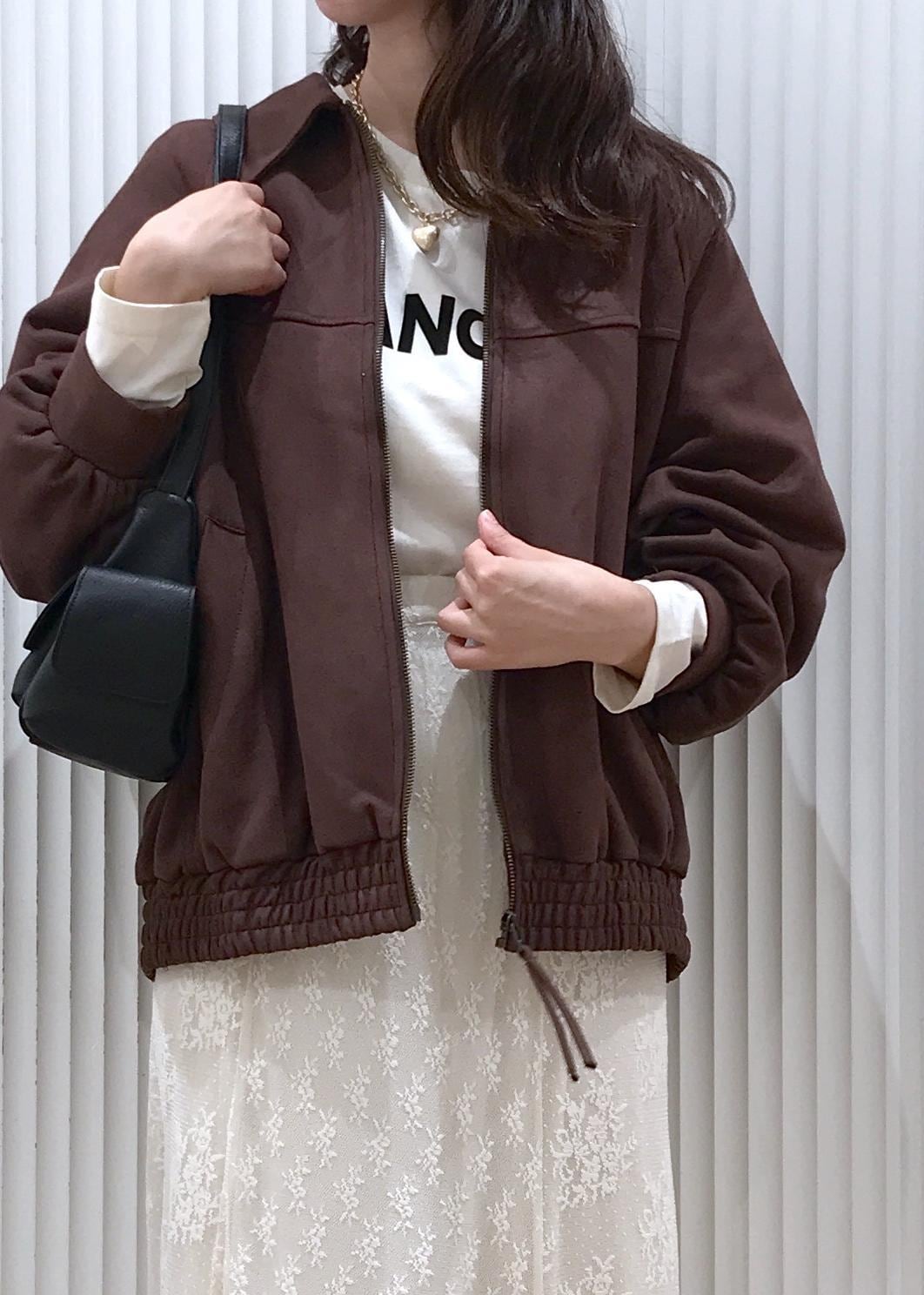 インナーはワントーンにして、ブラウンのブルゾンを主役しました。