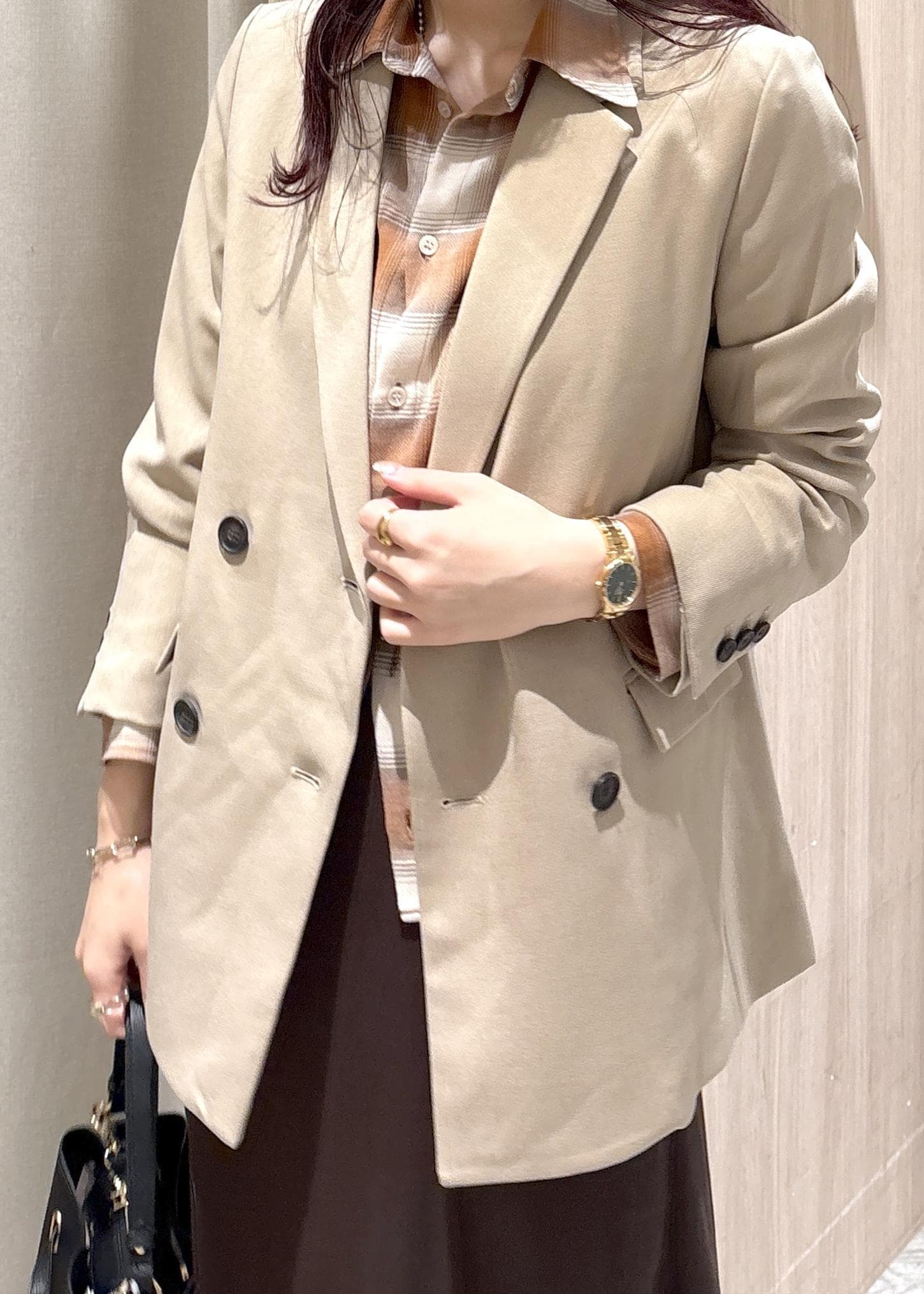【美easy】ウーリッシュダブルブレストテーラードジャケット【セットアップ対応/洗える】
