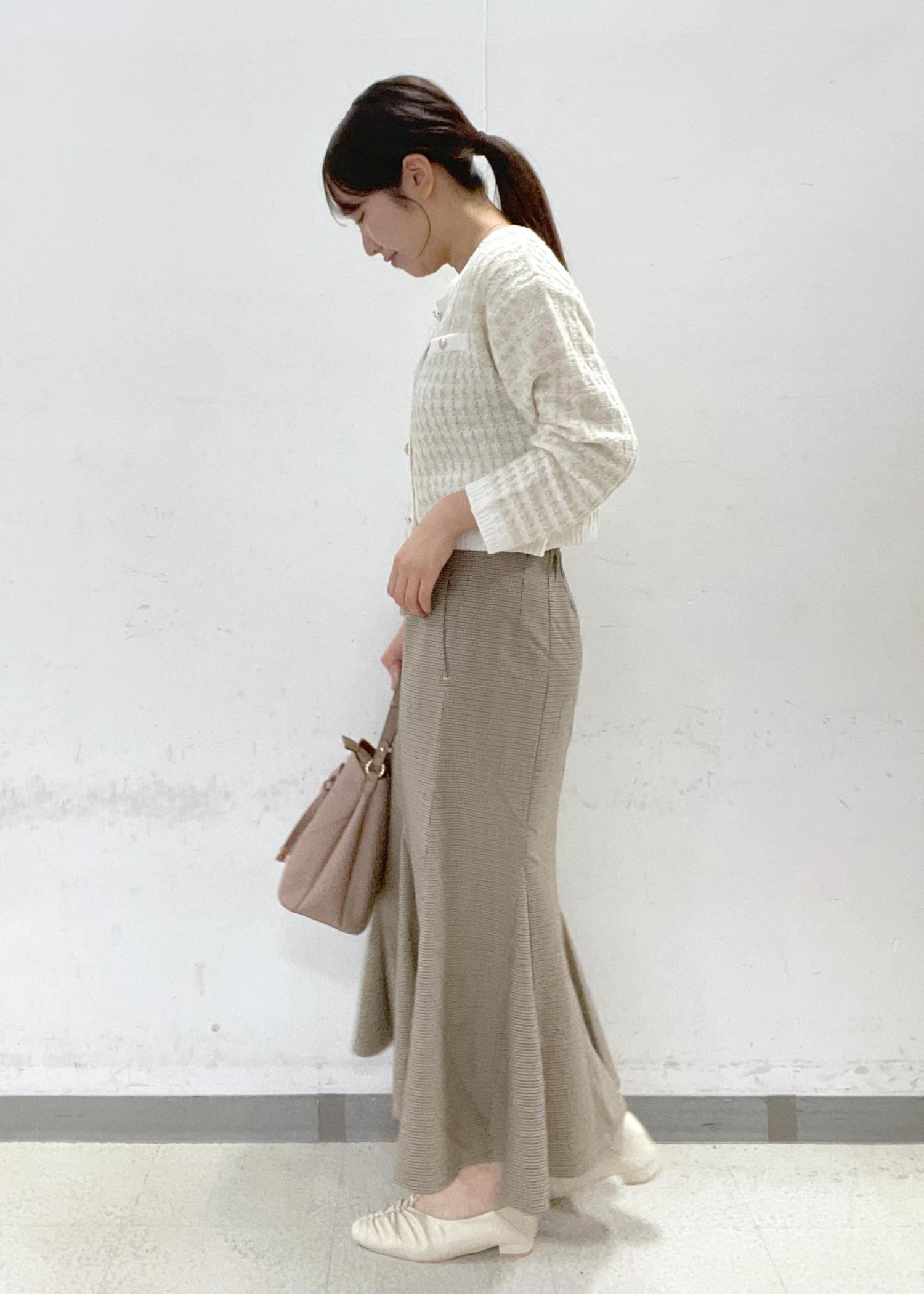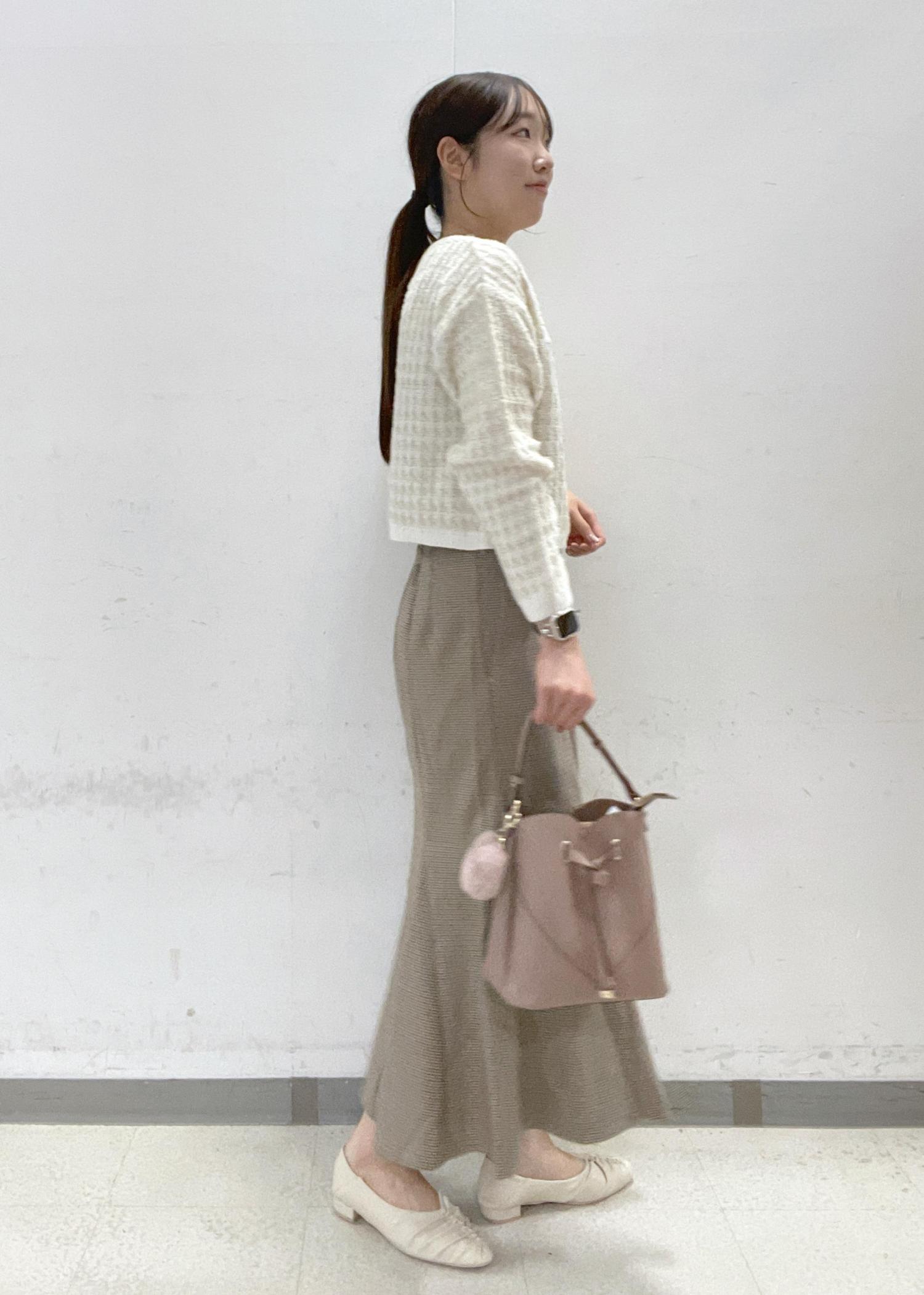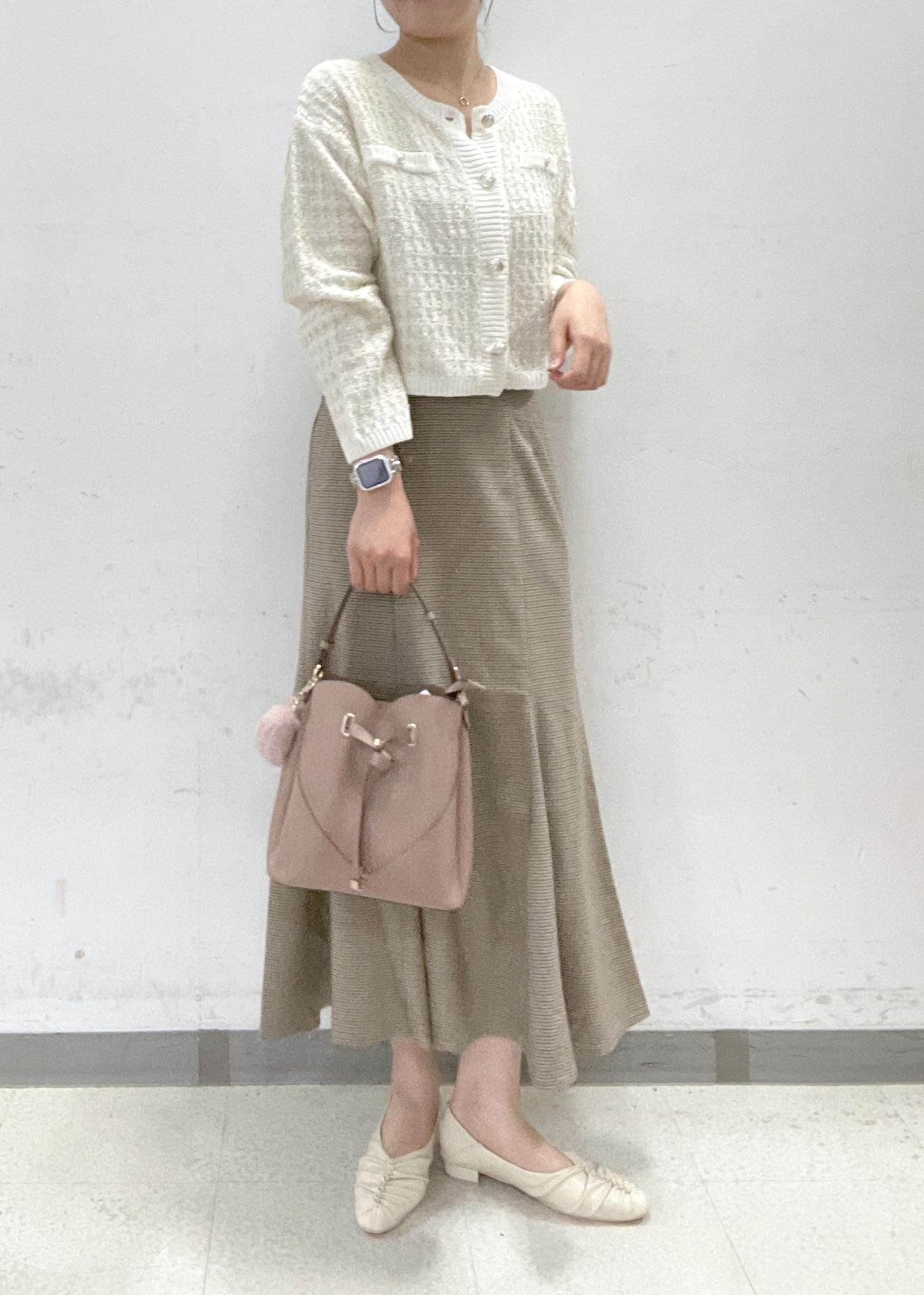 VISファンシーツイードメタルボタンカーディガンオフホワイト / F¥6,589レビュー袖丈は、少し長めのデザインになっていて全体的にゆったりとしたサイズ感でした!!