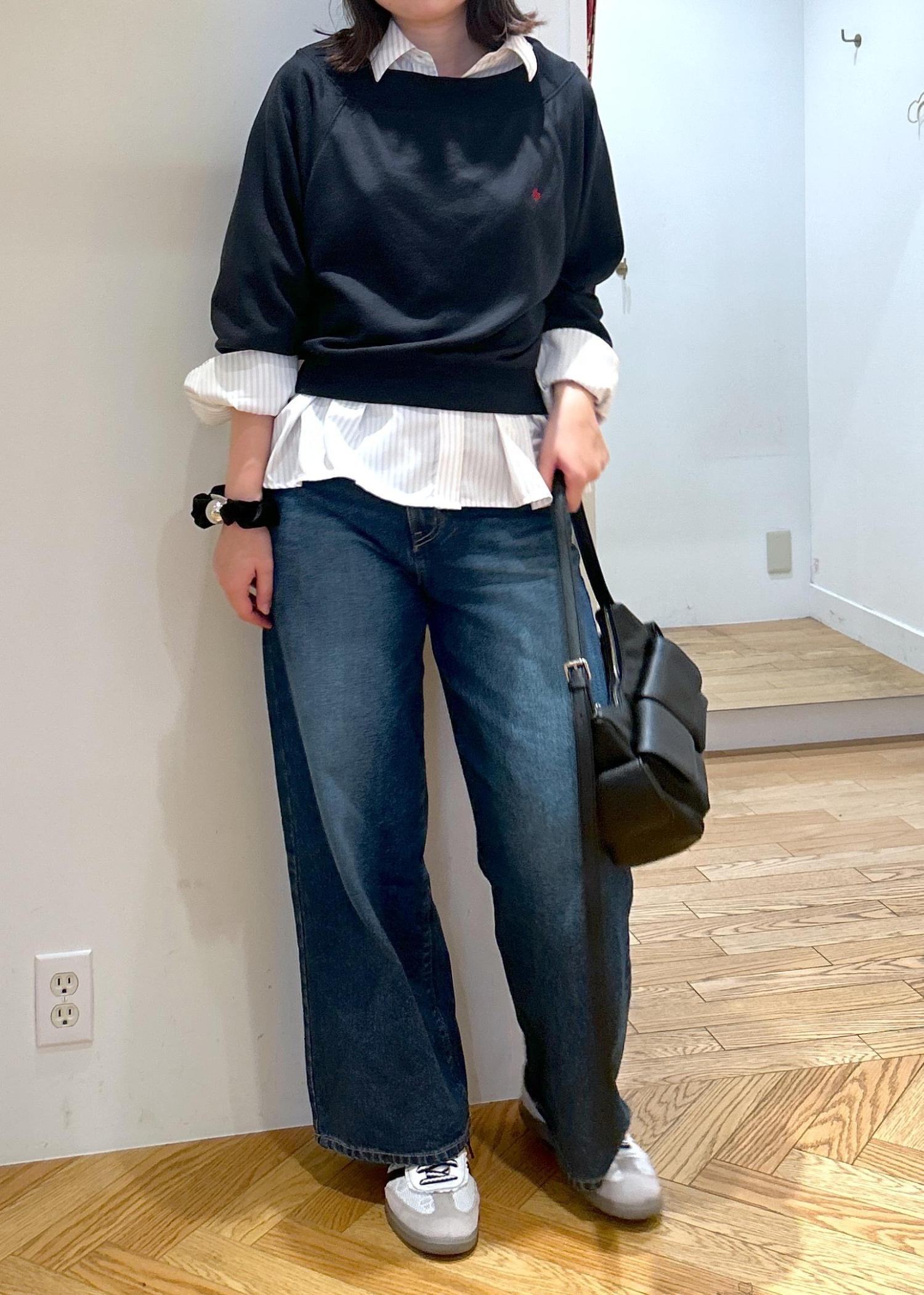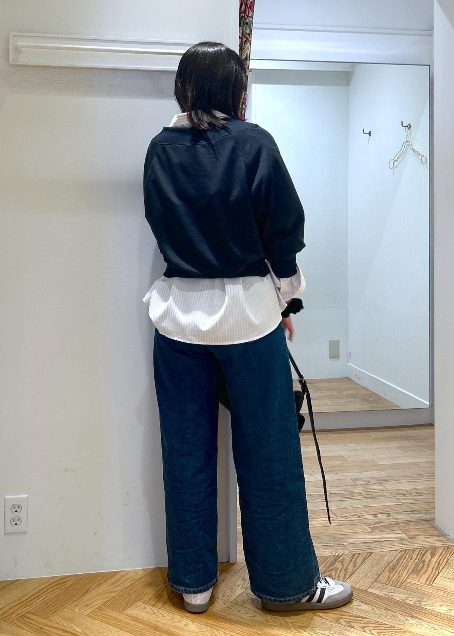 スウェットにシャツをレイヤード。トレンド感のあるスタイルにしました!