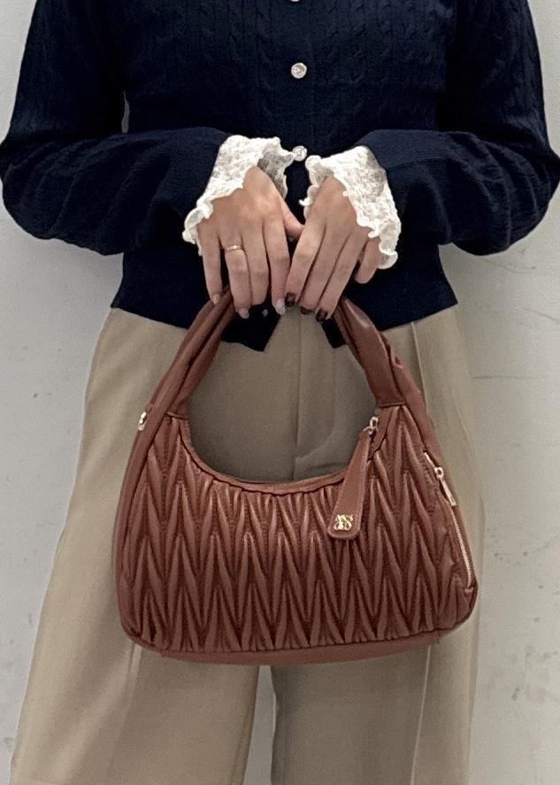 VIS【2WAY】ねじりハンドルキルティングバッグブラウン / F¥7,909レビュー側面サイドにポケットがついているので、出し入れが多い携帯などを入れられます!