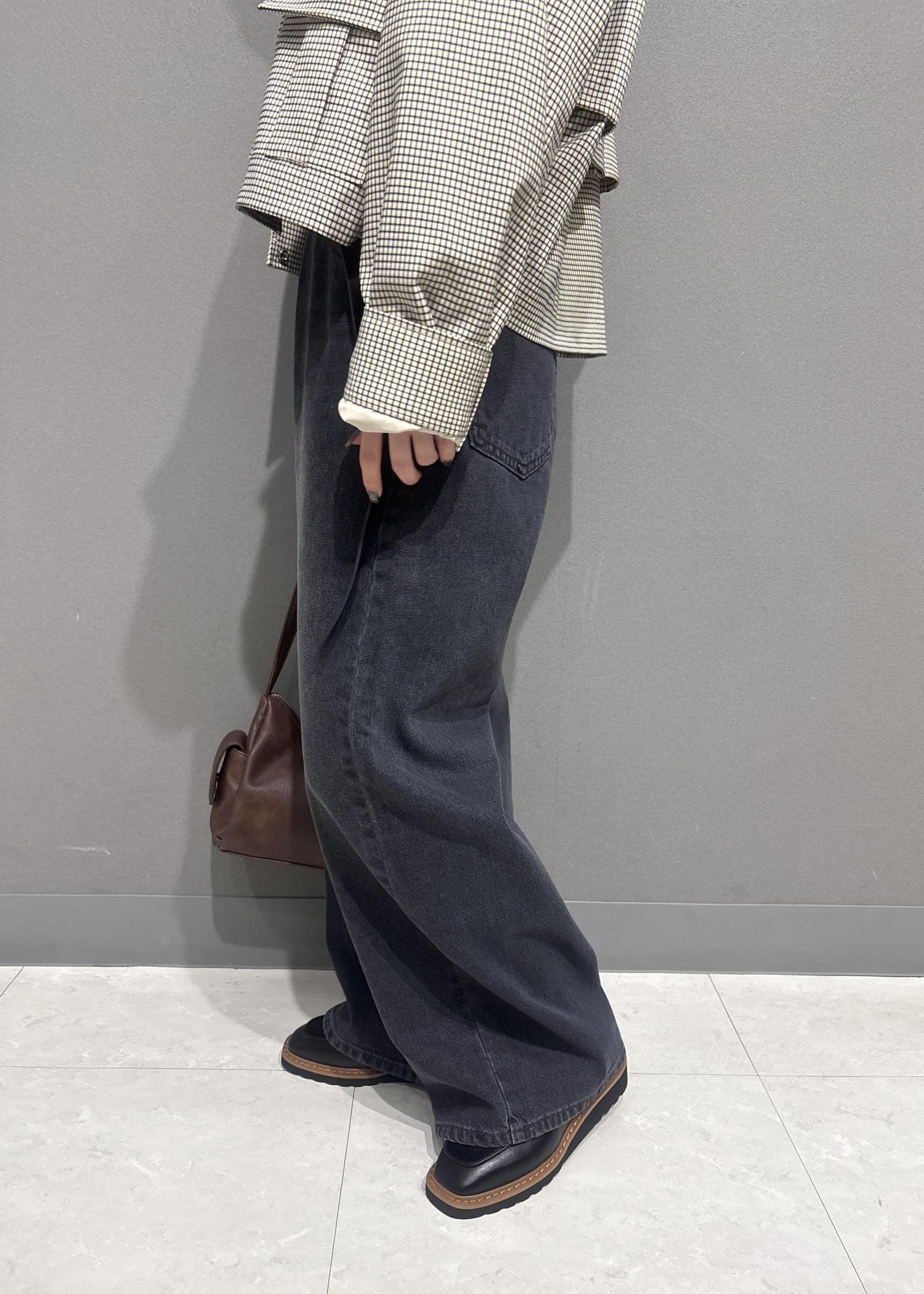 程よく広がるワイドシルエットで低身長さんでも重たく見えないです。 -
